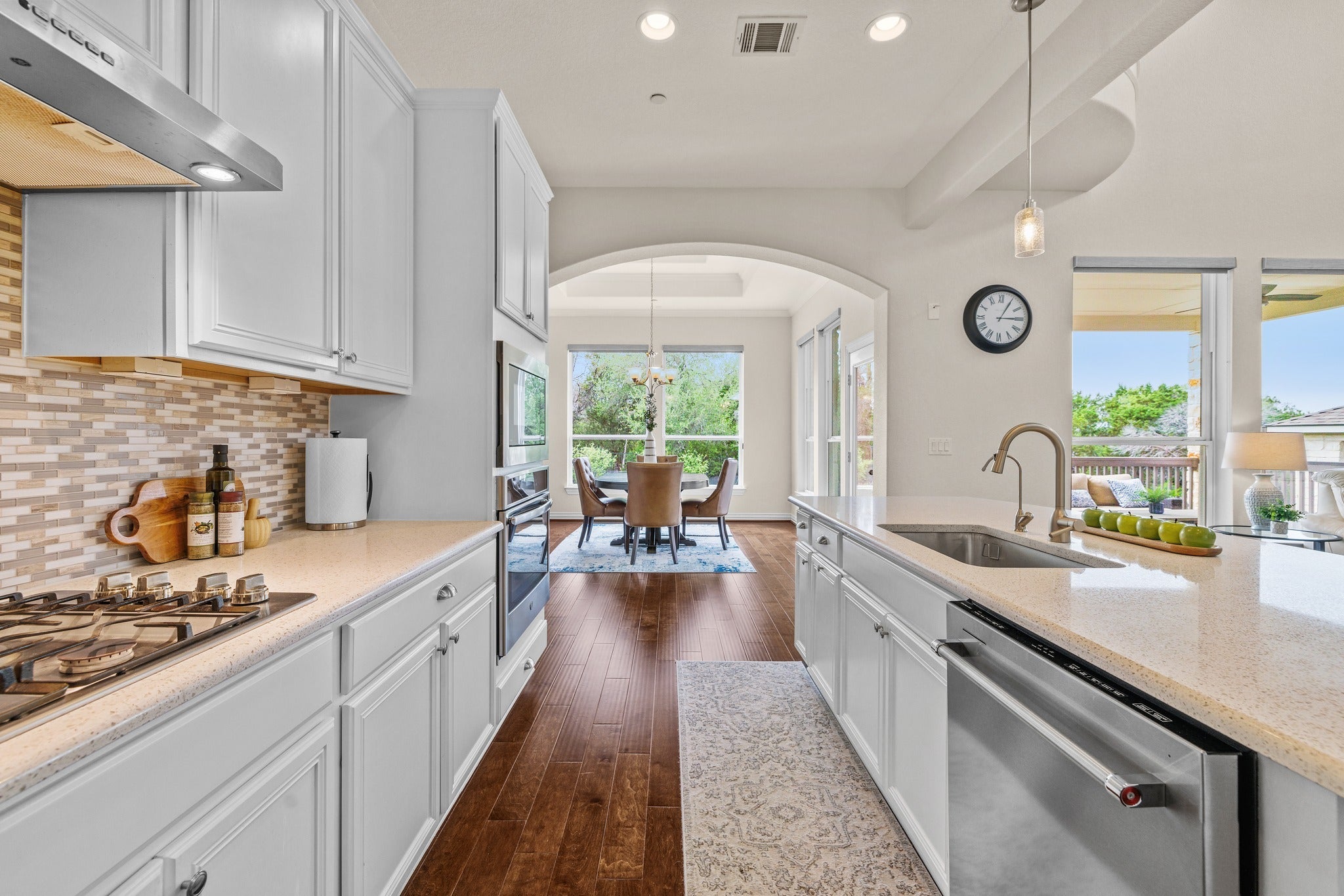 - Built-In Oven, Dryer, Dishwasher, ENERGY STAR Qualified Appliances, Free-Standing Refrigerator, Gas Cooktop, Disposal, Microwave, Water Softener Owned, Self Cleaning Oven, Stainless Steel Appliance(s), Tankless Water Heater, Vented Exhaust Fan