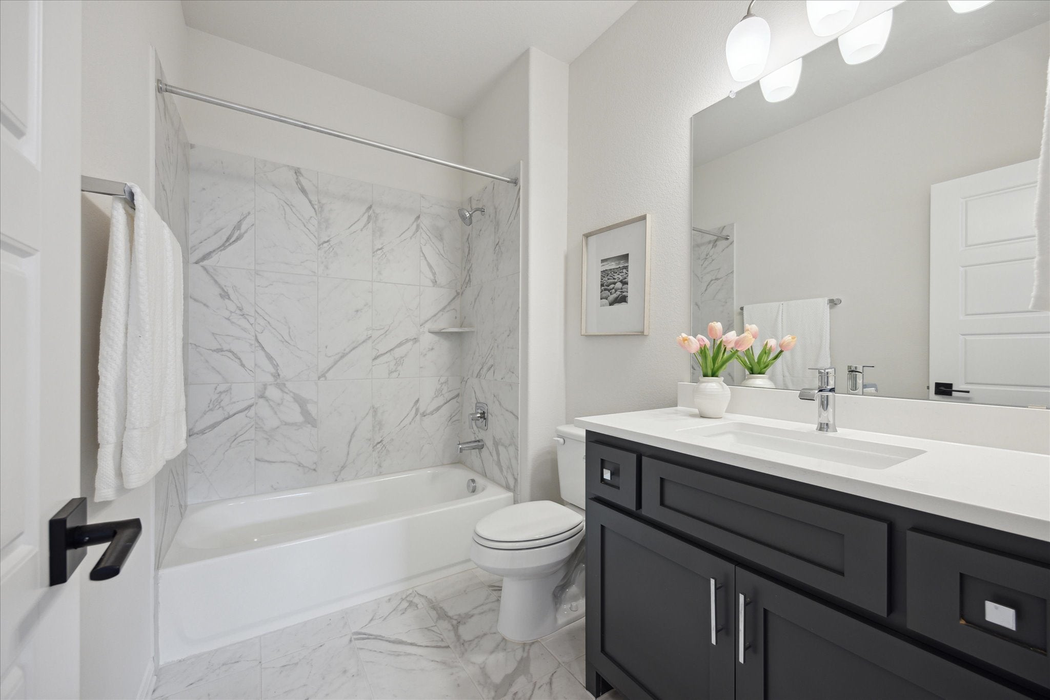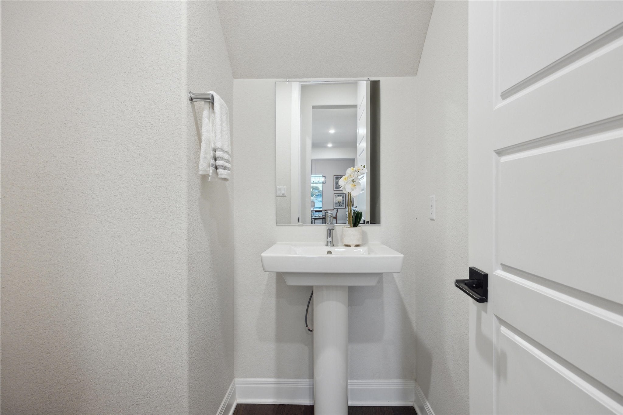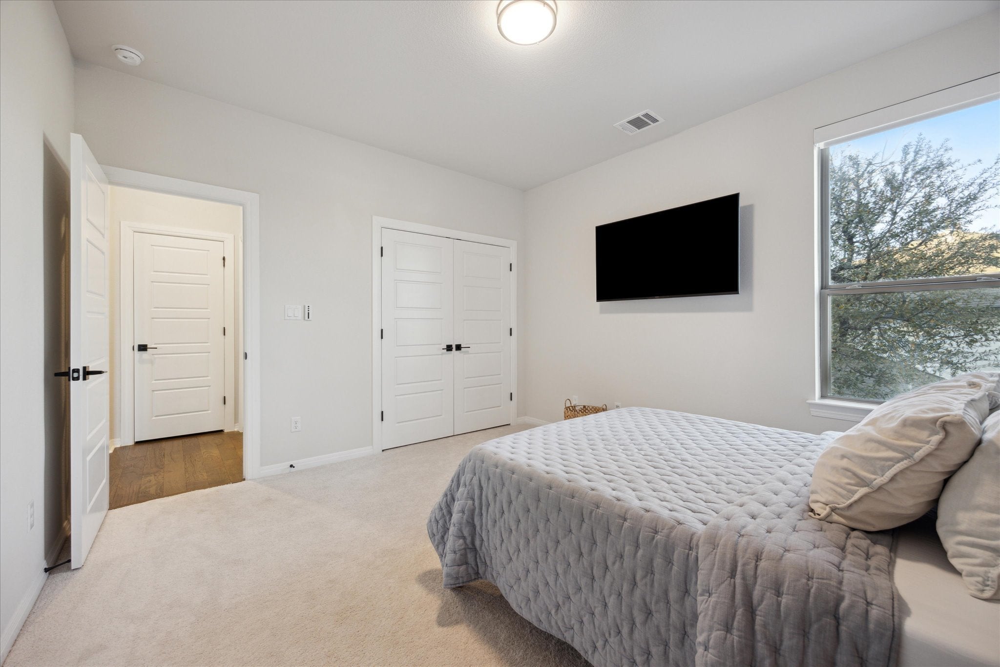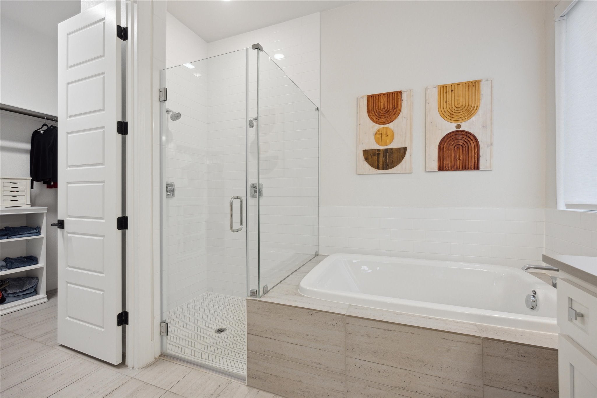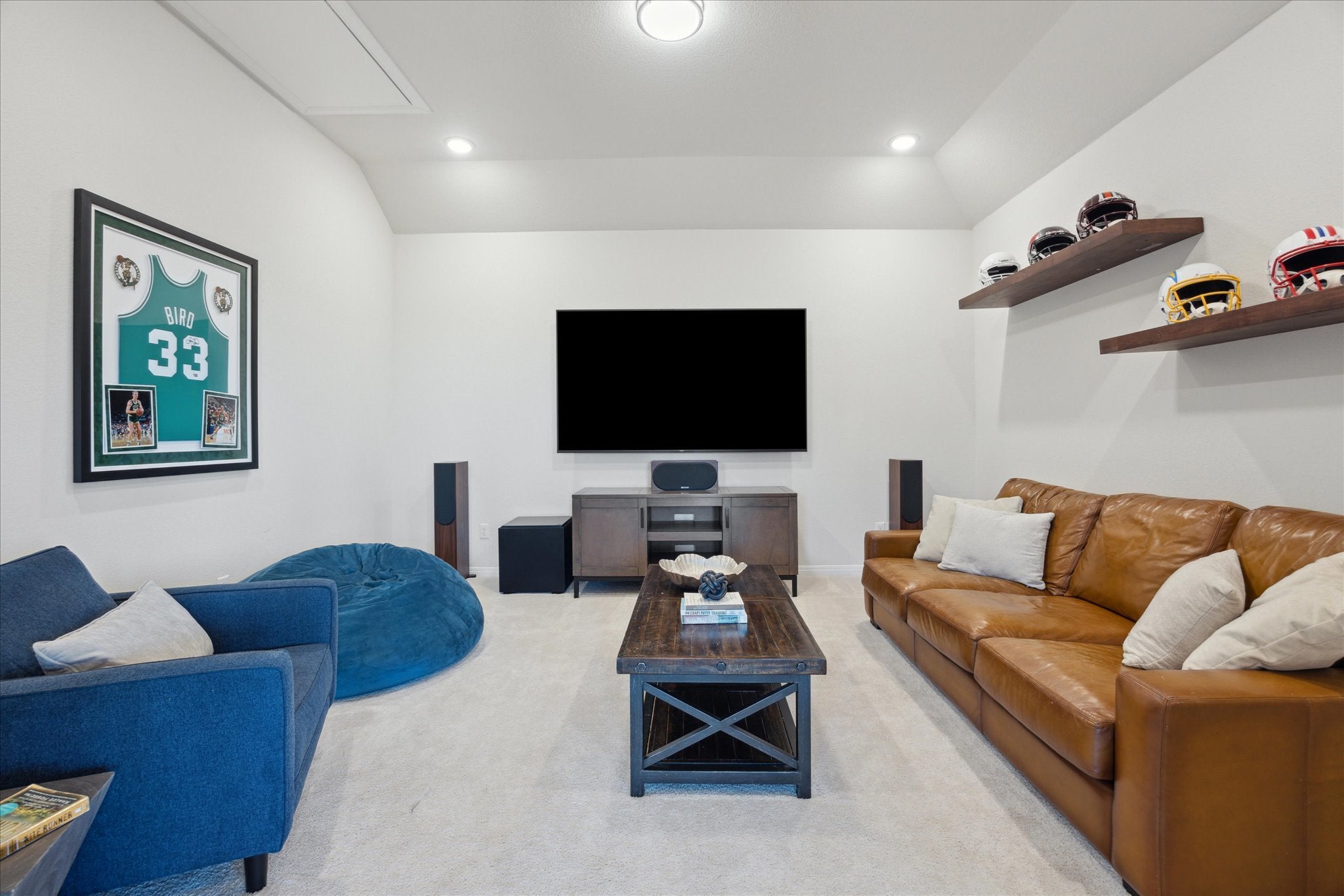 Close to Lakeway and Rough Hollow! This lovely newer luxury home with an open floor plan is located in the peaceful community of The Summit at Lake Travis. This exclusive neighborhood is quietly tucked away, yet close to so much including Lake Travis elementary and middle schools and the Bee Creek Sports Complex. This stunning residence is full of light and nestled on a peaceful cul-de-sac offering stunning views of Lake Travis. This modern and inviting home with a covered front porch and two-story foyer offers an expansive 3,764 square feet of living space (per Builder) with 5 bedrooms and 6 bathrooms. The main level luxurious primary suite overlooks the back yard with peek a boo lake view, has a walk-in closet, spa-like bathroom, with a separate shower, soaking tub, and dual vanities. The gourmet kitchen is equipped with sleek granite countertops and stylish backsplash, cooktop, double oven, microwave, dishwasher, pantry, center island and breakfast bar. Entertain in style in the dining room or relax by the decorative and contemporary modern tile fireplace in the spacious family room. Tri-fold doors lead to the outside with lake views, a pergola covered patio and large fenced yard with ample room for a pool. An additional bedroom, two bathrooms, office/study, and laundry room round out the main level. The second level offers more open living space and has 3 bedrooms and bathrooms. Two bedrooms are en suite, and the third bathroom is conveniently located near a bedroom and upstairs living areas. There is an expansive, high ceilinged recreation/living room that leads to a walk out balcony with outstanding lake views overlooking the rear yard. Adjacent to this space is a media room with a custom installed speaker system. Additional amenities include newer lighting fixtures, hardwood and tile floors central air conditioning and heating, ceiling fans, alarm system with cameras, attached two car garage with an epoxy finished floor, and exterior lighting.