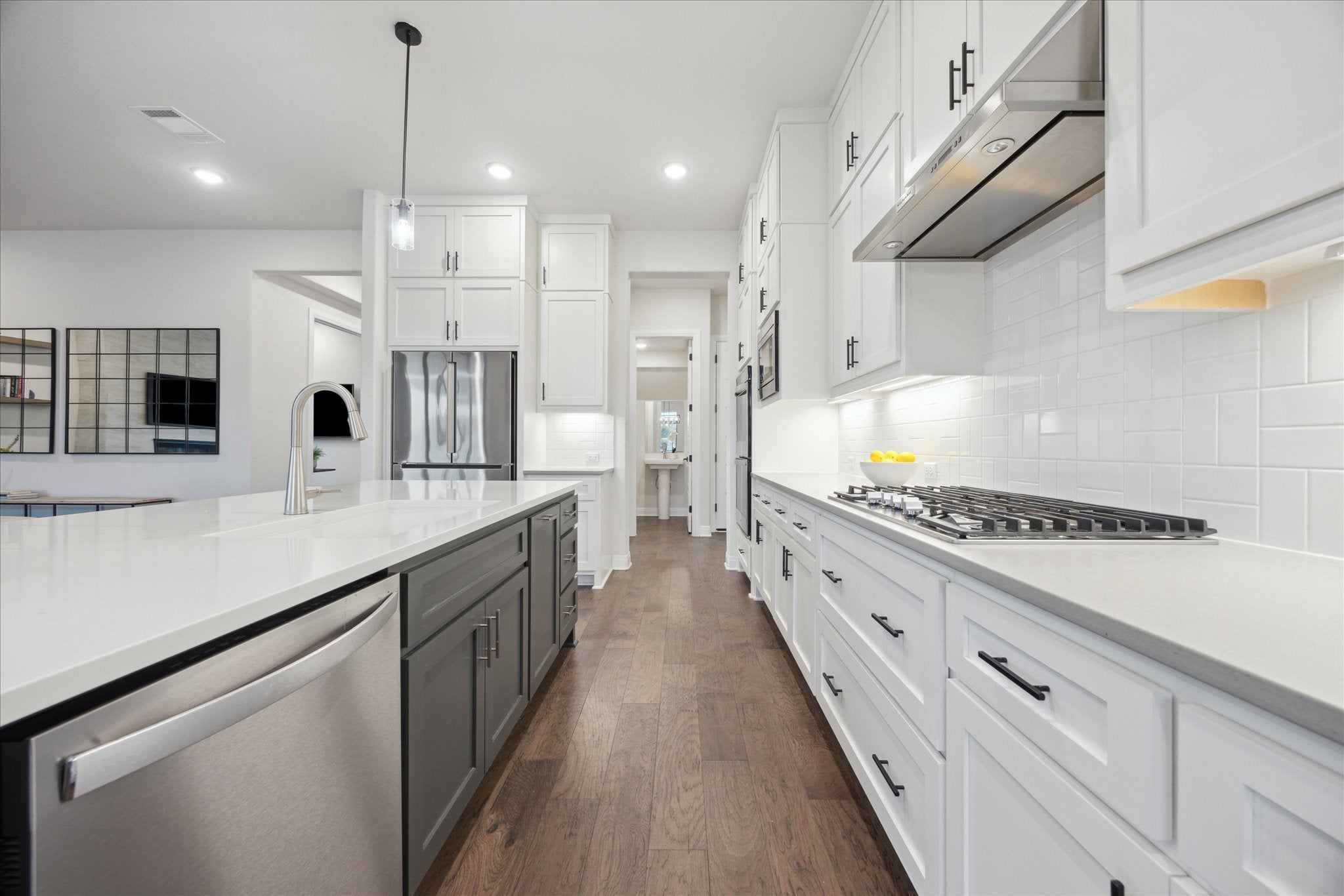 - Built-In Gas Range, Dishwasher, Gas Cooktop, Disposal, Microwave, Double Oven, Electric Oven, Exhaust Fan, Water Softener Owned