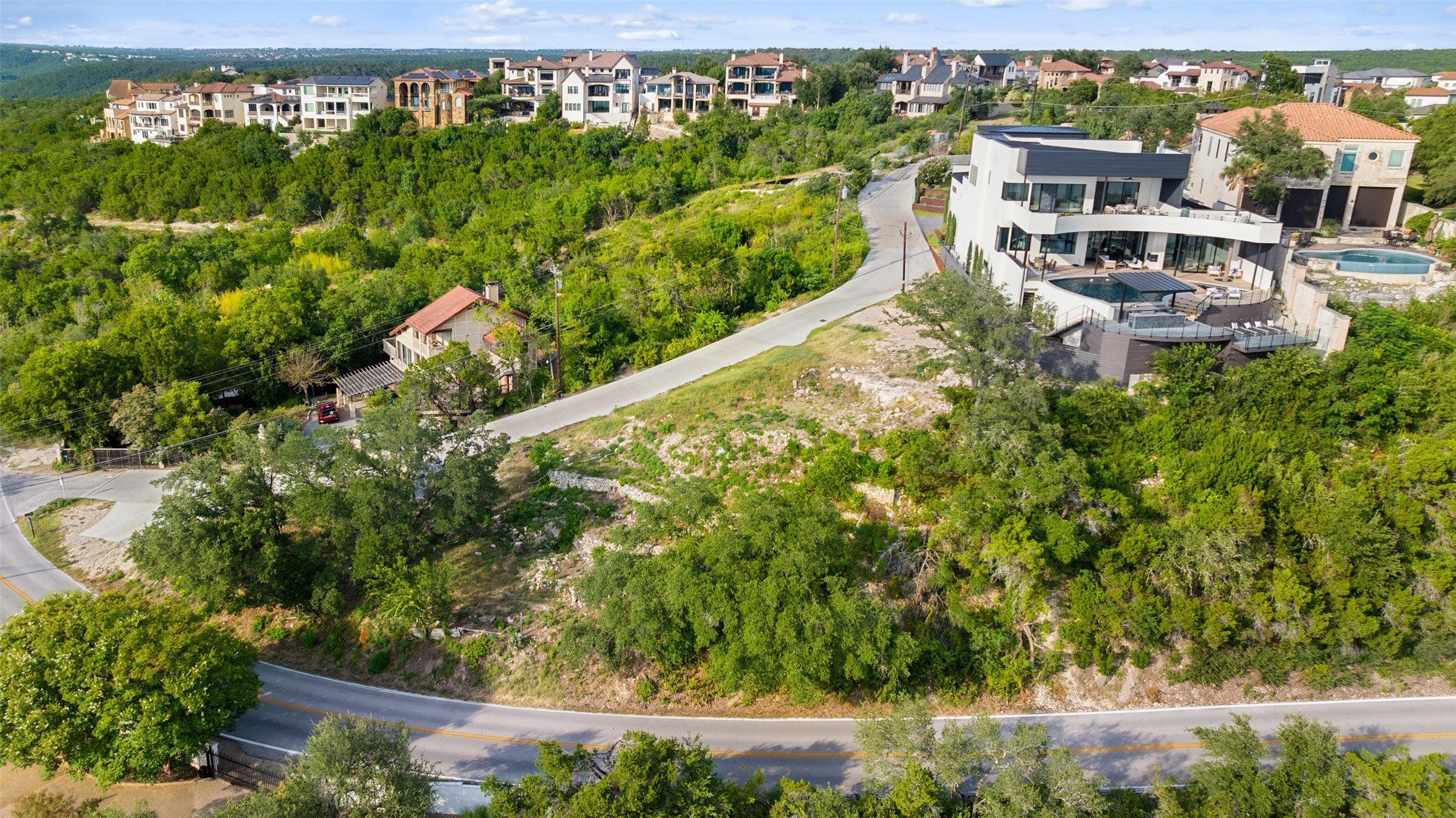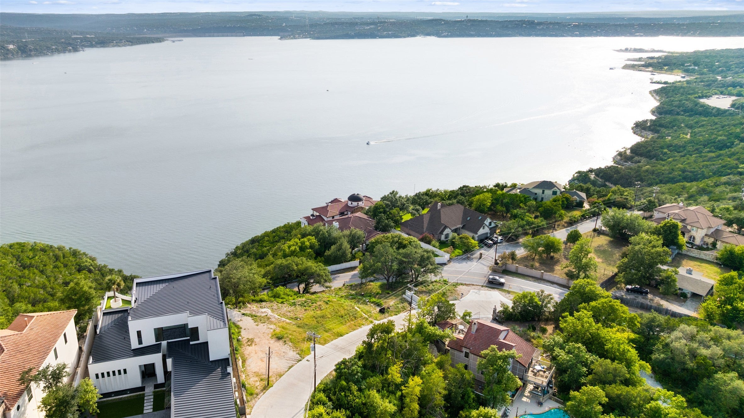 Great Development Opportunity with Stunning Views of Lake Travis Located near the acclaimed Sunset Capital of Texas, The Oasis on Lake Travis. Nestled in Austin Hill Country, this captivating .39-acre lot overlooking Lake Travis is truly one-of-a-kind. Opportunities like this don’t come around very often. Build your dream home here! Architectural plans and renderings are available by Jay Corder Architects. This ultra-modern design is just over 5,000 square feet featuring two living spaces, a fully dedicated media room, fully appointed home office, bar, guest suite, and functional storage. The design centers on open plan living, daylight, and ample outdoor living space. The pool and spa are smartly situated for direct access to both the main lawn areas and the family room. The Master Suite features his and hers closet and bathroom, private balcony, and retreat. Ancillary bedrooms on the lower level are all en suite and have direct access to the patio and pool. Aesthetically, the residence is decidedly modern, but warm and functional. Clean lines celebrate the craftsmanship and architectural details. Glass walls are abundant to take in views, daylight, and connection to adjacent exterior spaces