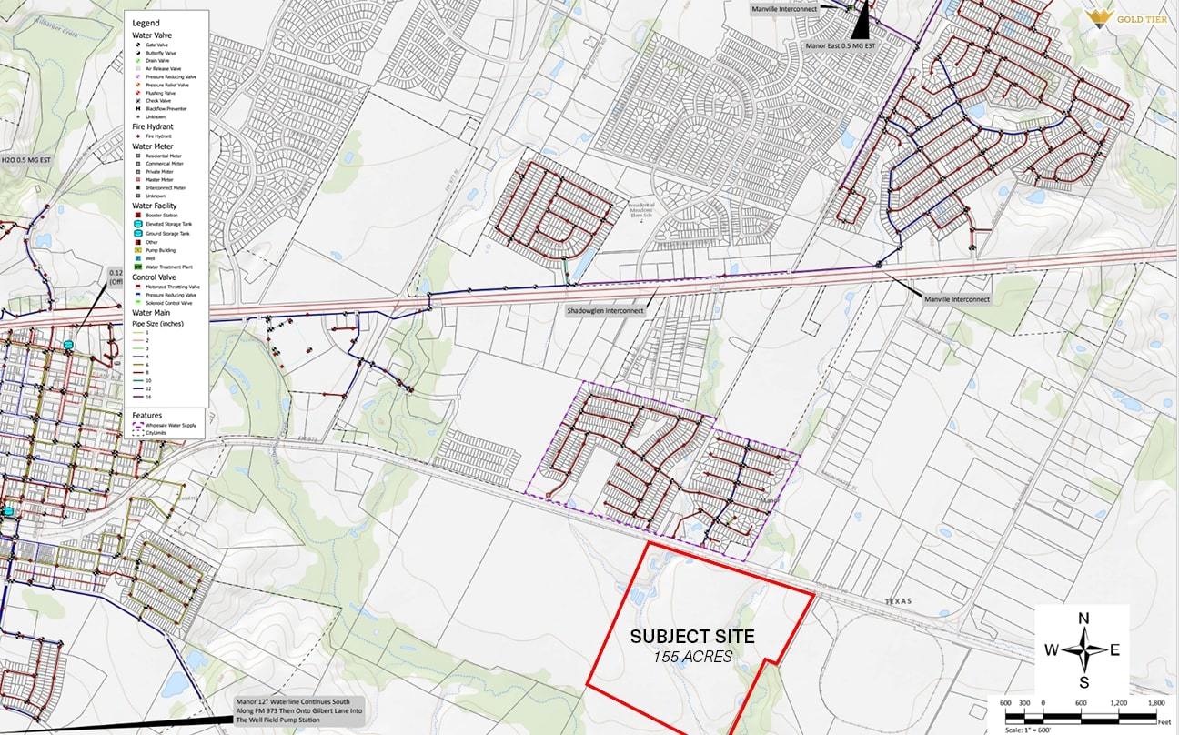 An unbelievable opportunity to acquire 155 acres in the heart of Manor. This prime property boasts an exceptional advantage with 2,700 feet of railroad frontage, a prospect that has received preliminary approval from WATCO for rail access. Furthermore, the adjacent frontage road, Old Highway 20, is poised for expansion, as it is prominently featured on the City of Manor's Thoroughfare Map for a future upgrade to 4 or 5 lanes. Currently situated within Austin's ETJ (Extraterritorial Jurisdiction), this property also stands to benefit from Senate Bill 2038, which could potentially facilitate its inclusion within the City of Manor. In terms of infrastructure, an 8-inch water line and a 12-inch sewer line are conveniently located across the street on Old Highway 20, while electric service is readily near the site. Don't miss this remarkable opportunity to secure a valuable piece of land in a rapidly developing area. **Any purchase must do their independent research regarding the development potential of this site.** Property Highlights Adjacent to New Developments, Including Major Manufacturers Austin ETJ - Potential Swap to City of Manor 8” Water Line & 12” Sewer Line Approx. 2,700 Feet of Railroad Frontage Old Highway 20 Road Expansion