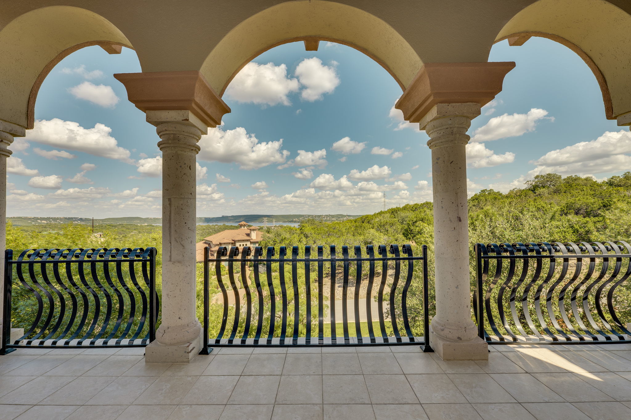Custom Built Estate home nestled on a private One Acre lot in the Gated community of Canyons at Lake Travis. Step into this amazing home with Cantera stone columns and exterior windows framed in Cantera stone. As you enter the exquisite iron doors, experience the grandeur of detailed and amazing workmanship with a blend of Texas Hill Country charm. Spacious living area with stone flooring, cathedral beamed ceilings & two grand chandeliers. A striking stone fireplace adds warmth in this expansive living area. Large dining room with beamed ceilings provides sophisticated setting for hosting memorable dinners. European inspired gourmet kitchen is a chef's delight centered around a handcrafted Lacanche range, a one of a kind masterpiece with stone hood, integrated pot filler & griddle. Expansive center island with ample seating area ideal for casual gatherings. Breakfast area overlooks tree-lined front yard with water views. Oversized pantry equipped with additional refrigerator, storage and large counter space makes meal preparation effortless. Elevator provides convenient access to both floors and blends seamlessly into the home decor. Large office with access to backyard. Primary bedroom has beautiful stone fireplace and expansive windows. Built-in coffee bar in Primary bedroom featuring Miele coffee machine, mini refrigerator, sink and microwave. Secondary en-suite bedroom on main level opens to covered porch. Spacious Gameroom/ 4th Bedroom upstairs with wet bar opens to balcony. Covered deck with Cantera stone columns with views of Lake Travis is idyllic setting for relaxation. Large secondary bedroom upstairs with views ideal for guests. Exterior pool bath offers ideal setup for future pool. Experience the best of Texas Hill Country lifestyle. Residents enjoy hiking trails throughout the neighborhood. Convenient to Lakeway & Austin. Lake Travis ISD