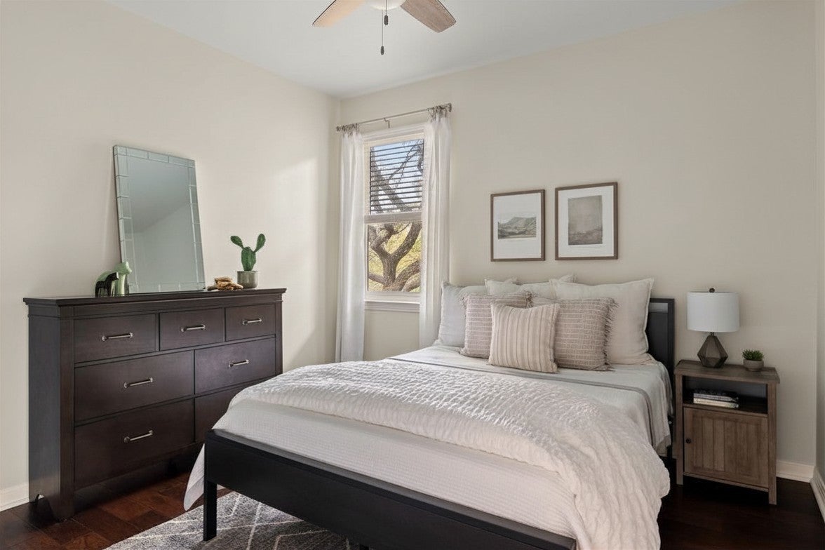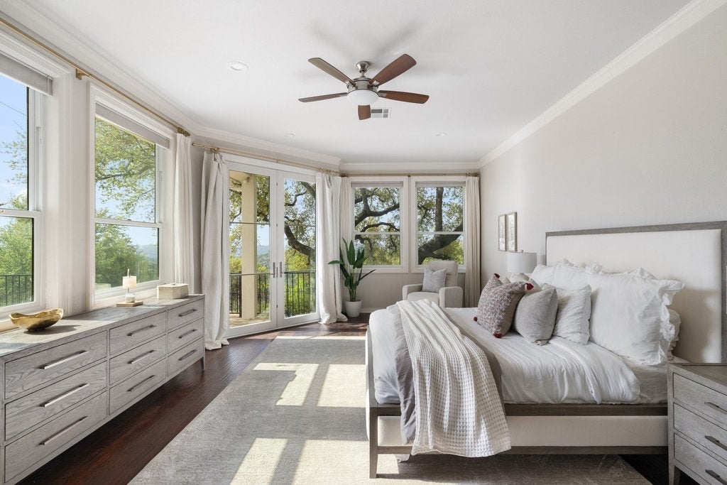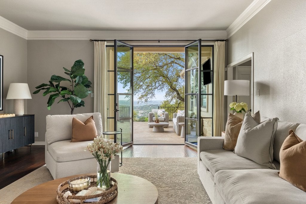 Welcome to your beautifully updated residence tucked away on a quiet cul-de-sac in the highly sought-after River Place community. Where privacy, mature surroundings, and sweeping Hill Country views come together on an expansive ~0.29-acre lot. Inside, the home unfolds with an easy, intentional flow. Open living and dining spaces that feel connected yet defined are anchored in natural light and designed to accommodate both relaxed daily routines and lively gatherings. A dedicated office with custom built-ins offers a polished, functional workspace, while the primary suite provides a true retreat with a spa-like bath, soaking tub, and a generously sized walk-in closet that’s as practical as it is refined. Upstairs, a spacious secondary living area creates a natural separation of space, ideal for media, play, or quiet downtime; alongside three well-proportioned bedrooms that comfortably accommodate family or guests. The kitchen has been carefully renovated with an eye toward both form and function, featuring premium appliances and modern, charming finishes. All bathrooms have been similarly updated. Designer windows and doors elevate the overall aesthetic and bring the outdoors in. Just beyond, a striking patio extends the living space outdoors, completing an inviting setting for evenings under the Texas sky or weekend entertaining. Above the garage sits a complete mother-in-law suite with a full bathroom, offering ideal flexibility for guests, multigenerational living, a private studio, or a home gym. Residents enjoy access to River Place amenities, including parks, trails, golf, tennis, and more, all within proximity to top-rated Leander ISD schools and just minutes from downtown Austin and The Domain.