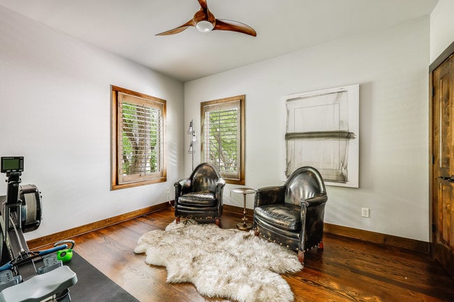 Set beneath a canopy of mature trees on one of Tarrytown's most iconic streets, this exceptional stone and stucco residence blends timeless architecture with sophisticated modern living. With the feel of a newly constructed single-family home, every detail has been thoughtfully curated to deliver both elegance and ease. The open-concept main level features soaring ceilings, rich hardwood flooring, and abundant natural light. A striking mosaic-tile fireplace anchors the living area, while the kitchen is a designers dream outfitted with premium stainless steel appliances, a Wolf gas range, custom cabinetry with double uppers, and a dramatic waterfall-edge island topped with a Kallista sink and fixture. Anne Sacks tile adds elevated texture to the backsplash and utility room, underscoring the high design sensibility throughout. Upstairs, the primary suite offers a peaceful escape with a private balcony, oversized proportions, and a beautifully updated ensuite bath with dual vanities and an expansive walk-in shower. Two additional bedrooms with hardwood floors and a stylish secondary bath provide flexibility for family, guests, or work-from-home needs. The attached two-car garage featuring a wood-paneled door and commercial-grade epoxy floor is the only shared wall, ensuring privacy and a true single-family feel. French doors open to a landscaped outdoor sanctuary with custom concrete and steel detailing, a pergola-shaded deck, and architecturally designed fencing that combines metal and water-jetted concrete for a one-of-a-kind backyard retreat. Located just minutes from downtown Austin, Lady Bird Lake, and the best of Central Austin, this home is a rare opportunity to live beautifully in one of the city's most coveted neighborhoods. Designer furnishings are available for purchase, allowing for a truly turnkey experience.