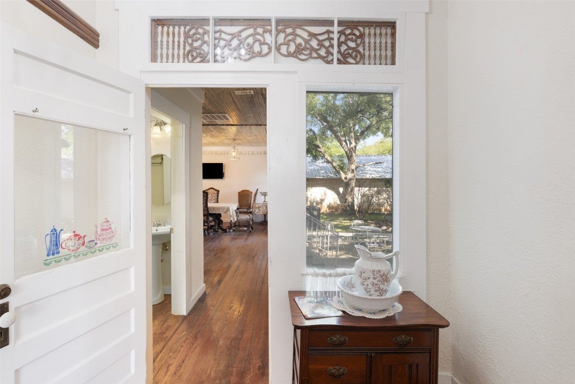 Experience timeless Hill Country charm at The Historic Pearl Hotel, a beautifully restored landmark overlooking the Town Square in downtown Johnson City, Texas. Built in the 1880s by city founder James Polk Johnson—who named it after his daughter, Pearl—this storied hotel once welcomed cattle drivers, weary travelers, and locals alike. Since then, it has stood proudly on the southwest corner of the courthouse square as a living piece of Johnson City’s past. Over the years, the building has worn many hats, even housing the town’s first public school and post office, making it a cornerstone of local history. In 2019, a local owner lovingly restored the property, honoring its original craftsmanship while thoughtfully adding modern essentials such as an ADA-compliant bath and updated kitchen. Throughout the hotel, antique furnishings and preserved architectural details tell stories of generations past—every wall and wood beam whispering history. The Pearl features eight period-style bedrooms, three shared bathrooms, and a cozy parlor perfect for unwinding with friends or guests. The venue’s inviting side patio, front porch, and upper deck provide ideal spaces for intimate weddings, family gatherings, private retreats, or corporate getaways. Just steps from local wineries, boutiques, Pedernales Falls State Park, and the LBJ National Historical Park, the Pearl sits in the heart of “Wine Row,” surrounded by the best of Texas Hill Country charm. From the balcony, guests enjoy one of the best views in town—especially magical during the annual Christmas Lights Spectacular. Staying here feels like stepping back in time, yet with all the comfort and convenience of today. Whether you’re a history lover, a couple seeking a romantic escape, or planning a memorable celebration, The Historic Pearl Hotel offers an unforgettable blend of authentic heritage and modern hospitality.