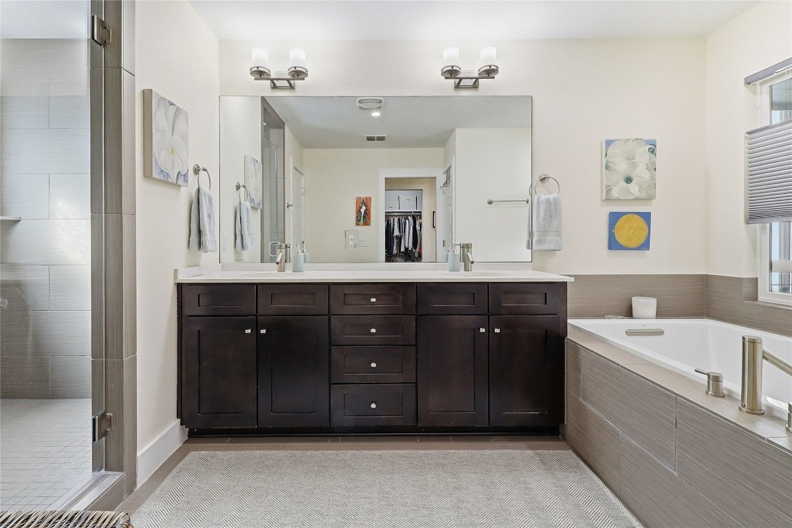 Located in the heart of Tarrytown, this property is the ultimate lock and leave lifestyle. Nestled within a modern boutique community of eleven townhomes the community is connected and warmhearted. With no shared walls this property lives more like a single family home verses a condo. You are welcomed by an inviting courtyard ready for your morning coffee. Light and bright inside, the sun splashed open living, dining and kitchen is ideal for entertaining and family gatherings. The kitchen is a chef's dream complete with stainless Bosch appliances, 5 burner cooktop, quartz countertops, custom cabinetry and mosaic tile. Upstairs are three generously sized bedrooms - one with a clever built-in murphy bed. The expansive primary bedroom with vaulted ceilings includes a custom walk-in closet designed by J Jones Custom Millwork. The bathroom is a spa like retreat with sunken tub, double sized shower, dual vanities and designer tile. Bamboo hardwoods throughout the upstairs add to the warmth. Bonus is a small terrace off the primary bedroom perfect for an evening wind down or morning yoga sessions. The outdoor spaces are a delight with a fully turfed backyard nestled under a canopy of trees and a charming courtyard in front. The best surprise is the private, gated access direct into Westenfield Park. The community is adjacent to the park so residents enjoy the benefits of a pool, pickleball/tennis courts, basketball court, a playground and sports field –all in your back yard. Around the corner is the Johnson Creek trailhead leading straight to Austin's treasured Town Lake Hike & Bike aka Ladybird Lake. Energy efficient adds include solar panels, tankless water heater and dual pane windows. Tarrytown is one of the most sought after neighborhoods in Austin with excellent schools, park systems, walkable to Mozart’s and Littlefield’s, HEB, MUNY Golf Course and minutes to beautiful, beloved Lake Austin. Minutes to downtown, Trail is in the heart of it all.