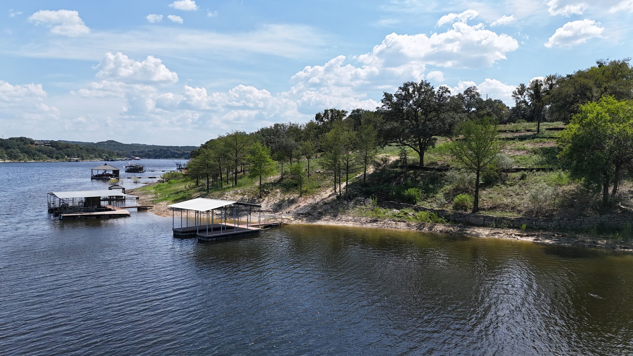 An exceptional opportunity along the Pedernales River arm of Lake Travis, three and a half contiguous legal lots totaling approximately 4.928 acres of deep water frontage at 1013, 1015, and 1017 Lakeshore Drive. Ideal for a private waterfront estate, multi home compound, or long term investment in one of the Hill Country’s fastest growing luxury corridors. Gently sloping and highly buildable, the property offers a large footprint with unique width that expands as it approaches the shoreline, creating broader views, enhanced privacy, and a more expansive waterfront presence than many neighboring lots. A topography and tree survey is available. Mature oak and cypress trees complement the natural Hill Country setting. Located approximately one mile from the Lake Travis main basin, the property enjoys deep water and approximately 251 feet of frontage at the 680 foot contour line. Two private boat docks with three total slips provide immediate access to boating and recreation. All homesites sit above the 724 foot elevation, supporting strong buildability and long range, unobstructed views of the Pedernales River bluffs and across to the Loraloma luxury community within Thomas Ranch, featuring the David McLay Kidd designed golf course. Nearby, Travis Club is completing its Beau Welling designed golf course and building luxury residences, while Thomas Ranch continues development of its 2,200 acre master planned community with residential villages, trails, and retail. This Highway 71 corridor near Spicewood is rapidly transforming with high end amenities and luxury home growth. A rare chance to secure multiple deep water lots in a thriving waterfront enclave. Ask about the newly completed LCRA Arbuckle Reservoir and its positive impact on long term Highland Lakes water supply support.