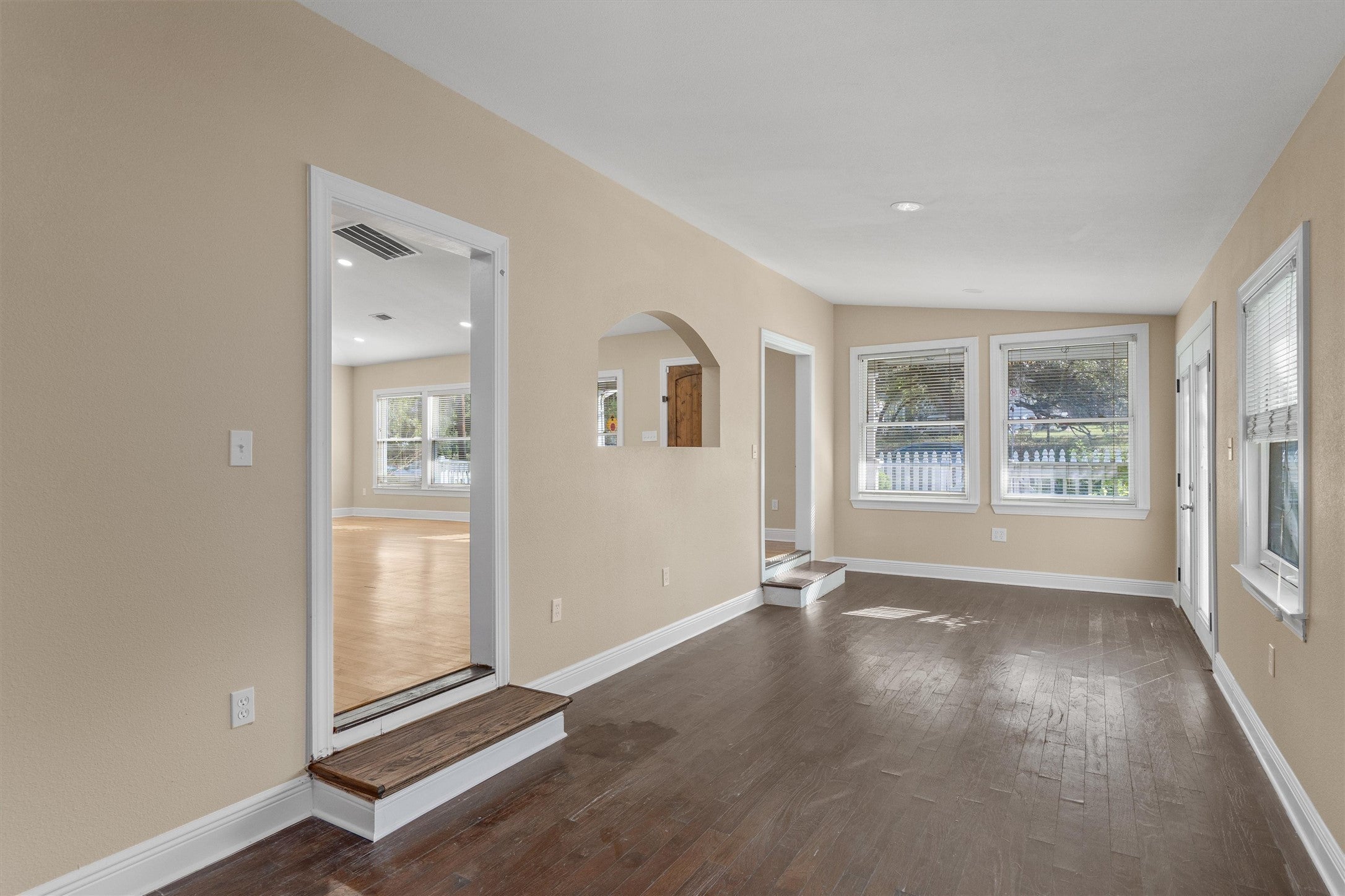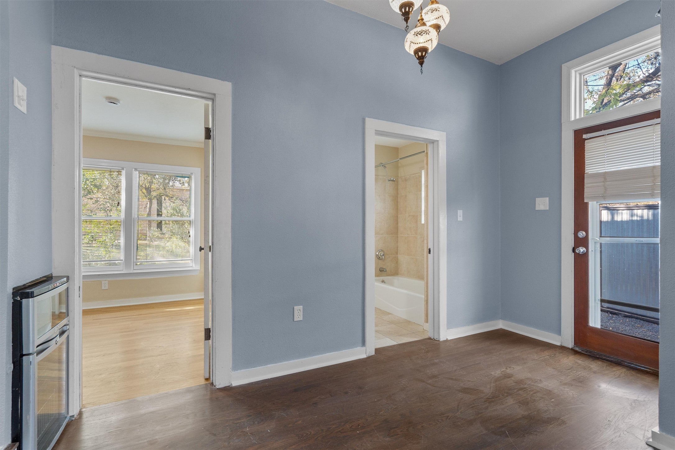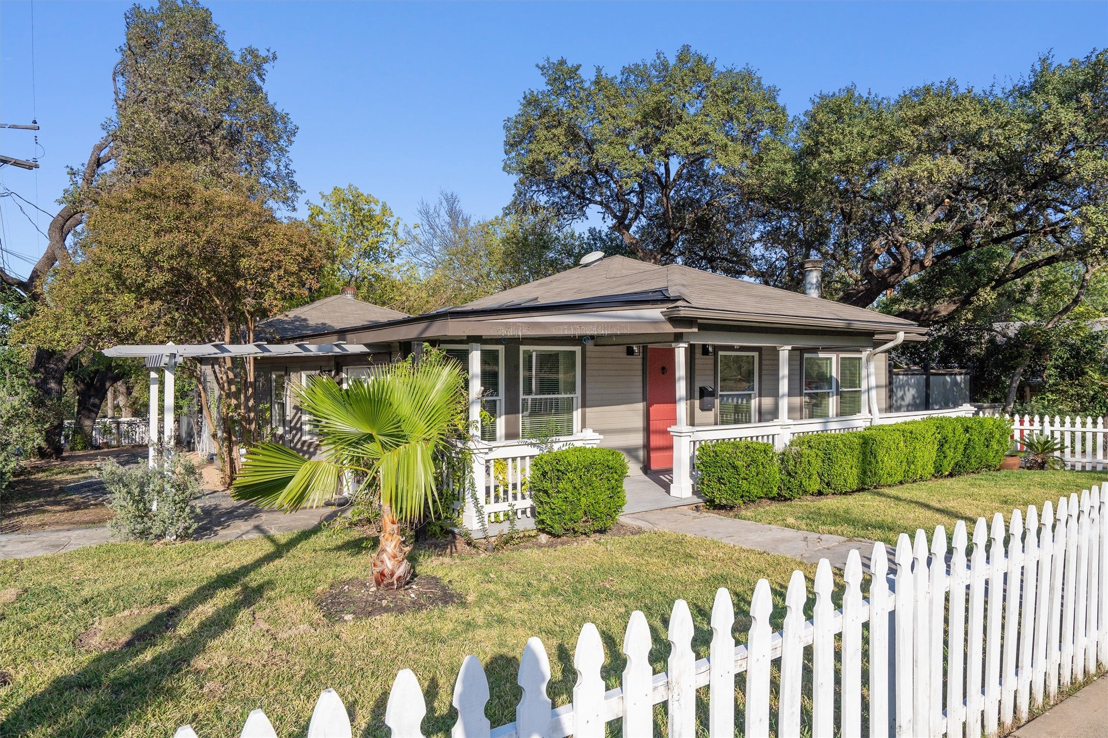 Available now! 400 E Monroe St is a beautifully updated single-level home in Austin’s coveted 78704. Featuring wood floors (no carpet), beamed ceilings, crown molding, recessed lighting, a fireplace, custom built-ins, and multiple living areas centered around the dining room and kitchen. The open kitchen offers granite counters, a breakfast bar, pantry, wine fridge, and full appliances including washer/dryer. Extensive upgrades include new sheetrock and paint, updated electrical, HVAC, and water systems, tankless water heater with PEX plumbing, new roof, raised ceilings with skylights, and modern Pella windows. Situated on a lush corner lot with a private yard, deck, covered porch, patio, and refreshed landscaping. Parking includes two dedicated spaces plus off-street options. Pets welcome (up to 2 under 35 lbs); tenants responsible for lawn care ($70/month) and Resident Perks Program ($25/month). Just minutes from SoCo, South 1st, and Lamar—offering dining, shops, coffeehouses, and Austin culture at your doorstep.