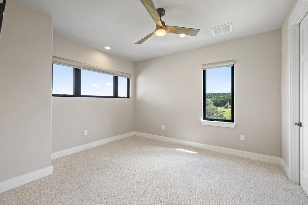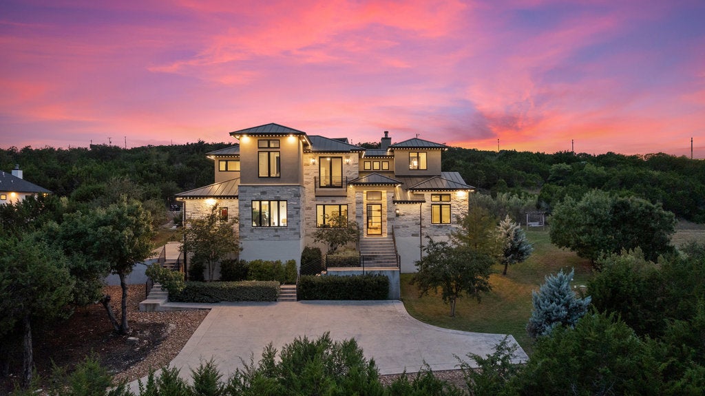 Serene Luxury with Lake Travis Views – Experience the perfect blend of privacy, sophistication, and Hill Country charm in this custom home by County Line Custom Builders. Set on 1.54 beautifully landscaped acres in the coveted Tres Verde community, this gated estate offers 4,273 square feet of luxury living with 5 bedrooms and 5 full baths. Step inside to an open floor plan featuring hardwood floors, plantation shutters, designer lighting, and abundant natural light. The Chef’s Kitchen delights with Quartzite countertops, custom white cabinetry, a built-in wine fridge, and a butler’s pantry. The living room centers around a cozy fireplace, while expansive Marvin sliding glass doors frame views of the sparkling pool and spa. The thoughtful layout offers privacy and flexibility, with the primary suite and two guest rooms on the main level, plus two ensuite bedrooms upstairs. A dedicated home office and two inviting living areas complete the interior. Outdoors, enjoy multiple spaces for entertaining—from covered verandas and dining areas to a fire-pit lounge with panoramic Hill Country and Lake Travis views. The pool and spa create a private resort feel, enhanced by a hardwired camera system, extensive outdoor lighting, and built-in holiday illumination. Car enthusiasts will appreciate the oversized three-car garage with high ceilings and a car lift. The standing seam metal roof, limestone masonry, and stucco exterior showcase timeless Texas craftsmanship. Located within highly rated Lake Travis ISD, just 10 miles from the Hill Country Galleria and 25 miles from downtown Austin, this home combines tranquility and convenience. Nearby marinas, golf and tennis clubs, fitness centers, wineries, and live music venues complete the lifestyle—with low taxes and HOA fees. This serene Hill Country retreat offers the best of luxury living—a rare opportunity to own a private oasis with views, space, and style.