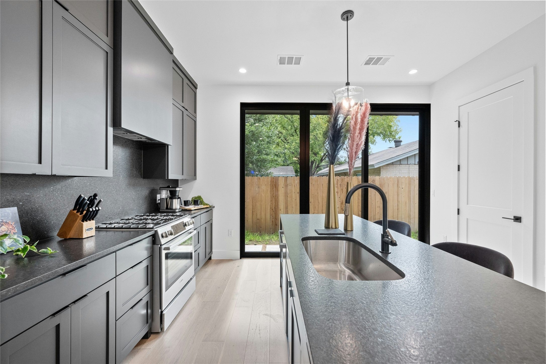 Gorgeous Sett Studio energy efficient home in highly desirable 78704 zip w/GARAGE & HUGE yard + 2 Parking Spaces! DREAM LOCATION for those looking for walkability just steps to Radio Coffee & Beer, where you can grab coffee & get some work done or end the day with a beer & live music. 78704 is Austin's highly desired zip for walkability with parks including Zilker Park, Lady Bird Lake trail, Barton Creek greenbelt, Barton Springs natural spring fed pool, shops, restaurants, live music, bars & more! The striking black exterior sets the tone for the stylish interior, where floor-to-ceiling windows fill the home with natural light, highlighting French white oak floors, modern fixtures, and 10' ceilings. Main Level: The open-concept living area features a chefs kitchen with black leatherized granite countertops, a spacious island, gas range, & floor-to-ceiling cabinetry for ample storage. The kitchen seamlessly connects to the dining area, perfect for hosting gatherings. Upper Level: Two ensuite bedrooms offer privacy & comfort. Outdoor Retreat: The fully fenced backyard with mature trees is your private sanctuary, connected to the living area by floor-to-ceiling glass sliders, the perfect space for entertaining or relaxing. Prime Location: Minutes from Austin hotspots like Radio Coffee & Beer, Dans Hamburgers, Easy Tiger & Barton Creek Greenbelt, this home offers easy access to downtown Austin's dining, shopping & outdoor activities. No HOA fees! *Information deemed reliable but not guaranteed. Buyer to independently verify all information including but not limited to square footage, lot size, restrictions, schools, taxes, etc. Buyer to verify city of Austin STR restrictions. Condo docs will be prepared if units sold separately. Taxes are just an estimate taking $695k x 2025 tax rate.