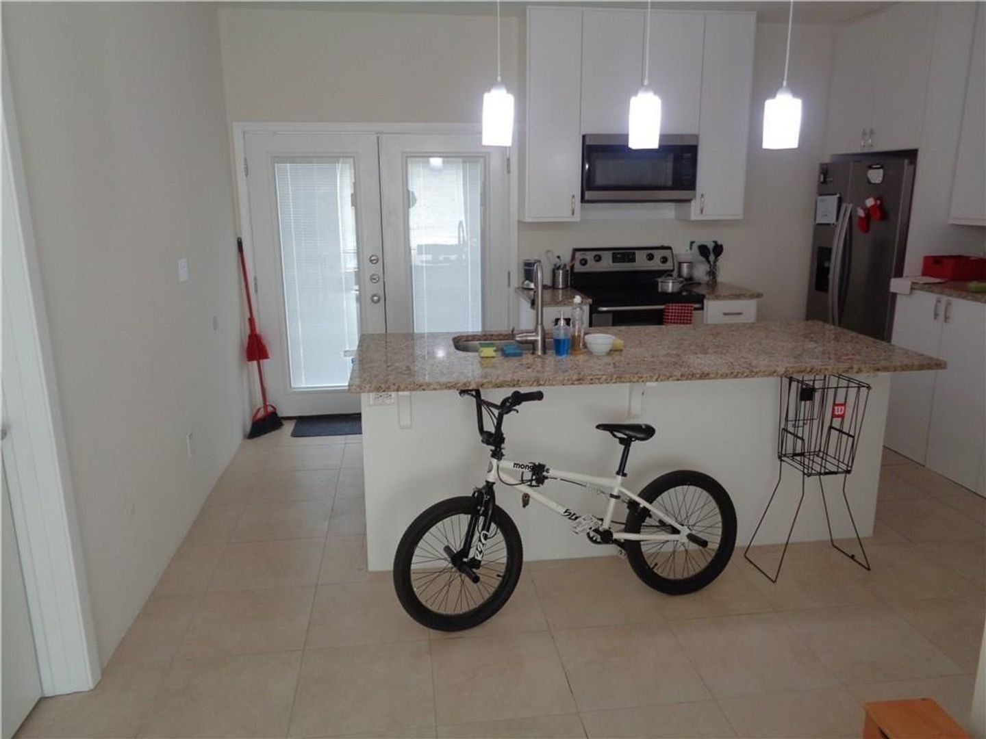 Three bedrooms with private bathrooms. Hard tile throughout, no carpet. Stainless steel appliances. Includes full-size washer and dryer. Open airy kitchen/living floor plan. French doors for easy move-in. Complex has 2 bike racks. 2 blocks from the Speedway bus line and within walking distance of the UT campus. Comes with 2 reserved parking spaces. Street permit available through the city.