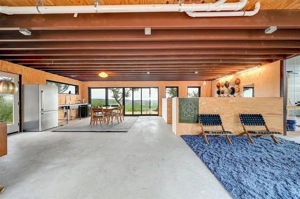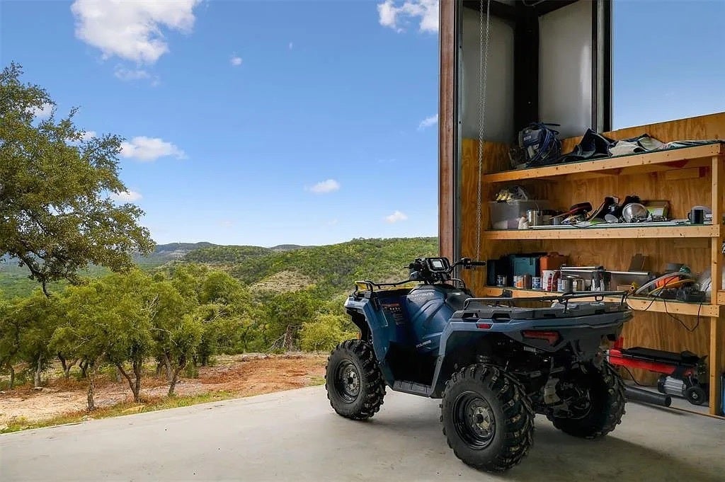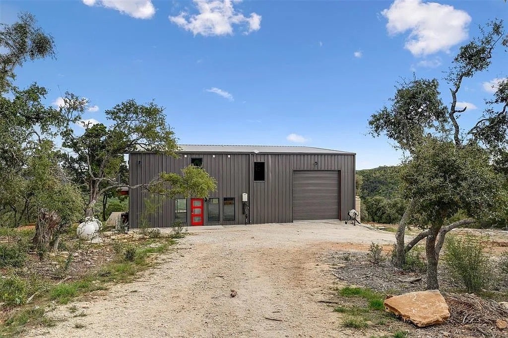 Best views in Central Texas! Escape from the city or live here while you build your dream house on this 18-acre sanctuary. The high-end 30'x60' barndominium boasts an upstairs 900sqft 1/1 with wrap-around balcony sitting out into the canyon. Downstairs is a kitchenette, full bath, studio space, massive garage workshop, and ample outdoor spaces to relax. Conveniently located just 15 minutes from Wimberley and 10 minutes from Canyon Lake. This prime piece of land offers unparalleled canyon vistas and multiple prime building sites. Wander along the groomed walking paths enveloped by lush tree canopies and envision your dream home perched on the ridge, offering panoramic views of the canyon below. The land is rich with mature hardwoods and junipers, awaiting your personal touch to bring your vision to life. Ideal for those in search of a secluded haven without sacrificing location, this property offers the perfect blend of privacy, natural beauty, and accessibility.