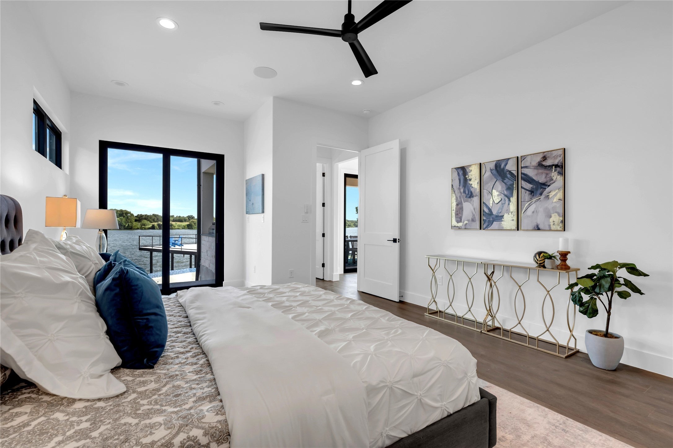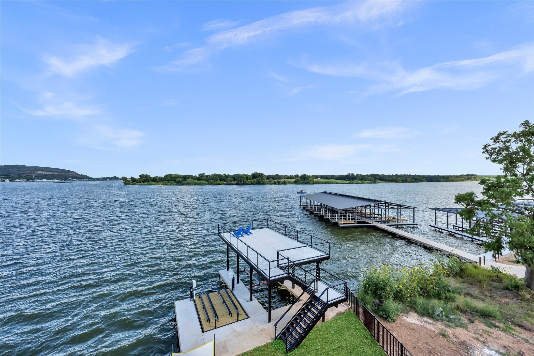 Welcome to 144 Riverfront Lane, where luxury meets relaxed lake living. This beautiful new Keith Wing Custom Home greets you with incredible east-facing views of Lookout Mountain the moment you walk through the door, thanks to stunning floor-to-ceiling glass sliders. With over 4,369 square feet, there’s room for everyone—5 bedrooms, a spacious bunkroom, and 4.5 bathrooms make it perfect for hosting family and friends. The kitchen is the heart of the home, featuring high-end appliances, a large granite island, and plenty of space to gather. The primary suite on the main floor is a peaceful escape, complete with a spa-like bathroom, sitting area, and direct access to the patio, pool, and lake views. Step outside and enjoy everything lake life has to offer—an outdoor kitchen, pool, hot tub, and beautiful sunsets. The private boat dock includes a lift, upper deck, and wave runner lifts, making days on Lake LBJ effortless and fun. The private neighborhood marina offers extra boat slips if needed/desired. Located in the desirable gated community of 2 Rivers Landing and built with exceptional quality, this home is ready to create lasting memories for years to come. Great spot on Lake LBJ to view the Kingsland Community July 4th Fireworks. Come take a private tour. Lake Livin' made EASY.