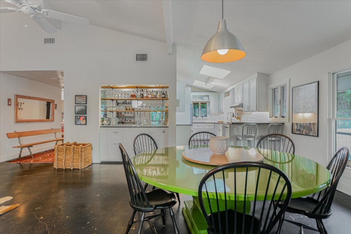 This is the one you've been waiting for. Tucked away at the end of a quiet riverside road, this one-of-a-kind estate feels like your own private paradise on the water. With two acres shaded by mature trees, 200 feet of Blanco River frontage, and ranch land on two sides, it’s the kind of place made for slowing down and making memories. Perfect for gathering with loved ones or savoring a quiet evening on the river, this waterfront home is designed to be enjoyed for generations. The property includes a main home and a charming guest bunkhouse, so there’s plenty of room for family and friends. Out back, the deep limestone pool and spa overlook the river, with a handcrafted outdoor fireplace, perfect for cool nights. Or you can wander down the grassy slope and sit in the water while the sun sets. Inside the main home, you’ll find a cozy stone fireplace, a modern kitchen with top-of-the-line appliances, and a wet bar that makes entertaining a breeze. Each of the three bedrooms has its own bathroom, and there’s a powder room near the living area for guests. The laundry doubles as a butler’s pantry with a second fridge — a small detail that makes a big difference. The bunkhouse next door is its own little getaway with a stone fireplace, projector, rec room, sleeping area, bathroom, and covered porch. Plus plenty of outdoor fun with horseshoes and washers. Additional amenities include a basketball court, swing set, garden, and an oversized fire pit ready for long nights under the stars. Here, there are endless ways to enjoy the outdoors year-round. This is a home built to enjoy — whether you’re sitting in the river, soaking in the pool, hosting a dinner party, or just curled up by one of the many fireplaces. Once you’re here, you won’t want to leave. Zillow 3D Home Tour Available