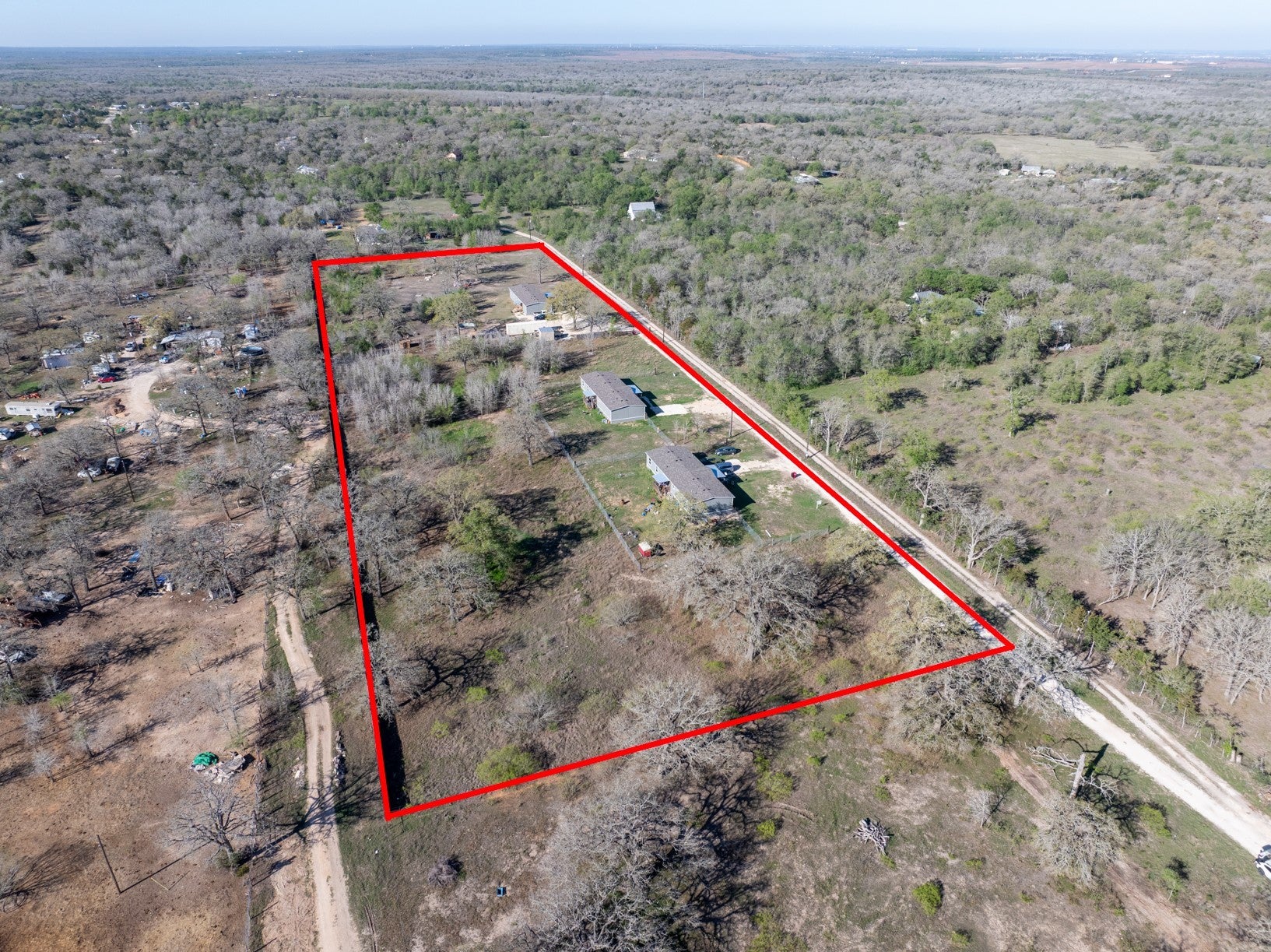 Amazing opportunity to purchase two side-by-side lots totaling 8 acres in the up-and-coming Cedar Creek area. The property includes three newer mobile homes with current tenants in place, each renting for $2,000 per month. Lot A features two mobile homes and Lot C include one mobile home, providing immediate rental income and great potential for future growth in a rapidly developing area.