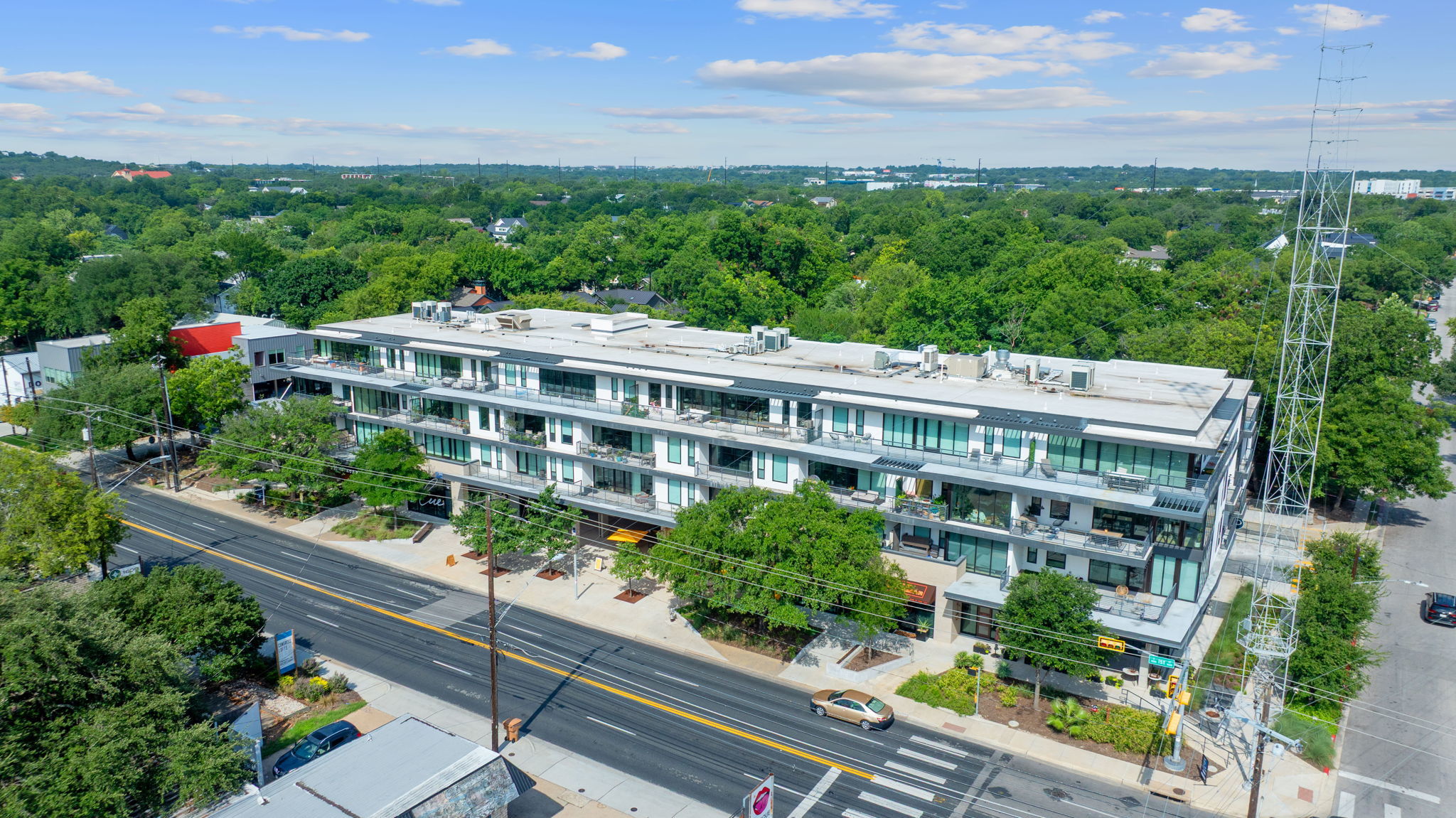 Welcome to a rare top floor, corner residence that lives like a luxury, single-family home in the heart of Austins most coveted zip codes, 78704. This spacious 3-bedroom, 2.5-bath floor plan spans has been thoughtfully remodeled with bespoke upgrades, including high end bathroom tile, chic light fixtures, a fresh backsplash, designer wallpaper, and new paint throughout. Floor-to-ceiling windows flood the home with natural light, framed by custom drapery that enhances both the city skyline and treetop views of Bouldin. The expansive, wraparound ~540 SF balcony invites you to enjoy morning coffee, sunsets, and effortless entertaining against a stunning backdrop of downtown Austin. Inside, the layout offers the comfort and convenience of a single-family home, featuring a welcoming entry, a powder bath for guests, a huge laundry room, and a walk-in pantry. The primary suite provides a serene retreat with a spa-like bath and a generous walk-in closet, while secondary bedrooms offer flexibility for family, guests, or a home office. Condo comes with two secure garage parking spaces. Perfectly positioned in one of the best locations in 78704, this residence offers a vibrant community just steps from South Congress, Downtown, and Austins most celebrated dining and entertainment.