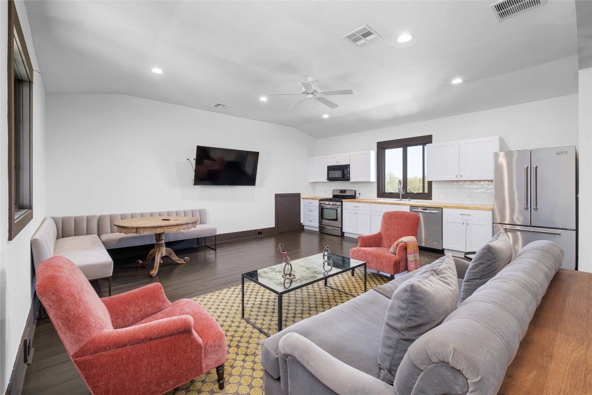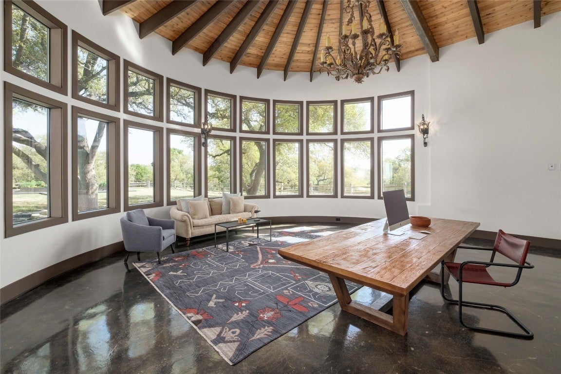Nestled in the heart of the Hill Country and less than 5 minutes from The Driftwood Club, this stunning luxury estate offers the perfect balance of seclusion, sustainability, and modern living. Set on a gated, 12.3 acre agriculturally exempt property, it’s surrounded by lush landscapes and magnificent towering oaks, creating an idyllic retreat just minutes from downtown Austin.This home is designed with energy efficiency in mind, featuring full solar power and a deep water well, offering both environmental sustainability and cost savings. The outdoor area includes a beautiful pool and spa, ideal for relaxation or entertaining under the Texas sun. For those who love to entertain or need space for hobbies, the 4,000 sq ft party barn with a commercial kitchen offers a versatile venue for events, while the climate-controlled garage/workshop areas provide ample room for multiple cars, or could easily be transformed into a recording studio, art studio, or any creative space you desire. Additionally, there are six custom guest cabins offering charming, private accommodations for visitors or family members. With just a 25-minute drive to downtown Austin, this exceptional property offers both the peacefulness of country living and the convenience of city access. It’s an extraordinary opportunity to own a one-of-a-kind estate that combines modern amenities and expansive living spaces. Seller willing to provide concessions toward a membership at Driftwood Club.