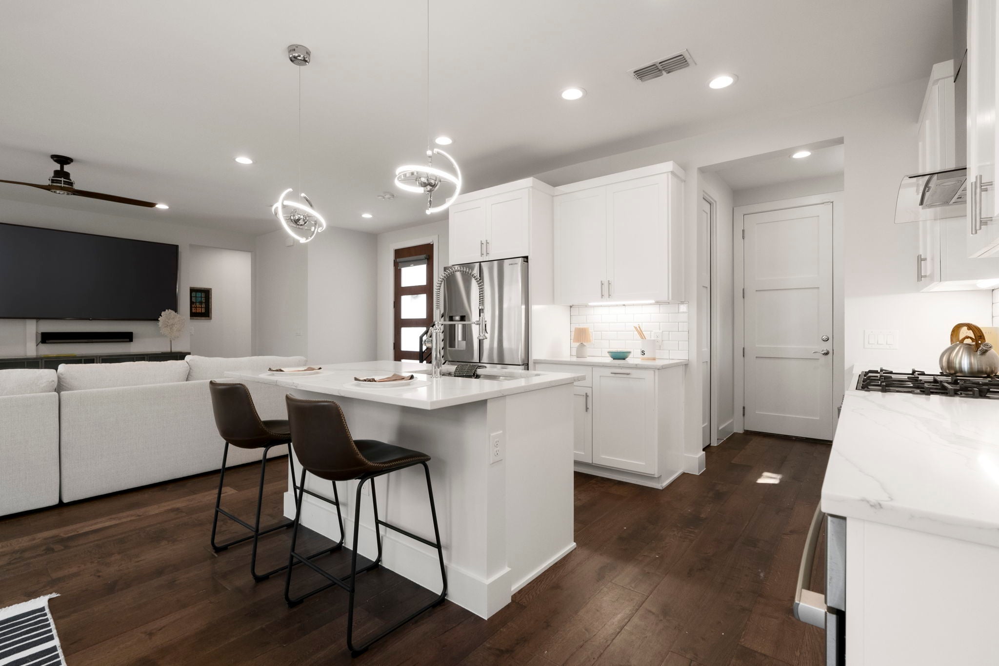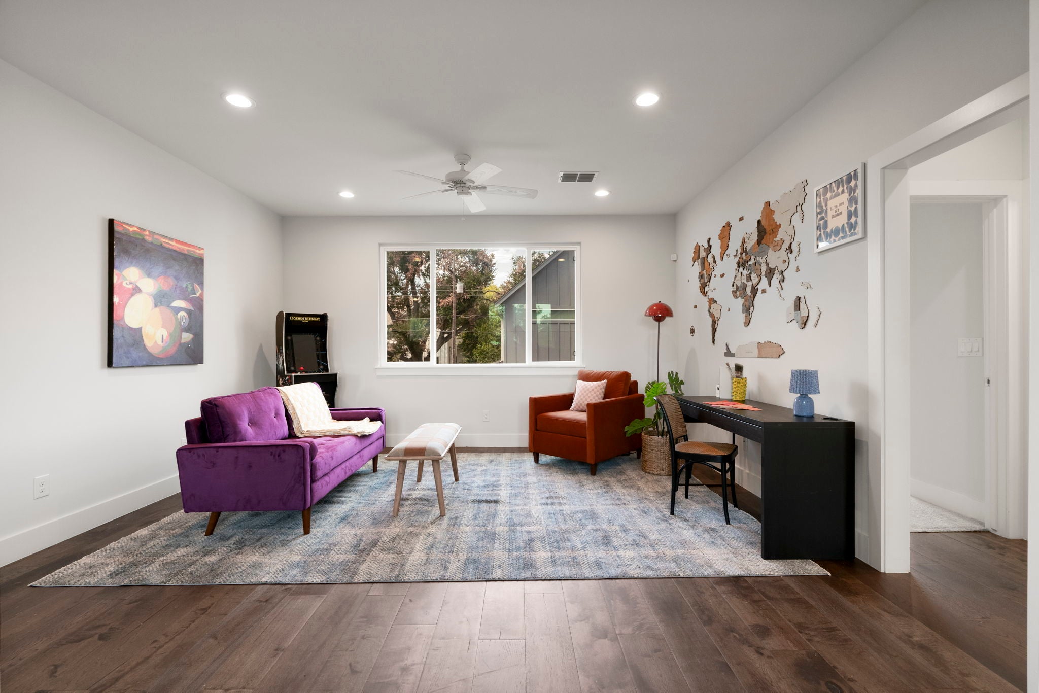 Located in Austin’s Wooten neighborhood, this 2020 modern build offers stylish, energy-efficient living in a prime North Austin location near Burnet Road, The Domain, and Q2 Stadium, with convenient access to 183, MoPac, and I-35. The open-concept floor plan creates an easy flow between the kitchen, dining, and living areas, making the home ideal for both daily living and entertaining. The main-level primary suite offers privacy and convenience, while upstairs features three additional bedrooms, two full baths, and a spacious second living area that can function as a media room, home office, playroom, or fitness space. Thoughtful upgrades include solar panels, a Tesla Powerwall, and an EV charger, offering energy efficiency and modern functionality. The private backyard includes a hot tub and room to relax or entertain under the Texas sky. Set in an established North Austin neighborhood close to local restaurants, coffee shops, parks, shopping, and major employers, this move-in-ready home offers comfort, flexibility, and a great 78757 location.