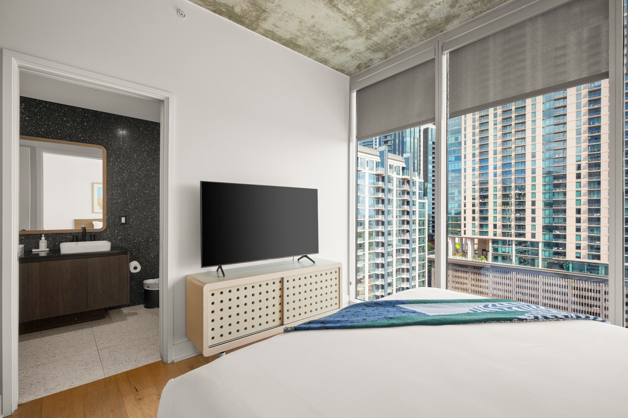 Welcome to 48 East Ave #2004, a chic 1-bedroom, 1-bathroom condo in the heart of downtown Austin at Natiivo. Designed with modern elegance, this fully furnished residence features sleek finishes, floor-to-ceiling windows with sweeping city views, and a bright open-concept floor plan. The kitchen showcases flat-front cabinetry, built-in appliances, and open shelving, while the spa-inspired bathroom offers a double vanity, striking tilework, and a spacious glass-enclosed shower. This condo is an incredible opportunity for short-term rental income potential—with all the hard work already done. Ready to host, it offers buyers a turnkey investment in one of Austin’s premier buildings. Residents and guests enjoy world-class amenities that enhance every stay, including a rooftop swimming pool with cabanas and lounge seating, a 10th-floor fitness center with yoga and Peloton studios, outdoor workout space, and state-of-the-art equipment. Additional perks include co-working spaces, a coffee bar in the lobby, a 33rd-floor clubhouse, outdoor terrace and garden, rooftop fireplace, dog run and pet washing station, bike storage, keyless entry, 24-hour valet parking, and concierge services provided by Natiivo’s MasterHosts. Just steps from Rainey Street, Lady Bird Lake, and Austin’s best dining and nightlife, this Condo is a turnkey short-term rental investment with built-in income potential.