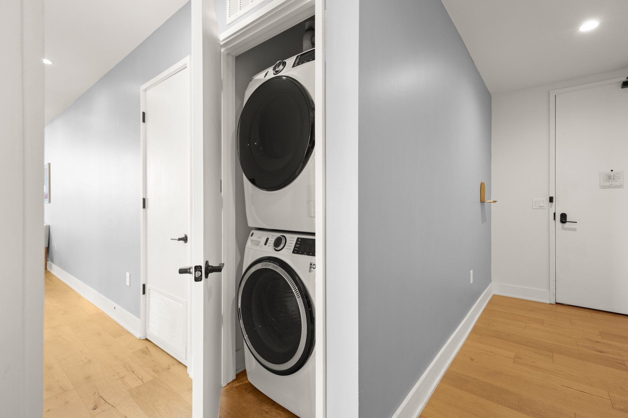 - Dishwasher, Disposal, Dryer, Electric Cooktop, Electric Oven, Refrigerator, Stainless Steel Appliance(s), Washer