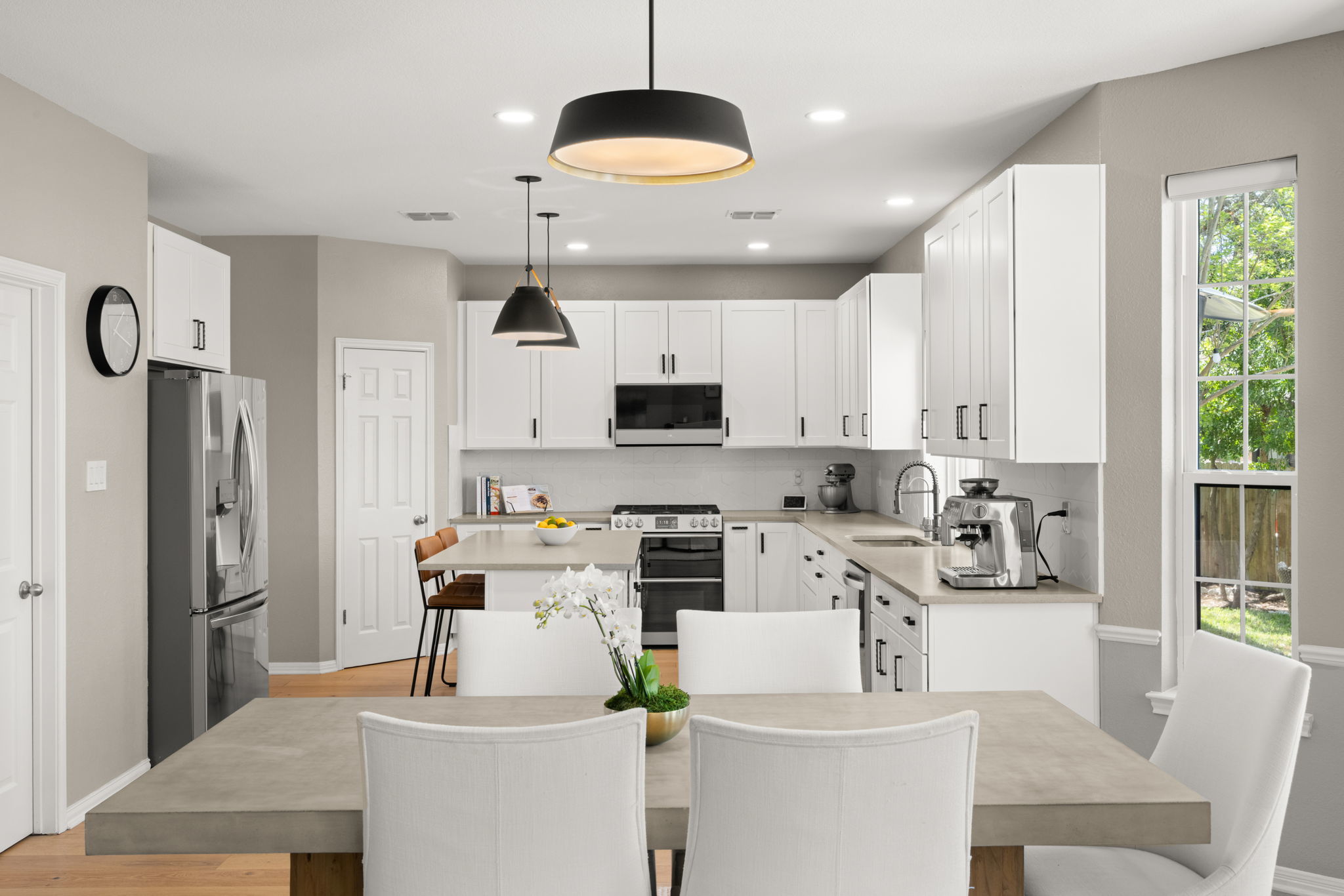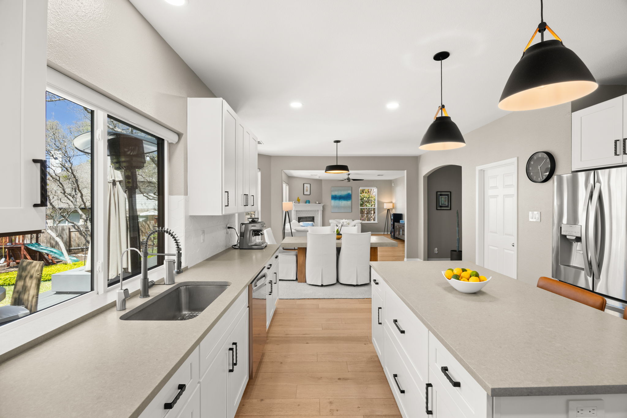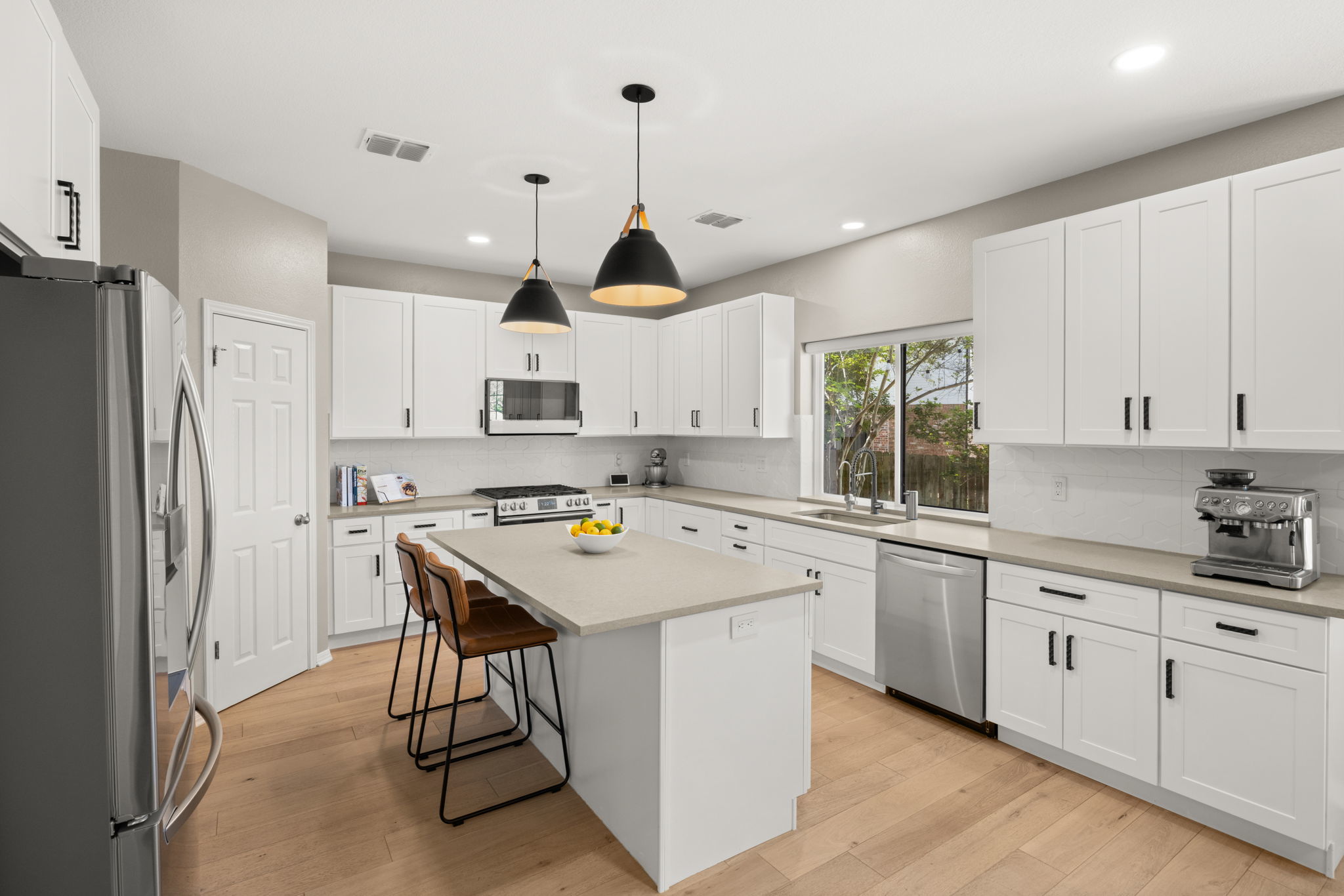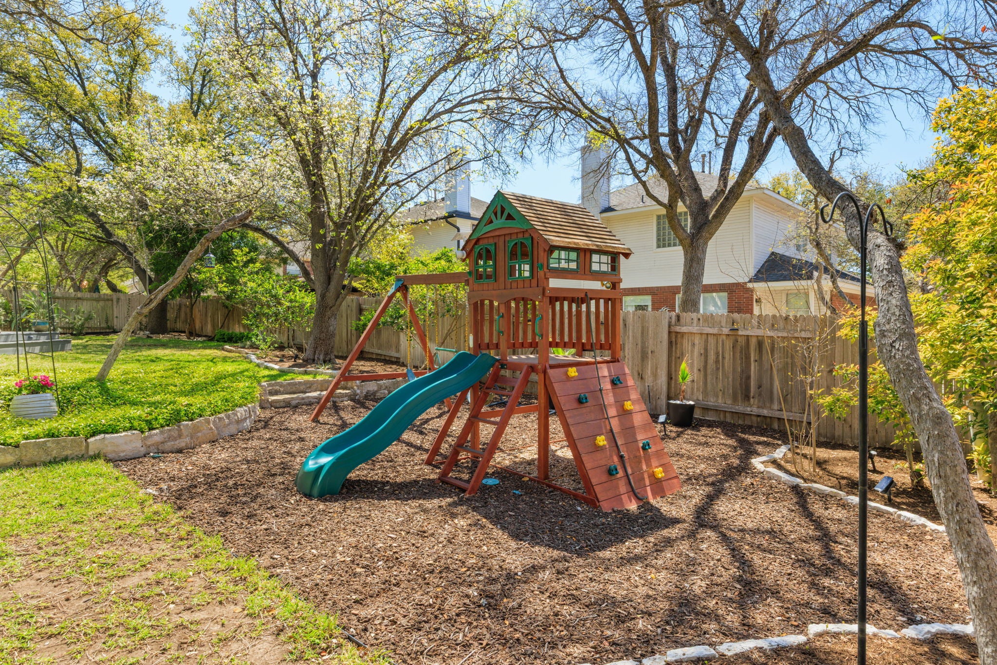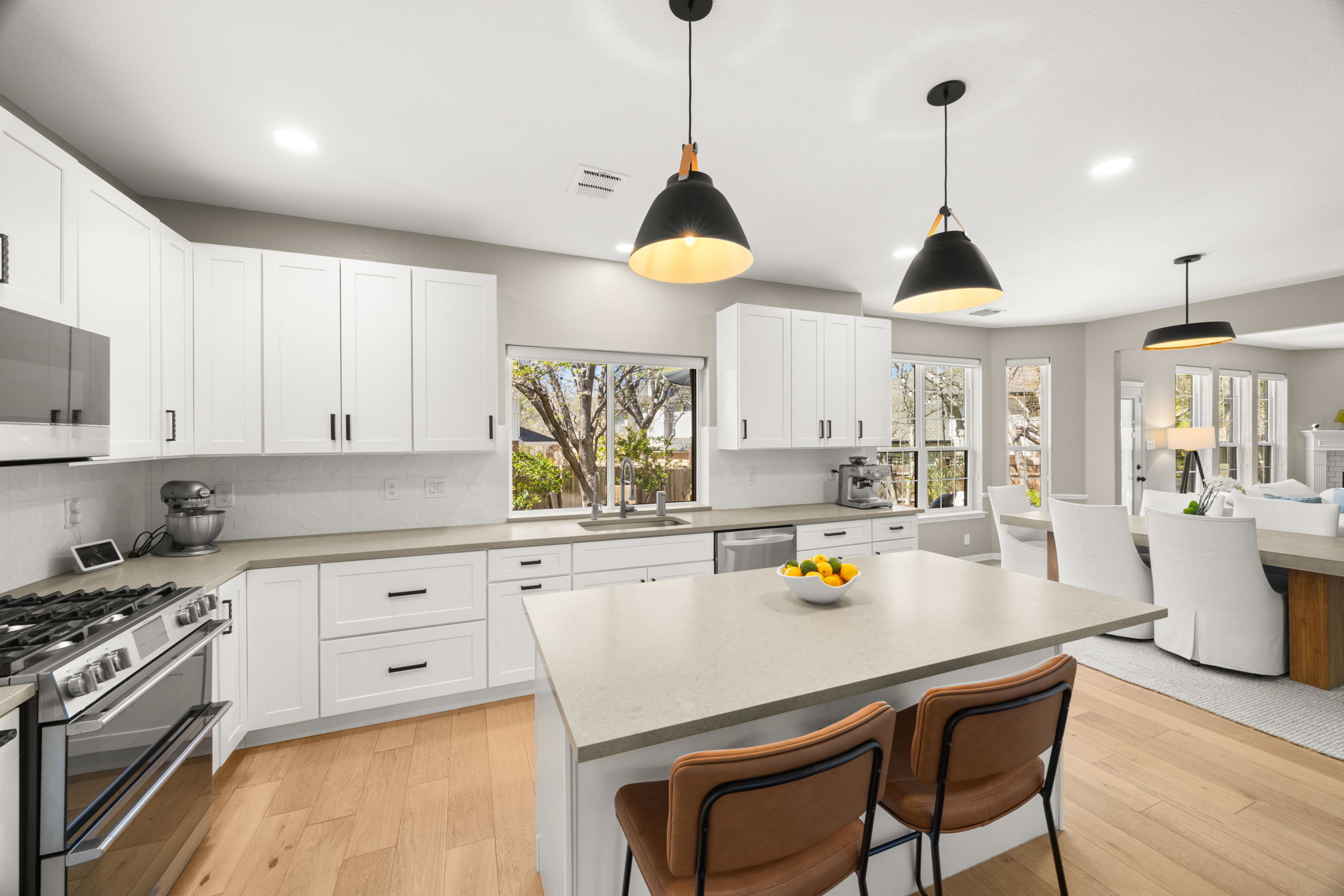 Located at 12805 Bivins Court in the established Steiner Ranch neighborhood of Austin, Texas 78732, this two-story home on a cul-de-sac has been significantly refreshed in recent years. All the key elements have been updated including a full kitchen remodel (2020), flooring (2020), bathrooms (2025), all windows (2022), back yard deck (2024), back door (2022), roof (2021), HVAC systems (2020), upgraded electrical panel (2020), EV charger (2020), gutters (2021), garage door (2022), and water heater (2025). The main level features wood flooring throughout. The remodeled kitchen has an island with Shaker-style cabinets, quartz countertops, a breakfast bar, tile backsplash, and a walk-in pantry. It includes stainless steel appliances plus ample natural light from windows with custom shades. The adjacent family room has a gas log fireplace, while the separate dining room connects to the kitchen through double doors. An office space with French doors provides a quiet area for work or study. The laundry room offers cabinets and shelving. The master bedroom includes two walk-in closets and an updated bathroom with dual granite vanities, a rainfall shower, jetted tub, ribbon tile, and linen closet. Three additional bedrooms provide good closet space (two have walk-in closets). There is also a spacious game room and a second updated full bathroom with dual vanities and a separate wet area. The back yard has a low-maintenance deck, playscape, storage shed, shade trees, & grassy areas. The garage includes a Tesla charger. This home is zoned to highly rated Leander ISD schools, including Steiner Ranch Elementary, Canyon Ridge Middle, and Vandegrift High. John Simpson Community Center is just a short walk away and offers a pool, splash pad, playground, tennis courts, basketball court, and sand volleyball court. Steiner Ranch residents also enjoy convenient access to Lake Austin and more than 20 miles of hike-and-bike trails throughout the community.
