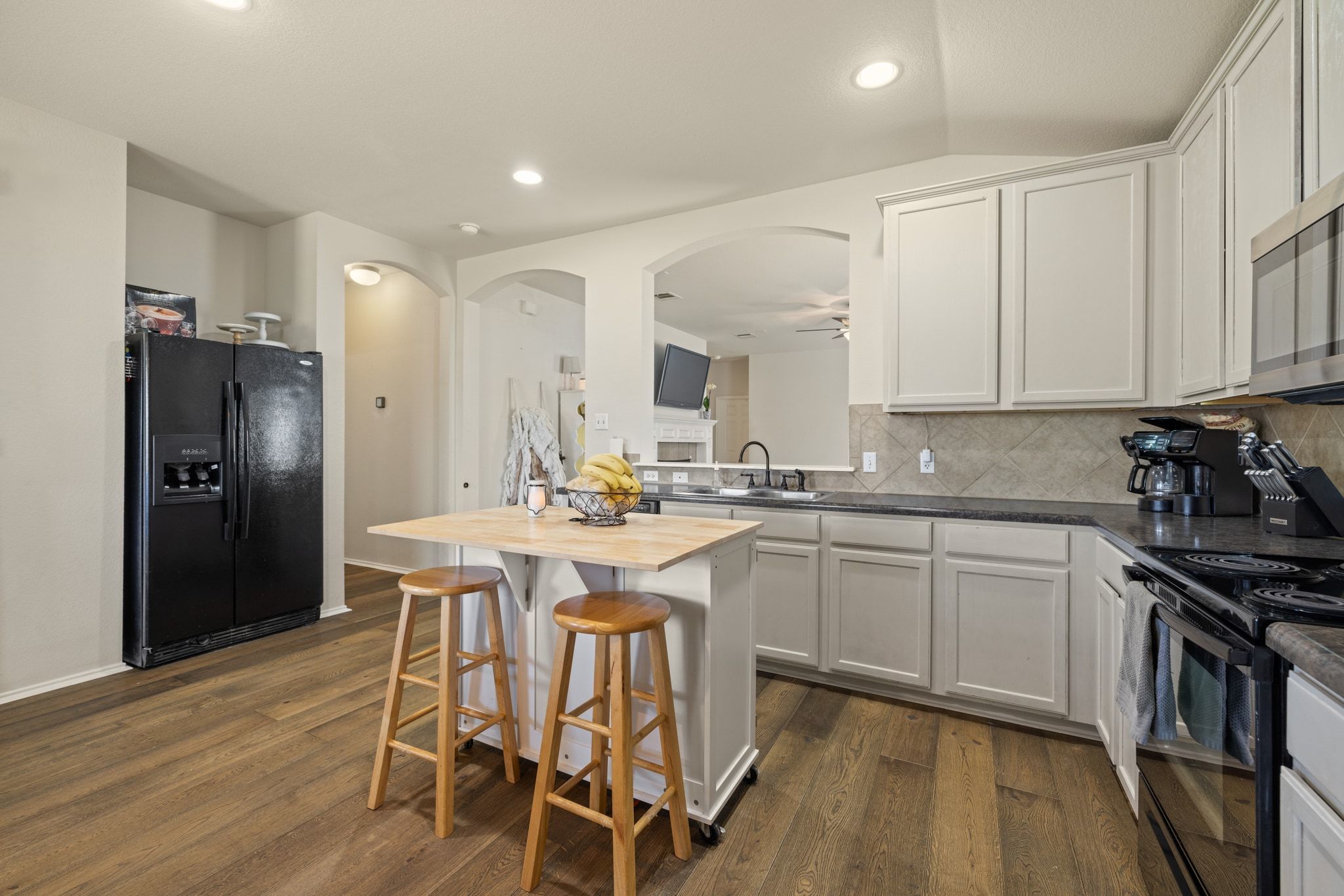 - Dishwasher, Electric Cooktop, Electric Range, Free-Standing Refrigerator, Microwave
