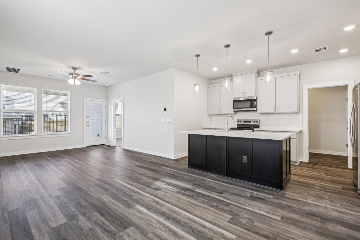 - Dishwasher, Disposal, Gas Range, Microwave, Refrigerator