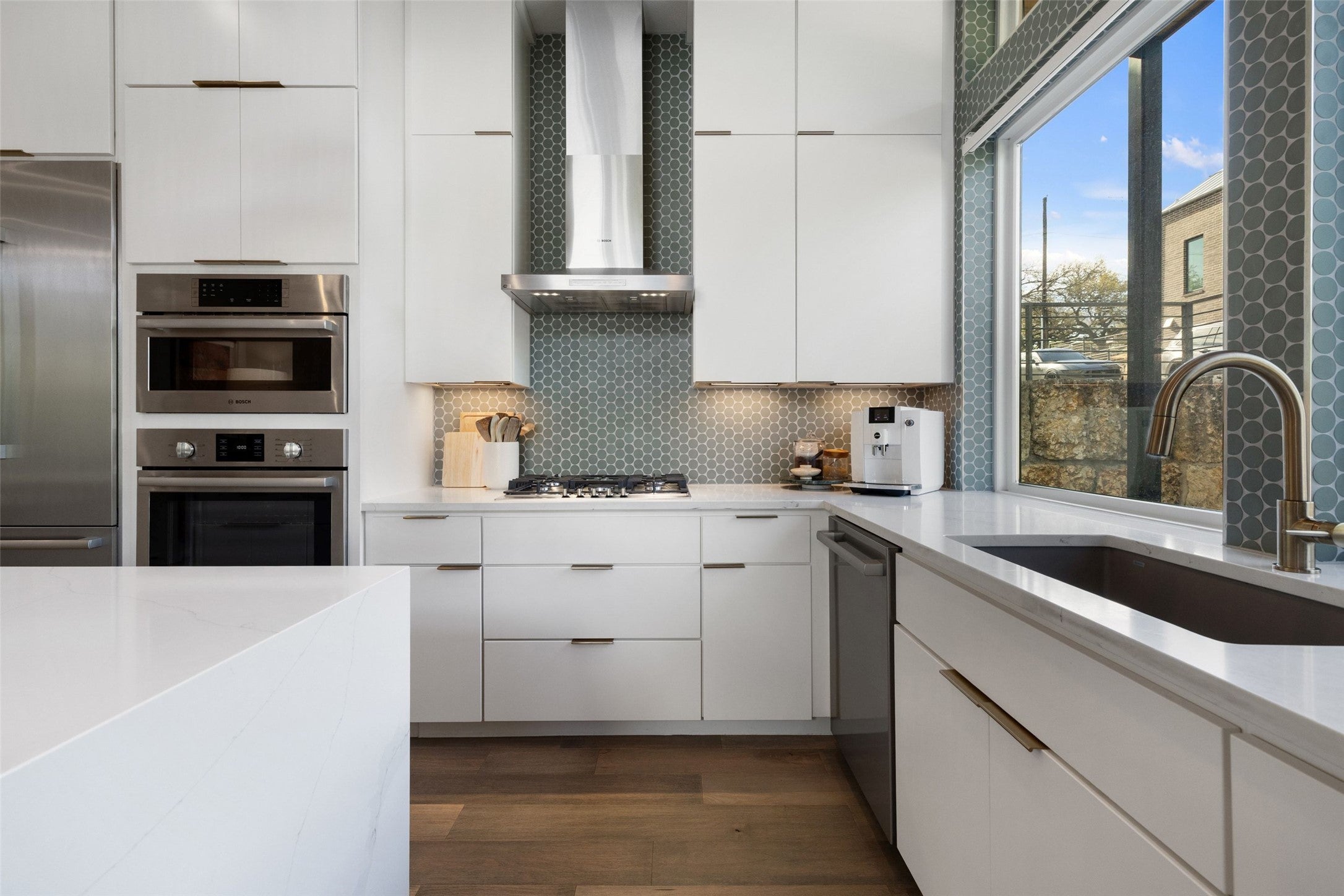 - Built-In Oven, Dishwasher, Gas Cooktop, Disposal, Microwave, Refrigerator, See Remarks, Stainless Steel Appliance(s), Tankless Water Heater, Wine Refrigerator