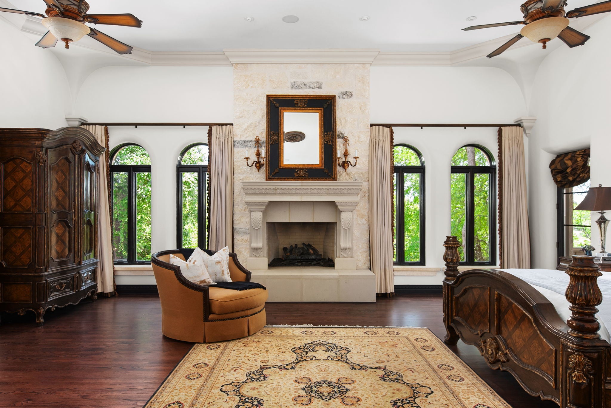 - Living Room, Bedroom, Gas, Gas Log, Gas Starter, Great Room, Masonry, Outside, Primary Bedroom, Raised Hearth, Stone, Wood Burning