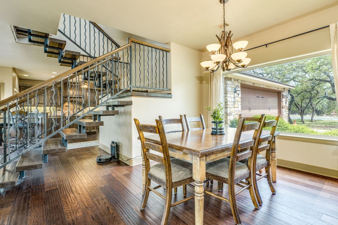 Nestled at 600 Mountain Dew RD, Horseshoe Bay TX 78657, this single-family residence presents an amazing design, beautiful views, and an additional lot making this a tremendous value for the new Owners. The living room offers an inviting atmosphere with its soaring vaulted ceiling and a warming fireplace, a perfect space for relaxation and conversation. The kitchen is a culinary dream, featuring stone countertops, a large kitchen island, huge amounts of storage for all your special serving pieces and fancy gadgets, kitchen pantry is large and will handle the best chefs tools and toys, and a functional kitchen peninsula. This property offers balconies, patios, and multiple outdoor dining areas, providing numerous opportunities to enjoy Lake LBJ views and fresh Texas Hill Country air. Furthermore, the residence features a large oversized 2 car garage. The extra lot below the house is part of the sale and helps to protect all those lovely views - giving you space to do a lot of extra planning for more fun. This Horseshoe Bay residence offers an unparalleled opportunity to experience luxurious, well-appointed living.