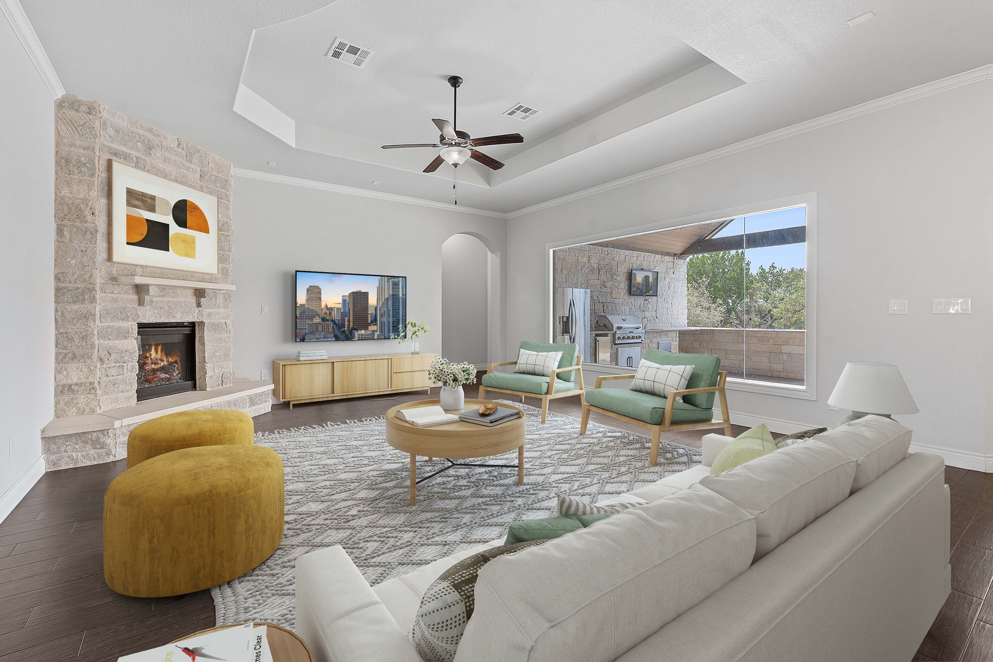 Step into your beautiful new home featuring an bright, open floor plan designed for effortless living and entertaining. The gourmet kitchen flows seamlessly into the main living space and out to a large outdoor living area overlooking a sparkling pool. Nestled on 3 scenic acres and located in the highly sought-after Dripping Springs school district, this property offers privacy, peaceful wildlife views, and the perfect balance of country charm and convenience — just minutes from everything Dripping Springs has to offer.