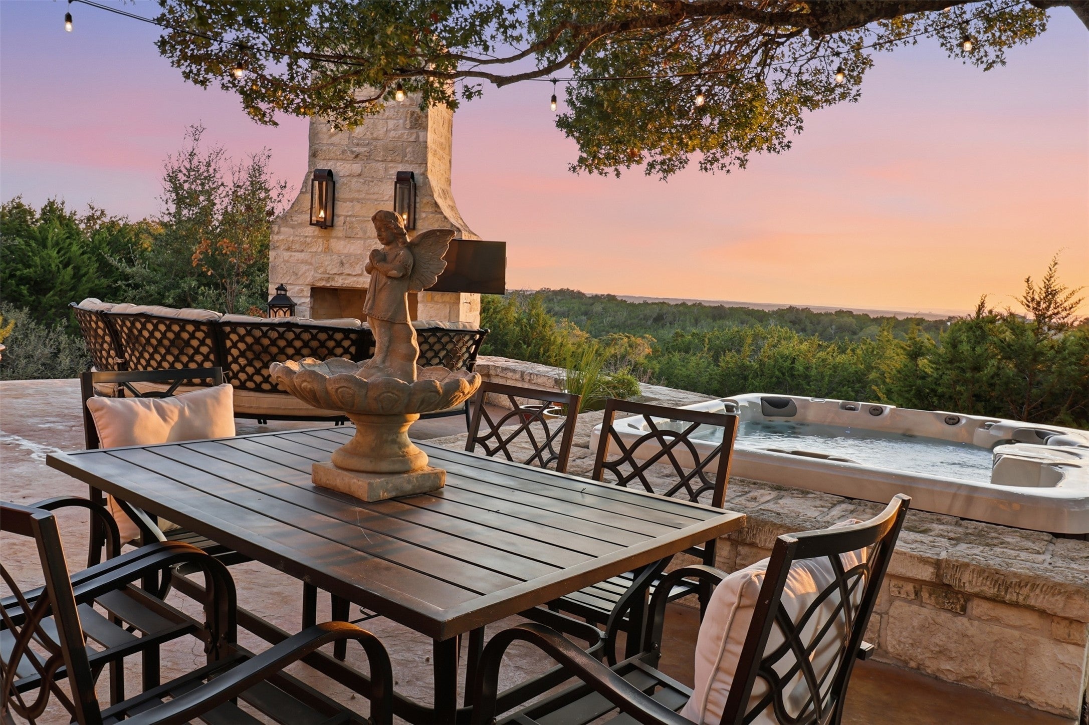 This isn't just a unique home, it is the beginning of your next chapter in Burnet, Texas. Welcome to 108 Big Sky! Tucked within the exclusive gated Eagles Nest community, this truly unique 2.16-acre estate at 108 Big Sky in Burnet offers breathtaking canyon-top living with panoramic Texas Hill Country and sunset views. Lovingly built and meticulously maintained by its original owner, this exceptional home is on the market for the very first time. Blending Victorian vintage charm with modern amenities, the residence features 10-footceilings on the main level and 9-foot ceilings upstairs, crown moldings, shiplap accents, plantation shutters, and antique-style bath vanities. The thoughtfully designed floor plan includes two spacious primary suites with private ensuites, plus two additional bedrooms connected by a Jack-and-Jill bath. The gourmet kitchen is equipped with honed granite countertops and a Thermador pro-grade stove, ideal for both everyday living and entertaining. Enjoy movie nights in the dedicated media room or step outside to an entertainer’s dream—complete with a wraparound porch, outdoor fireplace, spa, and TV. Additional highlights include dual tankless water heaters, dual AC systems, water softener, sprinkler system, asphalt driveway, and elegant exterior tree lighting. Just one hour from Austin, this remarkable property offers serene privacy, star-filled skies, and timeless Hill Country living at its finest. 108 Big Sky is the perfect place to call home!