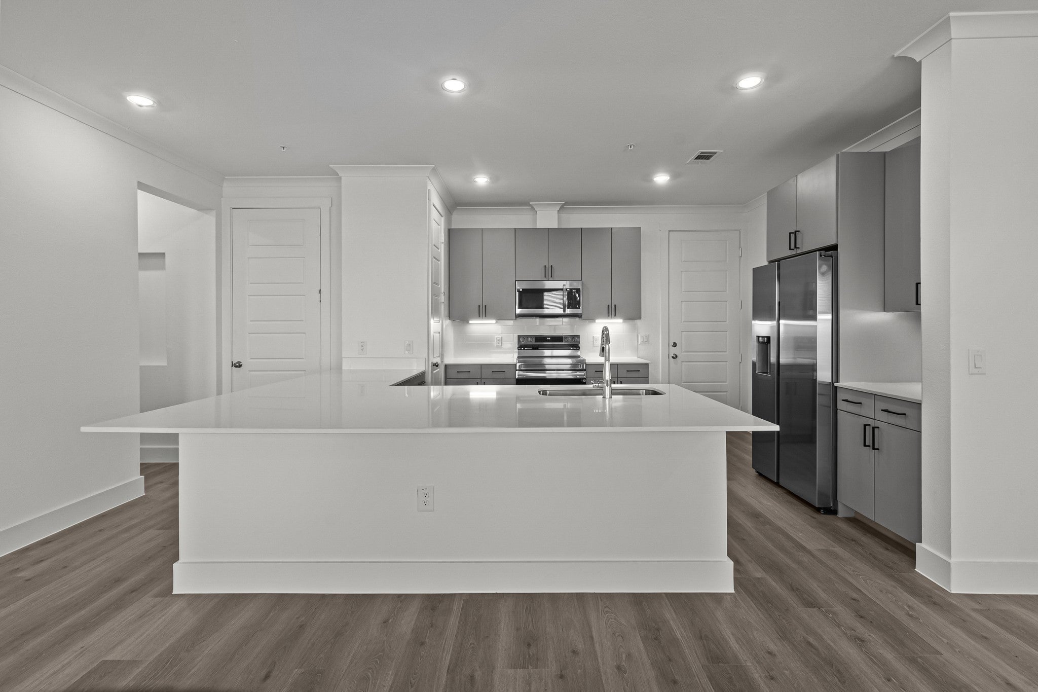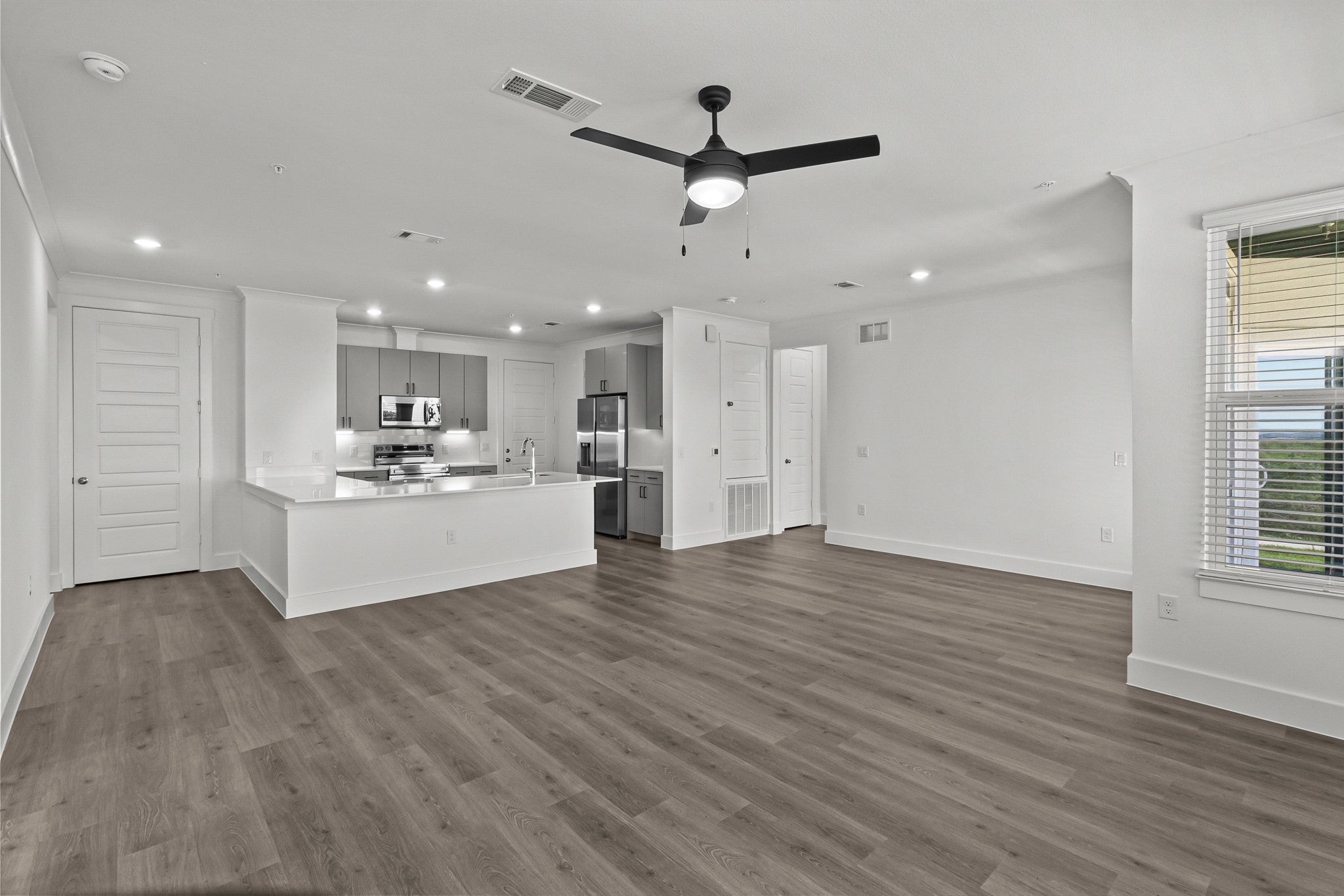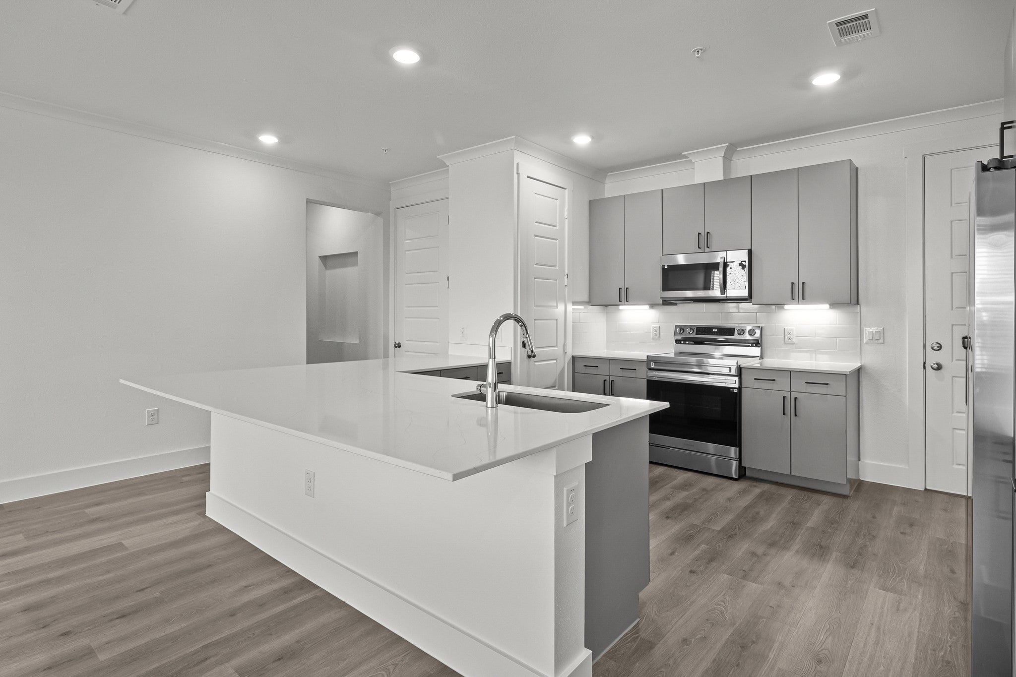 Enjoy access to a 6,000 square foot community clubhouse complete with 24/7 state-of-the-art fitness clubs, business center, tanning facility, and an expansive resort-style swimming pool complete with tanning decks and private cabanas and Starbucks® Wi-Fi Café. Attached garages available in most units, Homes feature extensive crown molding, abundant natural light, brushed nickel fixtures, and quartz countertops in kitchens and baths.10-foot ceilings to wide plank flooring and rich crown moldings, designer kitchen cabinetry, stainless-steel appliances, quartz countertops, programmable thermostats and ceiling fans.