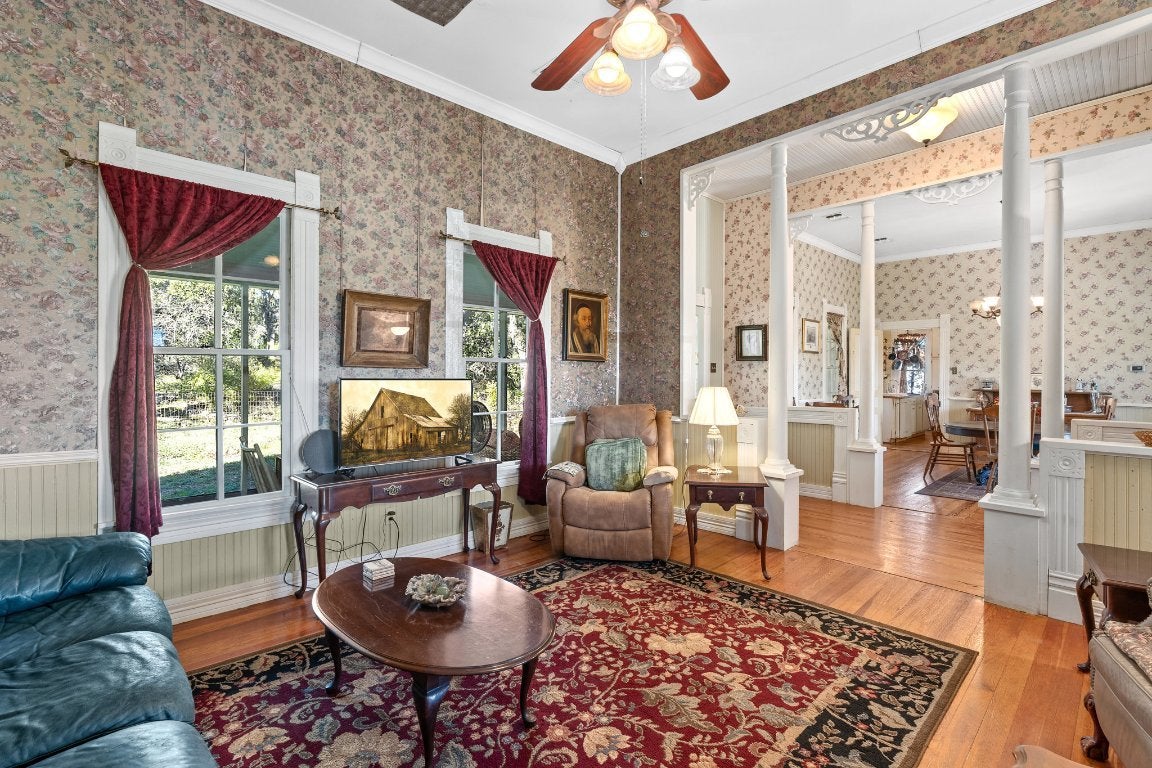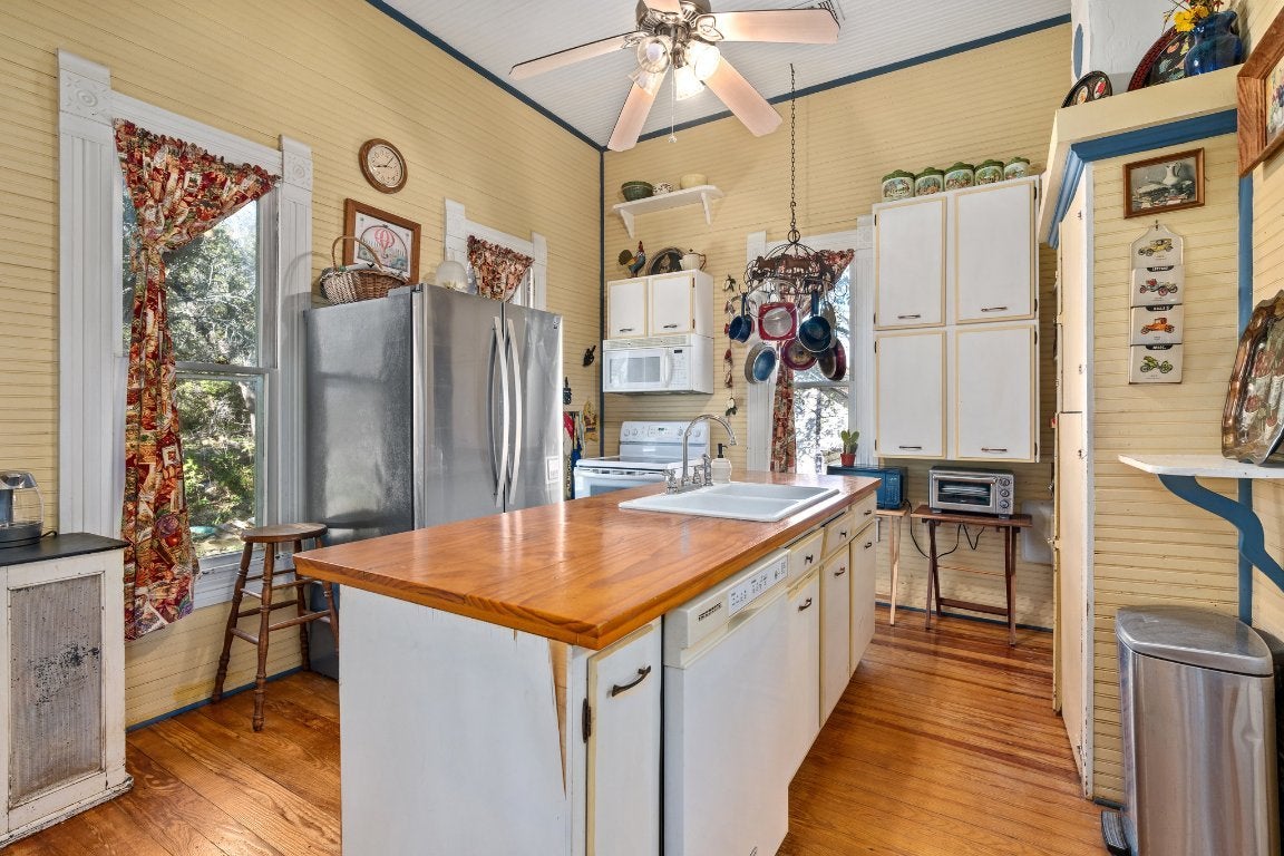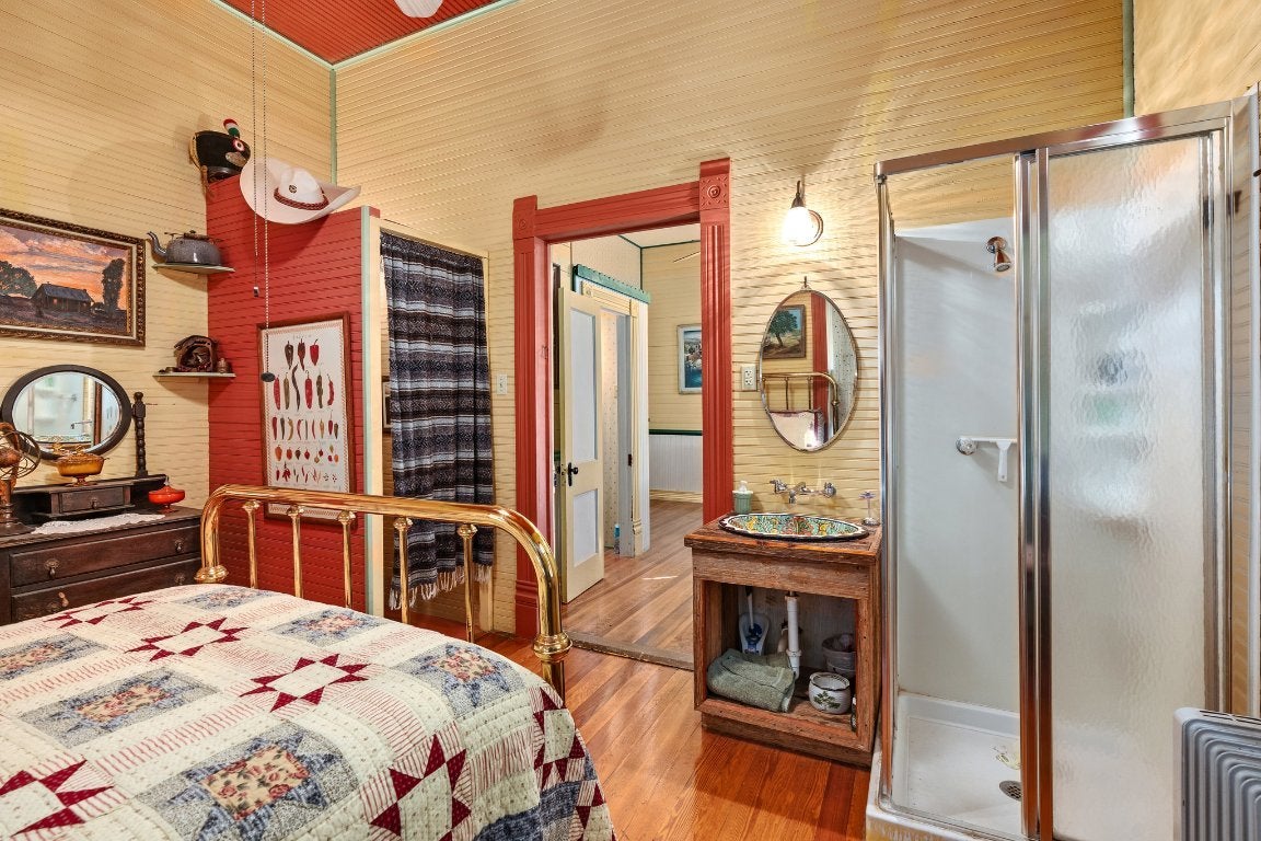 National Register of Historic Places in the Fischer Historical District. Circa 1908 " Fischer Haus " 4 bedroom,4 bath homestead on just under 6 acres. Boasting true Cypress siding, original hardwood flooring & beautiful Shiplap walls / ceilings throughout the home & Gristmill! *The Gristmill was built around 1900 to help farmers who were forced to travel the distance to Blanco. It remained in use until approx.1920. Upon entering this timeless structure, you are overcome with a feeling of nostalgia when you see the still existing loading ramp along with many other original features. The beloved American Country Music singer & Grand Ole Opry member Hal Ketchum restored and built the stunning kitchen counter along with residing in the Gristmill for many years.* The laid back, funky country "Cantina" structure has been home to Fischer Haus Concerts for over 15 years. Highly respected statewide and beyond, featuring entertainers including Hal Ketchum, David Lee, Ray Wylie Hubbard, Slaid Cleaves, Gary P Nunn, Susan Gibson, and many more. You will find rustic wooden plaques for each singer/songwriter who shared their gift of music still hanging throughout the Cantina, preserved and ready for future concerts for whomever is fortunate enough to continue the legacy of this amazing property!Entire property has been maintained in its original form as much as possible throughout the years and is overflowing with character. Including an adorable outhouse with toilet & shower. The Fischer Haus property is often referred to as "Terlingua East", "South South South Austin Music Scene", and the "Baby to Luckenbach Texas". When visiting this property, you can feel the history and good vibes as you walk along the grounds of the original homesteaders of Fischer, Texas. It truly is a magical place! Prime location! Don't miss your chance to own property in the hottest area around! SQ FT is combined buildings, approximate. All details must be verified. Co-listed w Jennifer Fulton