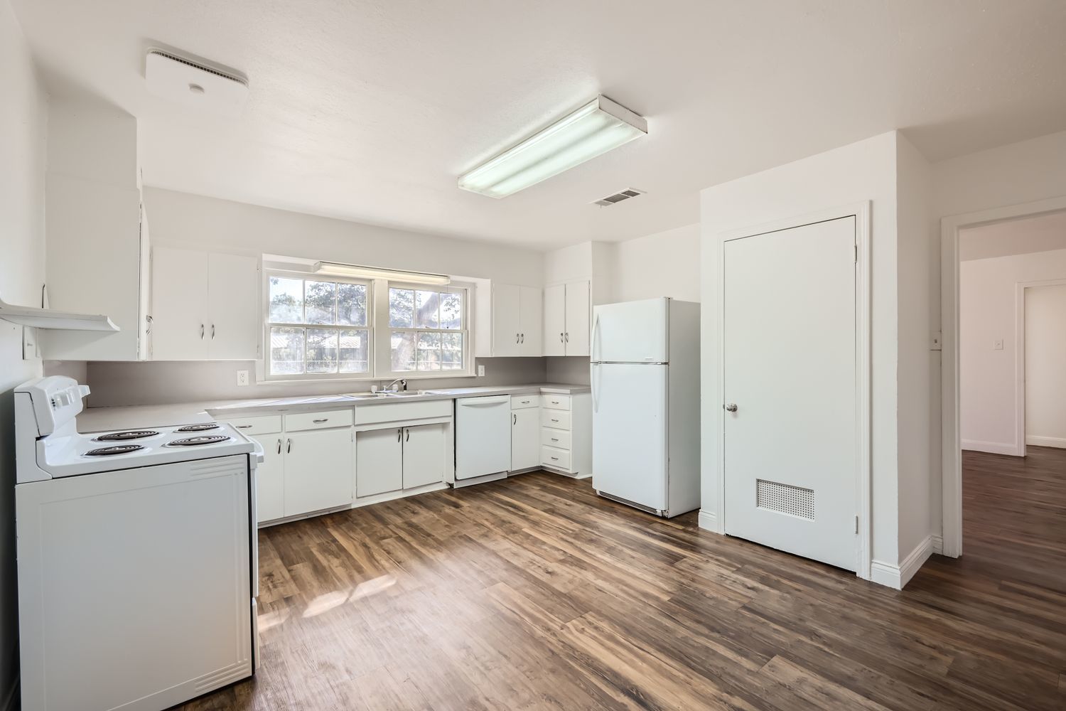 - Dishwasher, Electric Cooktop, Free-Standing Electric Oven, Free-Standing Refrigerator