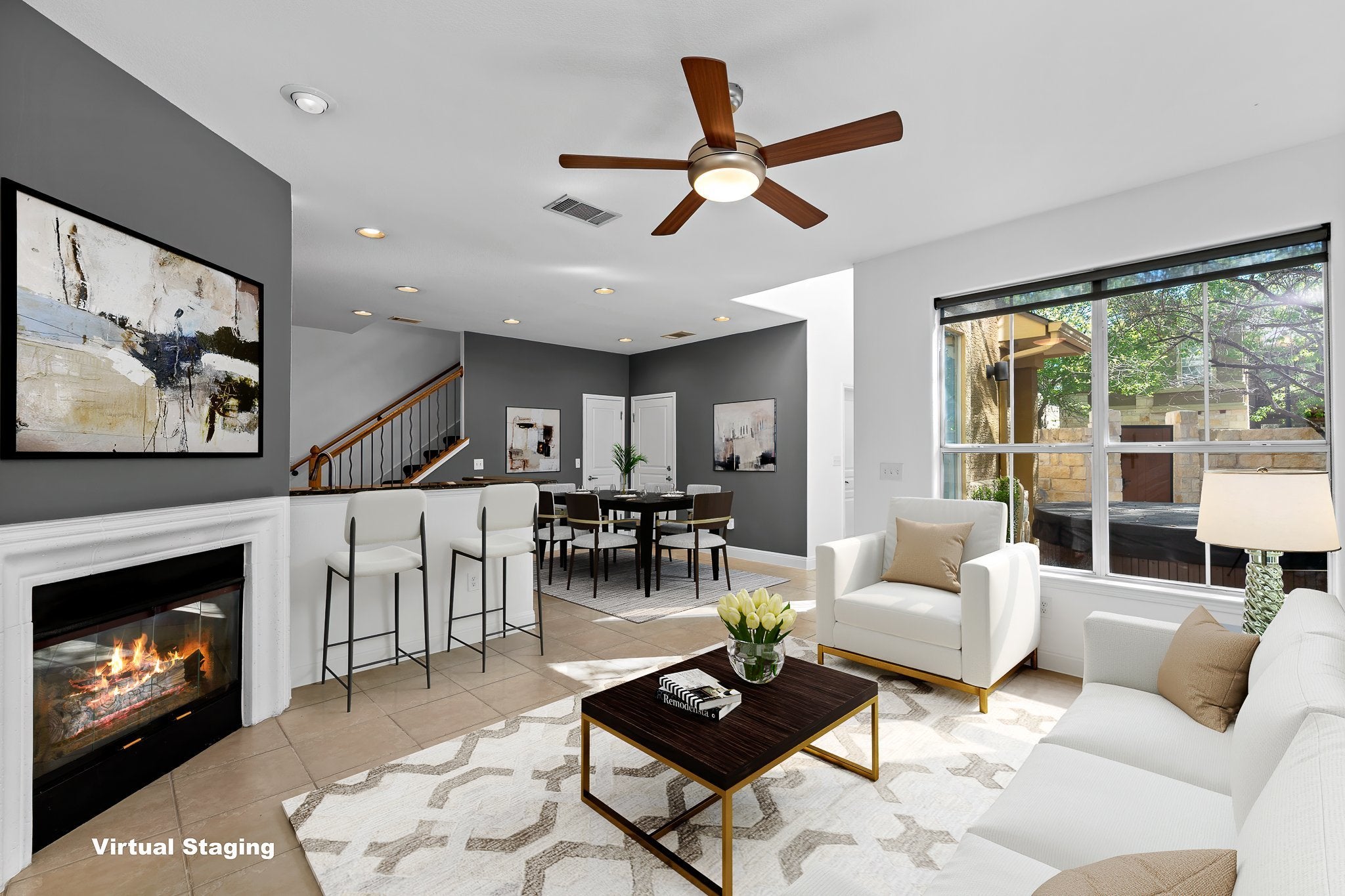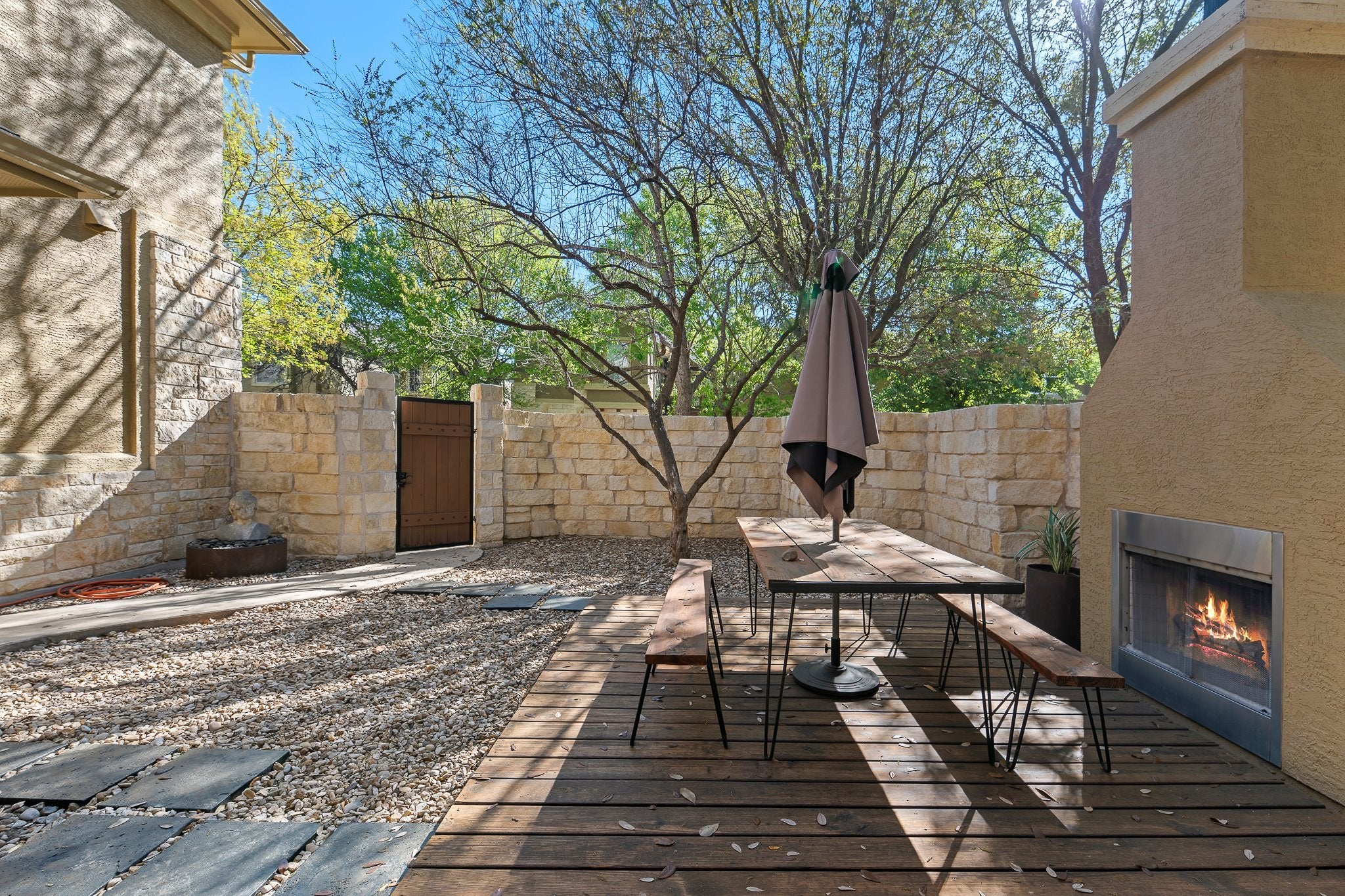 This condo is easily one of the coolest properties in South Austin. Walk from the private driveway on the corner lot through a tall, gated rock wall into a private oasis. Hang out by the outdoor fireplace, get a soak in the hot tub, or both! All of this is before you even get into the home. Once at home, you will enjoy a downstairs with an open kitchen, living, and dining room along with gas fireplace, stainless steel appliances, and half bath. When ready to retire, escape upstairs to two bedrooms, two baths, and an open loft/office area. It’s the perfect setup for entertainment and relaxation. Truly something you will want to see.