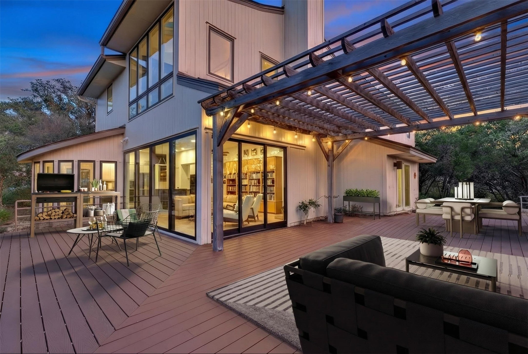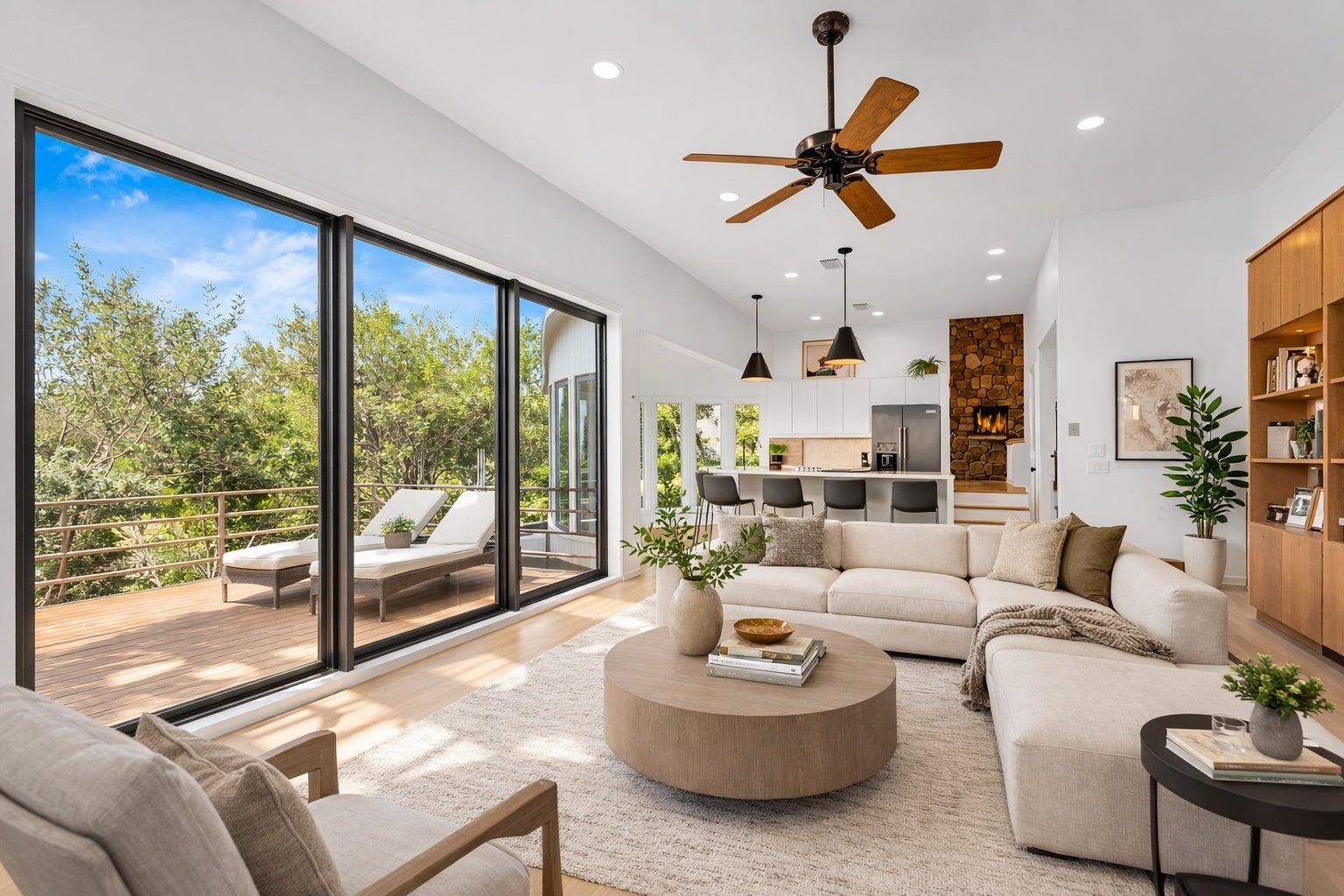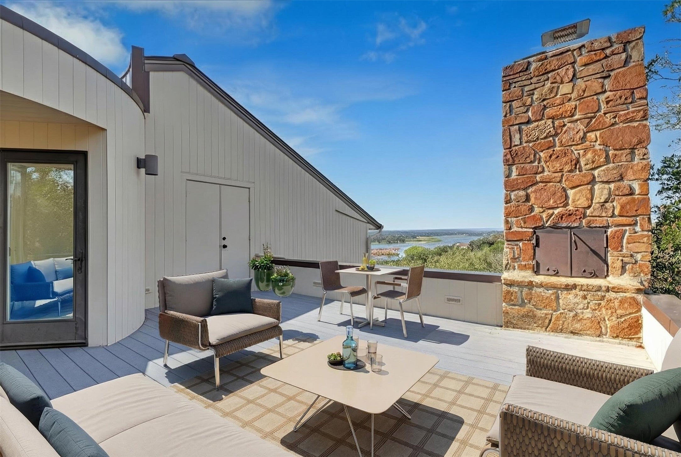 Wake up to soft Hill Country light spilling through walls of windows, with panoramic views stretching across the trees toward Lake Travis. Mornings begin slowly here. Coffee on the deck, quiet, elevated, and private, with nothing but the breeze and the view. As the day unfolds, the home lives effortlessly. Open spaces invite connection, whether it’s a relaxed afternoon with family or a weekend gathering that flows from the kitchen to the living areas and out onto expansive outdoor terraces. The setting naturally draws you outside, where sunset becomes part of your daily routine. Evenings are best spent around the outdoor fireplace, sharing a meal, a glass of wine, and the kind of moments that make this feel less like a house and more like a retreat. For those drawn to the water, the lifestyle extends beyond the home. With access to your private boat slip, lake days are always within reach. Spend the afternoon on Lake Travis, then return home to unwind above it all, surrounded by privacy and wide-open views. Upstairs, the primary suite becomes its own sanctuary. A place to slow down, recharge, and take in the landscape from a different perspective. The additional spaces offer flexibility for guests, work, or creative pursuits, adapting easily to the way you live. Tucked within the gated Windermere Oaks community, this is a place where life feels removed, yet remains connected. Whether you are looking for a full-time residence, a weekend escape, or an investment with short-term rental potential, the experience here is simple. Space, views, privacy, and the freedom to enjoy it all at your own pace.