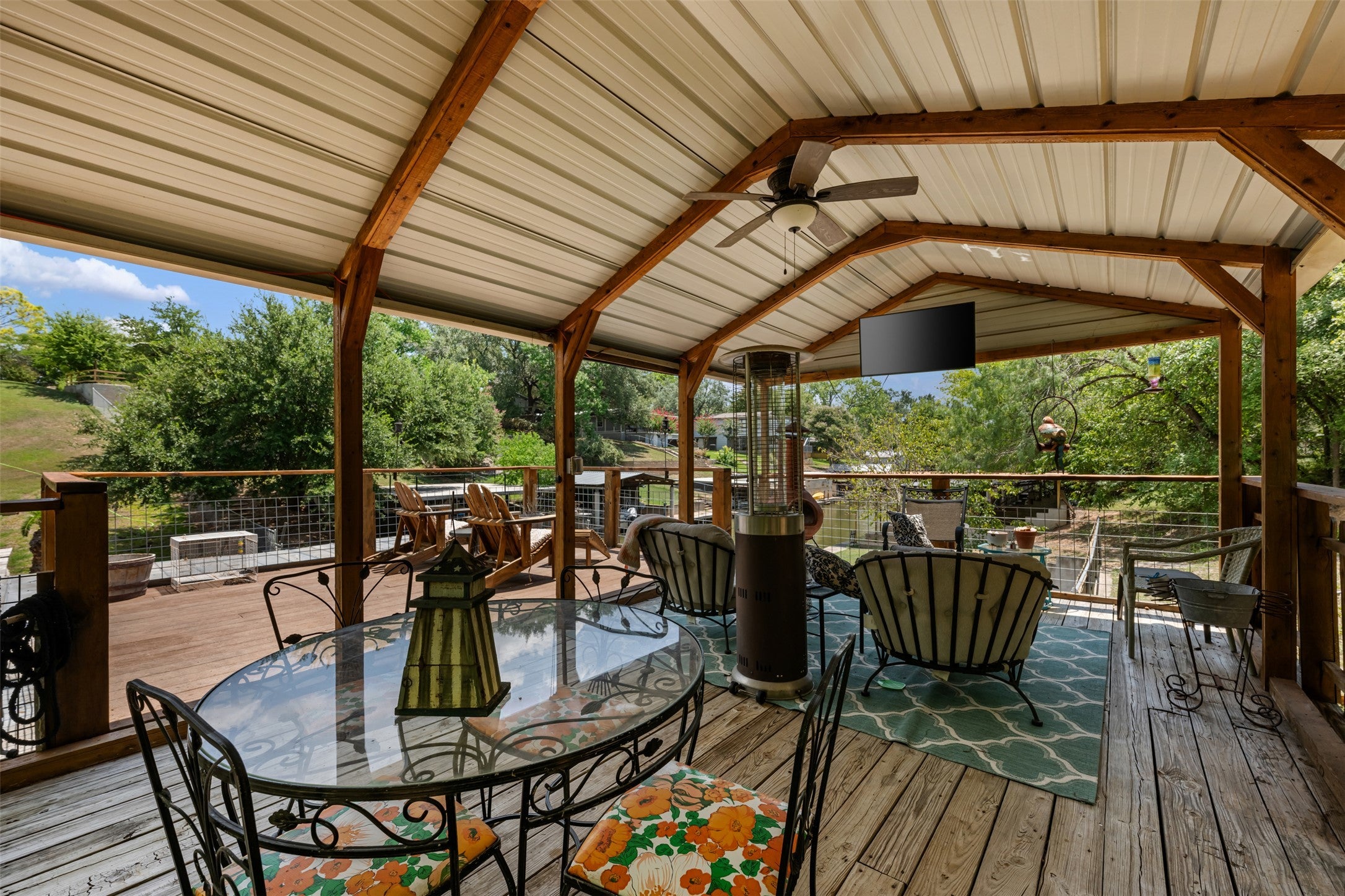 Experience the best of lakeside living in this stunning 2,735 sq. ft. custom home on 75 feet of Lake LBJ waterfront in the Texas Hill Country. This 3-bedroom, 3-bath retreat offers a split bedroom layout, a bonus room for an office or bedroom, open living spaces, and high ceilings for a bright and airy feel. The gourmet kitchen features Alderwood cabinetry, granite countertops, an island with breakfast bar, and a spacious family room with a rock wood-burning fireplace. Expansive windows flood the home with natural light and overlook the multi-level patios and decks, seamlessly blending indoor and outdoor living. Step outside to enjoy the perfect setting for entertaining or relaxing while taking in the peaceful lake surroundings. Designed for water lovers, this home includes a large covered boat dock with lift making lake days effortless. The primary suite is a private oasis with dual vanities, a whirlpool soaking tub, and a walk-in shower. A fenced yard adds convenience for kids and pets. Whether you're looking for a permanent residence or a weekend escape, this Lake LBJ retreat offers the ultimate blend of luxury, comfort, and adventure. Don't miss your chance to own a piece of Texas Hill Country paradise! “Living the Lake Life doesn’t get any better than this!