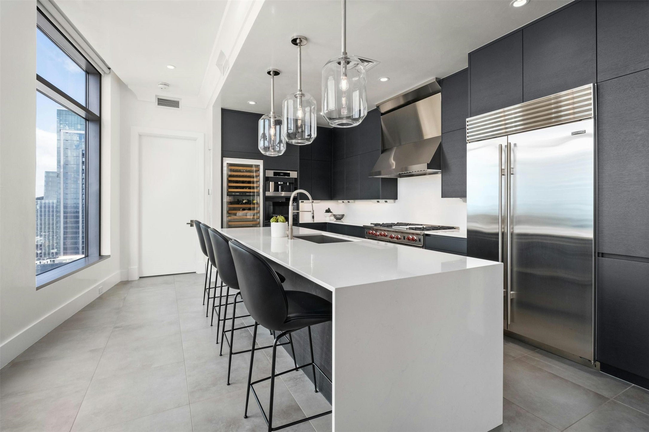 - Cooktop, Dishwasher, Exhaust Fan, Disposal, Gas Range, Microwave, Stainless Steel Appliance(s), Wine Refrigerator, Built-In Range, Built-In Refrigerator