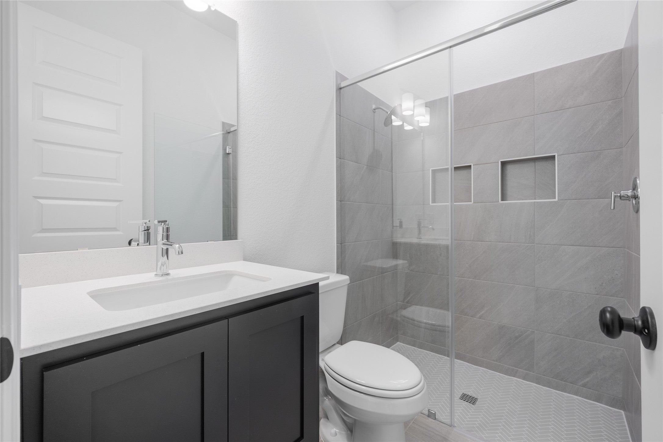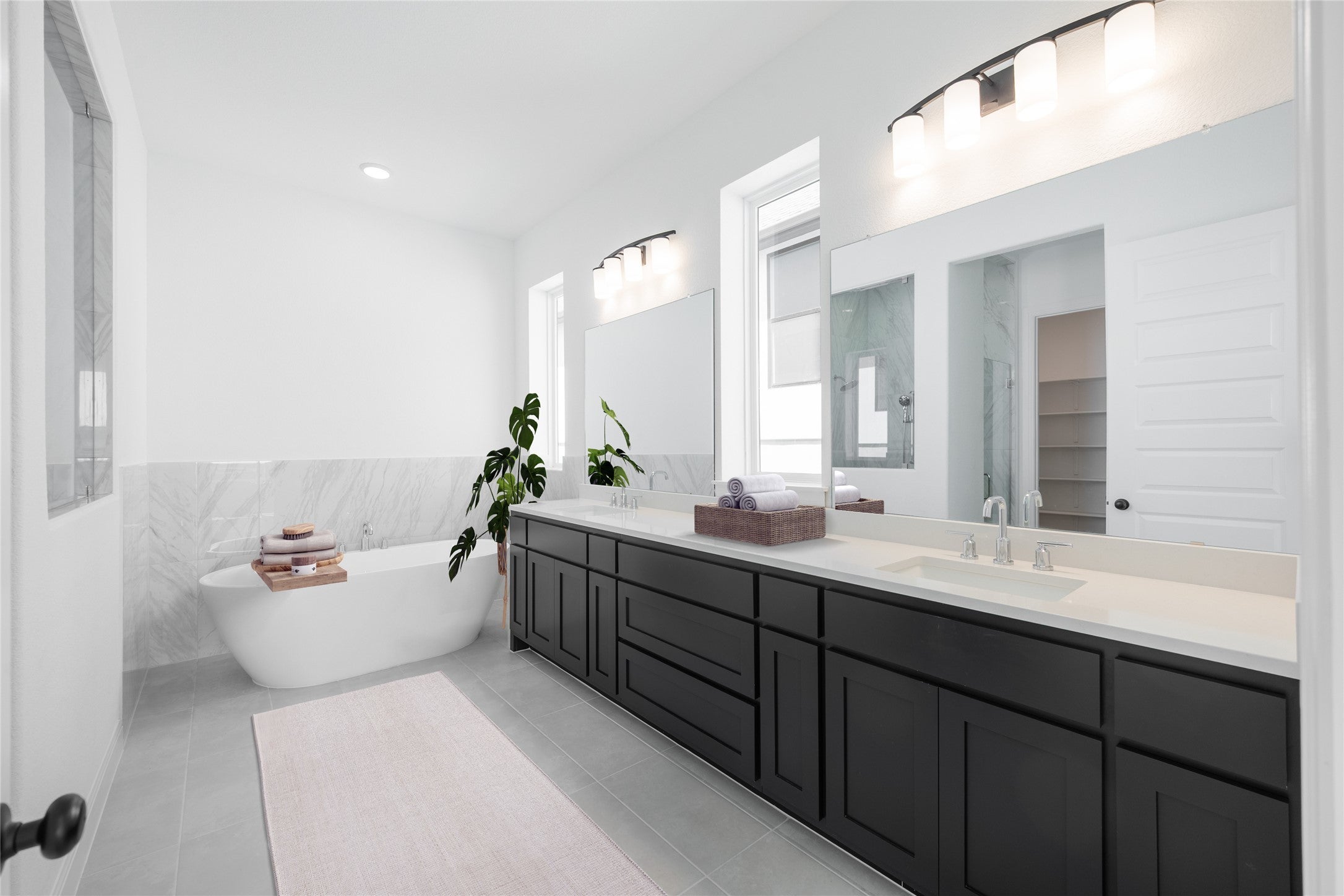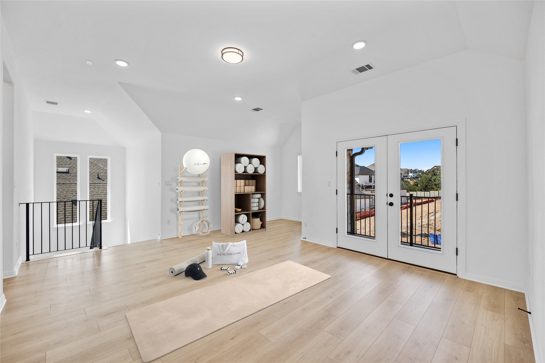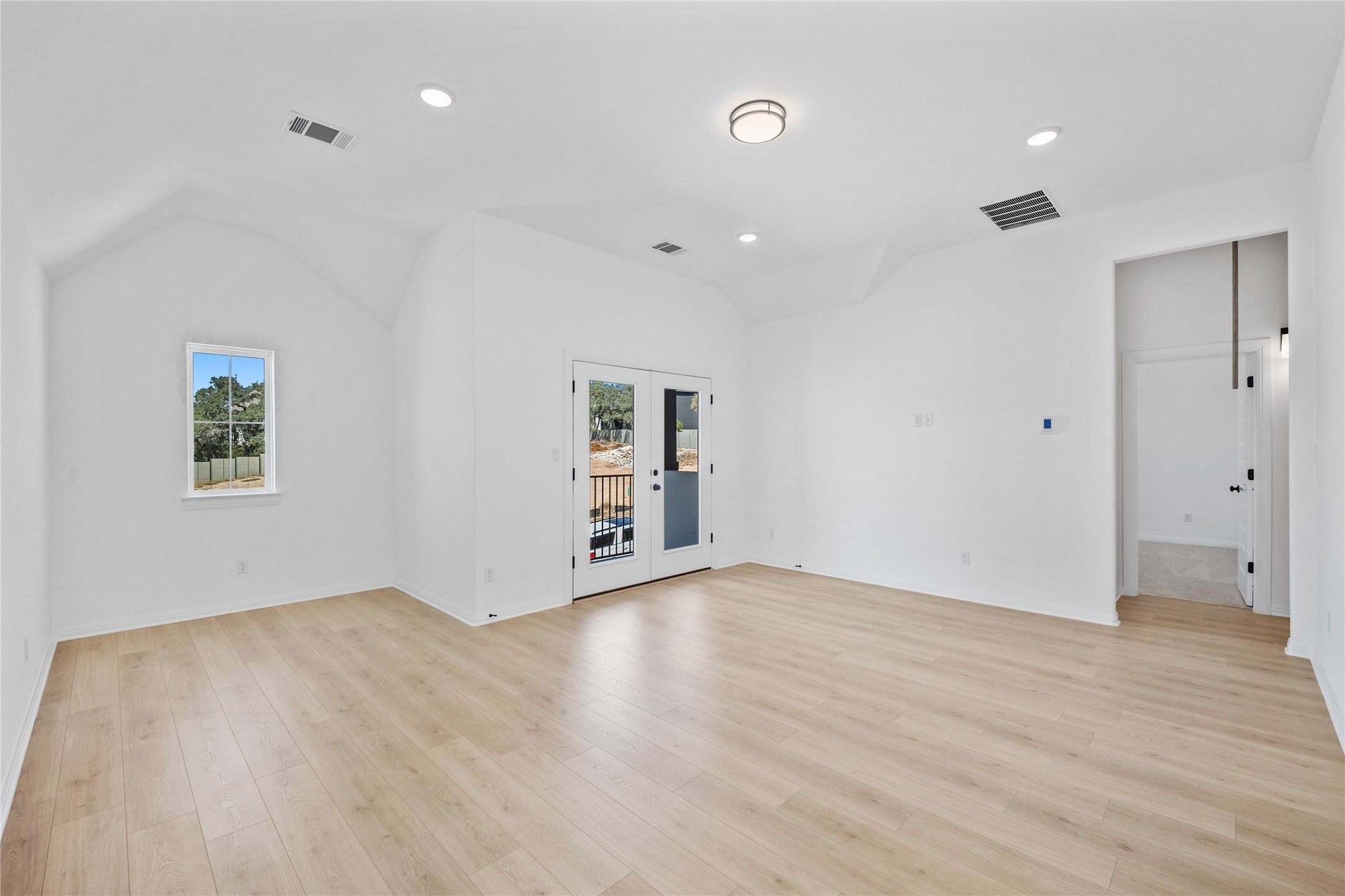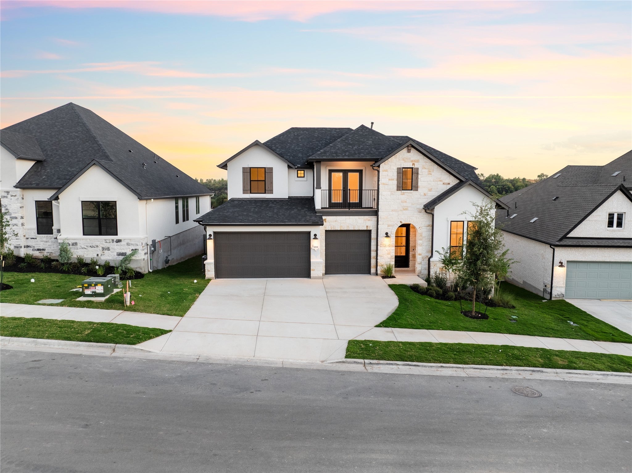 Built by Drees Custom Homes, this northwest facing, 3,631 sq ft, two story Sumlin floorplan is located within Georgetown’s desirable Wolf Ranch community. This master planned neighborhood offers convenient access to shopping, dining, and everyday essentials, along with resort style amenities. Situated within the community, the home offers five bedrooms and four and one half baths, providing comfort and privacy throughout. A stone arched entryway and upstairs balcony create standout curb appeal from the front of the home. Upon entry, the foyer opens to a private home office with french doors and formal dining or additional living room set behind sliding barn doors. Just beyond, the main living area opens with wide plank wood floors, soaring ceilings with exposed beams, and a dramatic floor to ceiling tiled fireplace. Expansive three panel sliding glass doors open the living space to the outdoors, creating seamless indoor outdoor living. The open concept kitchen serves as the heart of the home, featuring an oversized island, abundant cabinetry, quartz countertops, and double ovens, with effortless flow into the casual dining area located just off the kitchen. The primary suite is accessed from the main living area and offers a peaceful retreat with a boutique style ensuite featuring custom tile, walk in shower, dual recessed niches, stand alone tub, dual sinks, and a spacious walk in closet. This wing of the home also includes a secondary bedroom with ensuite bath, powder room, utility room, and mudroom, all leading to a spacious three car garage designed for everyday convenience and organization. On the upper level, you will find an additional living flex or game room, a private en suite bedroom, and two additional bedrooms sharing a full bath, offering excellent separation for living, entertaining, and relaxation. From soaring ceilings and designer finishes to versatile living spaces, this Wolf Ranch beauty checks every box for comfort, style, and location.
