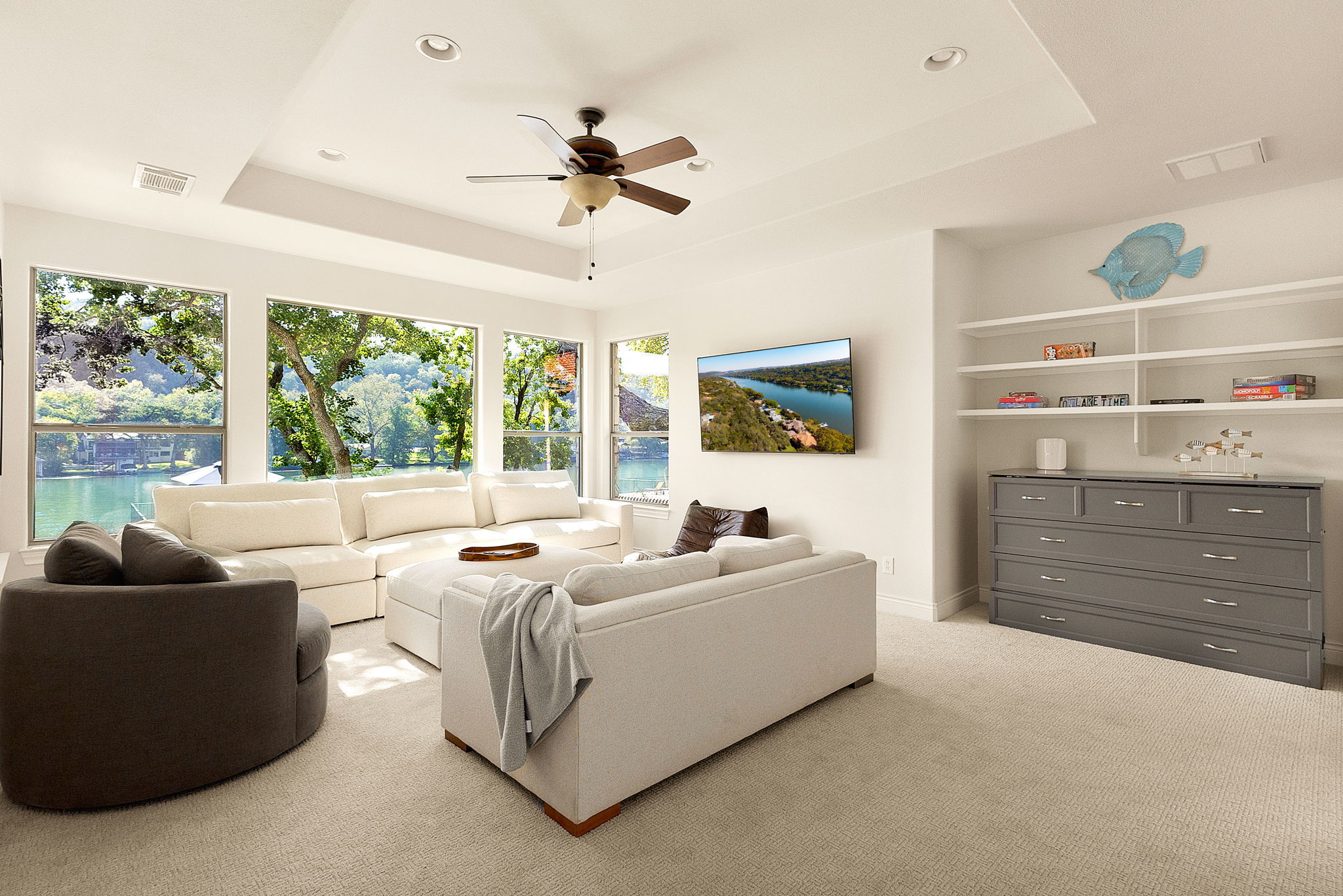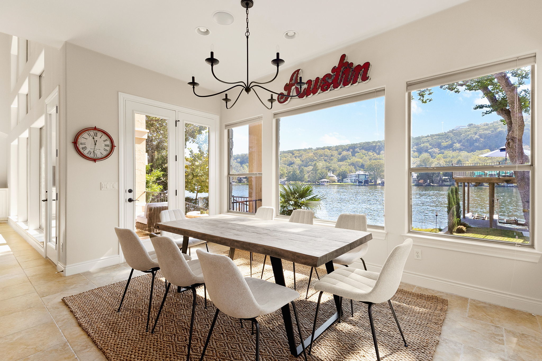 Available 8-15-2026. Live like you’re on vacation every day at this fully furnished Lake Austin retreat on Ski Shores Terrace. Nearly 4,800 square feet of space gives you room to spread out with four bedrooms, four baths, multiple living and dining spaces and plenty of hangout spots, but it’s the views that steal the show. Walls of windows frame the lake at every turn, and patios and shaded nooks spill out to the water’s edge. Your private dock has a boat slip and jet ski lift, so lake days are as easy as stepping outside. And when you’re ready for a break from the water? Take a quick walk over to Ski Shores Cafe, a true Lake Austin institution where the vibe is as good as the burgers…. And the margaritas. With the 360 Bridge just minutes away, you’re close to one of the city’s most iconic landmarks and still only a quick drive back downtown. Perfect for a corporate lease, a temporary spot while you build, or a short-term escape to Austin’s waterfront, this home is available now, fully furnished and move-in ready! Pets, the pool table, and shorter lease terms are all negotiable.