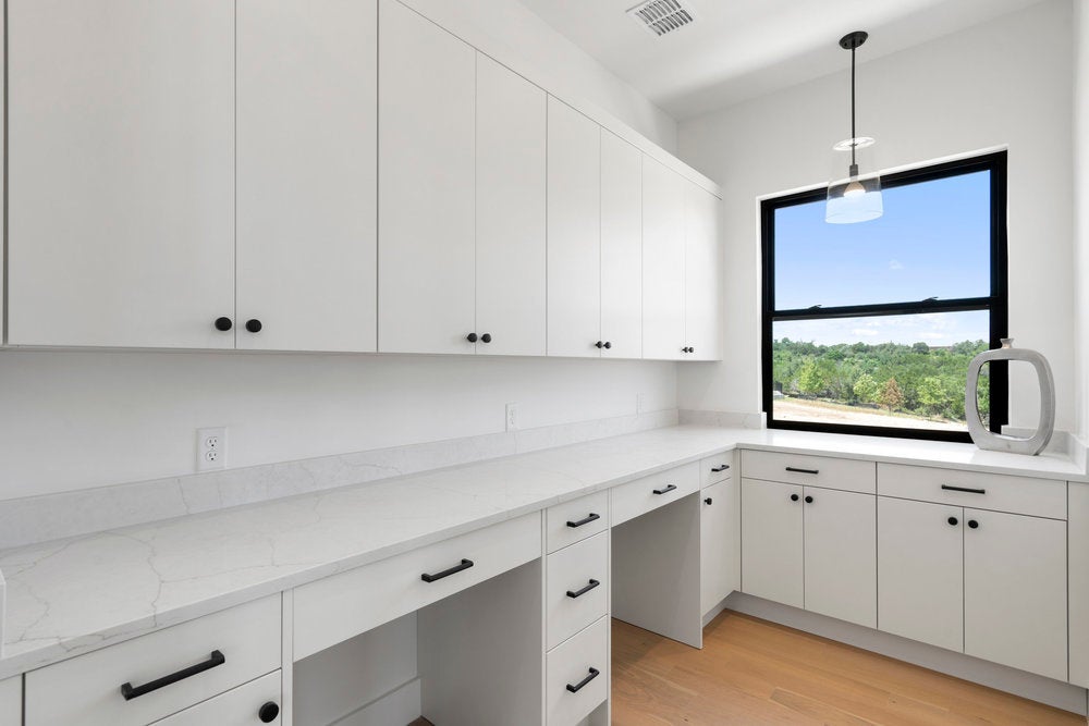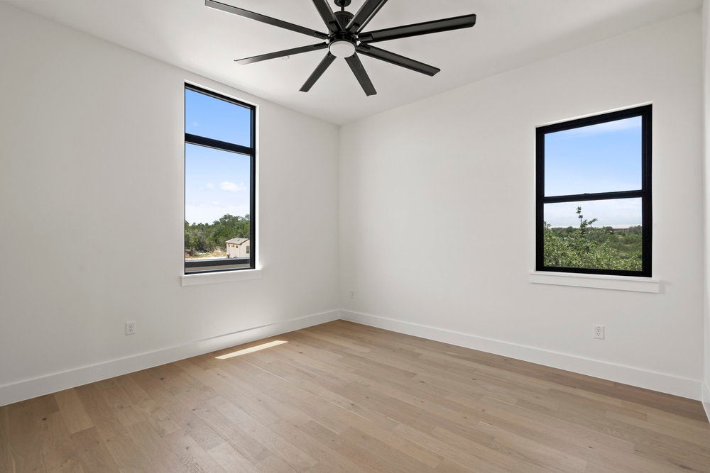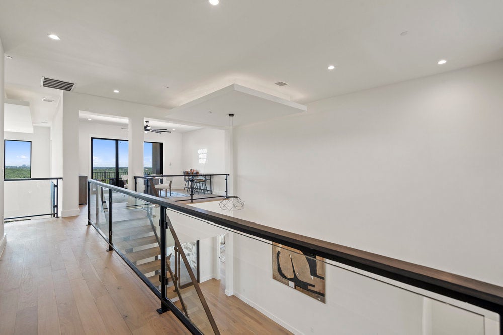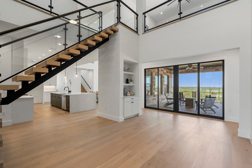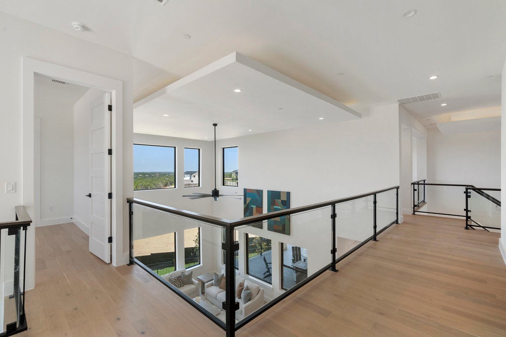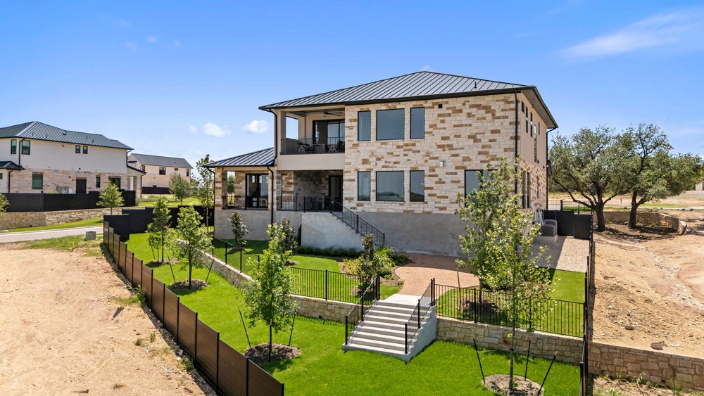 Welcome to 6101 Adhara Pass, a standout luxury home in Milky Way at River Place—Austin’s highest elevation and the first new home community in this sought-after area in over a decade. This exclusive M Signature residence showcases timeless architecture, a striking heritage oak, and a side-entry 3-car garage that enhances its impressive curb appeal. Inside, you’re greeted by soaring 20-foot ceilings in both the foyer and great room, a dramatic open staircase, and a glass-enclosed wine cellar that makes an unforgettable statement. The designer kitchen is built for both style and function, featuring a waterfall center island, custom 63-inch soft-close cabinetry, a JennAir 6-burner dual-fuel range with griddle, and a spacious butler’s pantry. Wide-plank wood flooring extends through the main living areas, study, gameroom, media room, and primary suite. Each bedroom includes a private en suite bath, along with powder rooms thoughtfully placed on both levels. A see-through double-sided fireplace warms the great room and den, while the upstairs gameroom opens to a covered balcony with scenic views. The primary suite is a true retreat, with a luxurious bath offering dual split vanities, a soaking tub set against a tile accent wall, and a walk-in shower. The oversized closet connects directly to a well-appointed utility room for added convenience. Built with energy-efficient spray foam insulation, Andersen windows, a tankless water heater, and high-end finishes throughout, this home reflects the quality and craftsmanship of the M Signature series. Located within minutes of River Place Elementary, Vandegrift High, Sun Tree Park, and River Place Country Club, this home combines elevated design with an unbeatable location.