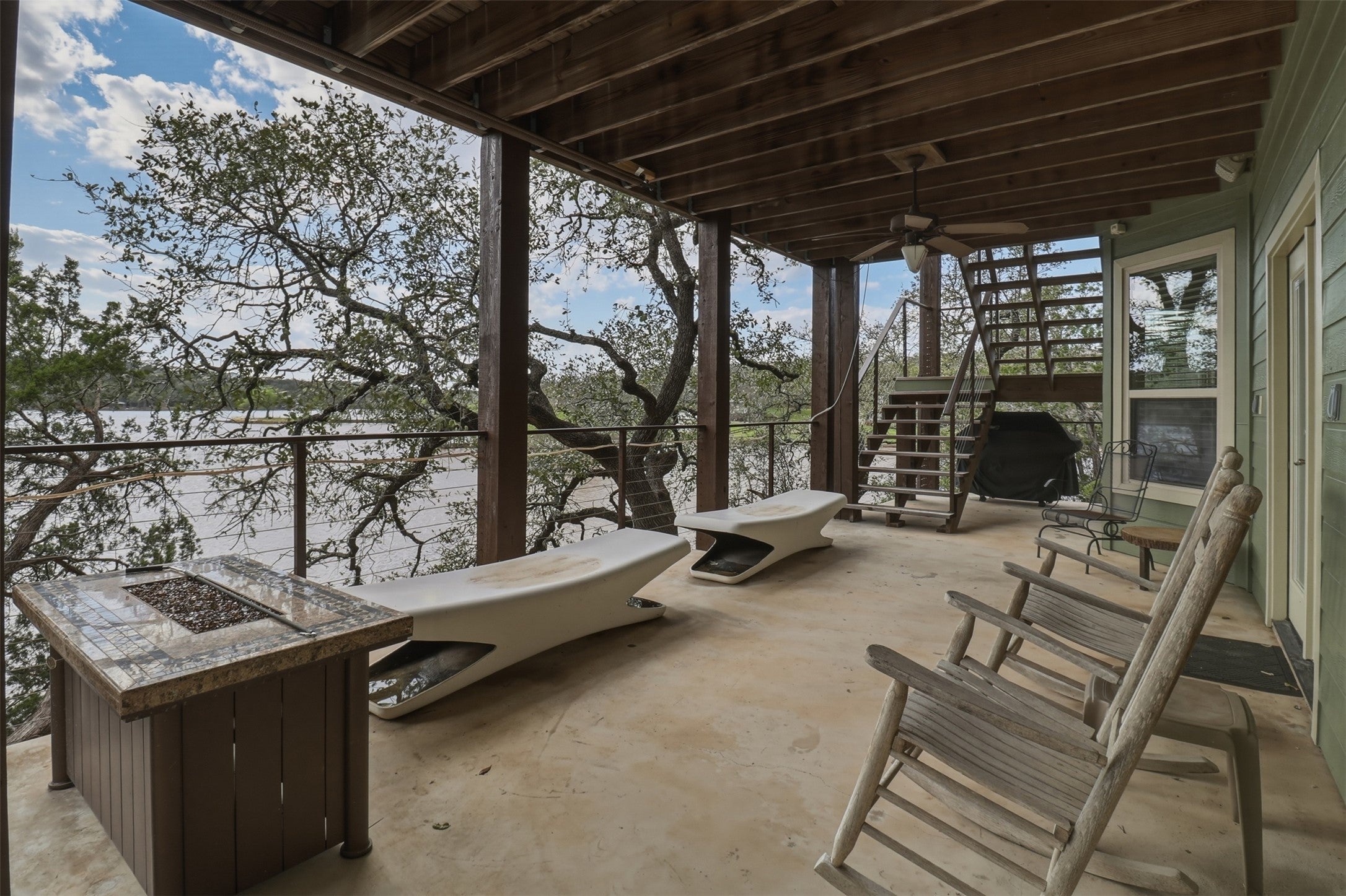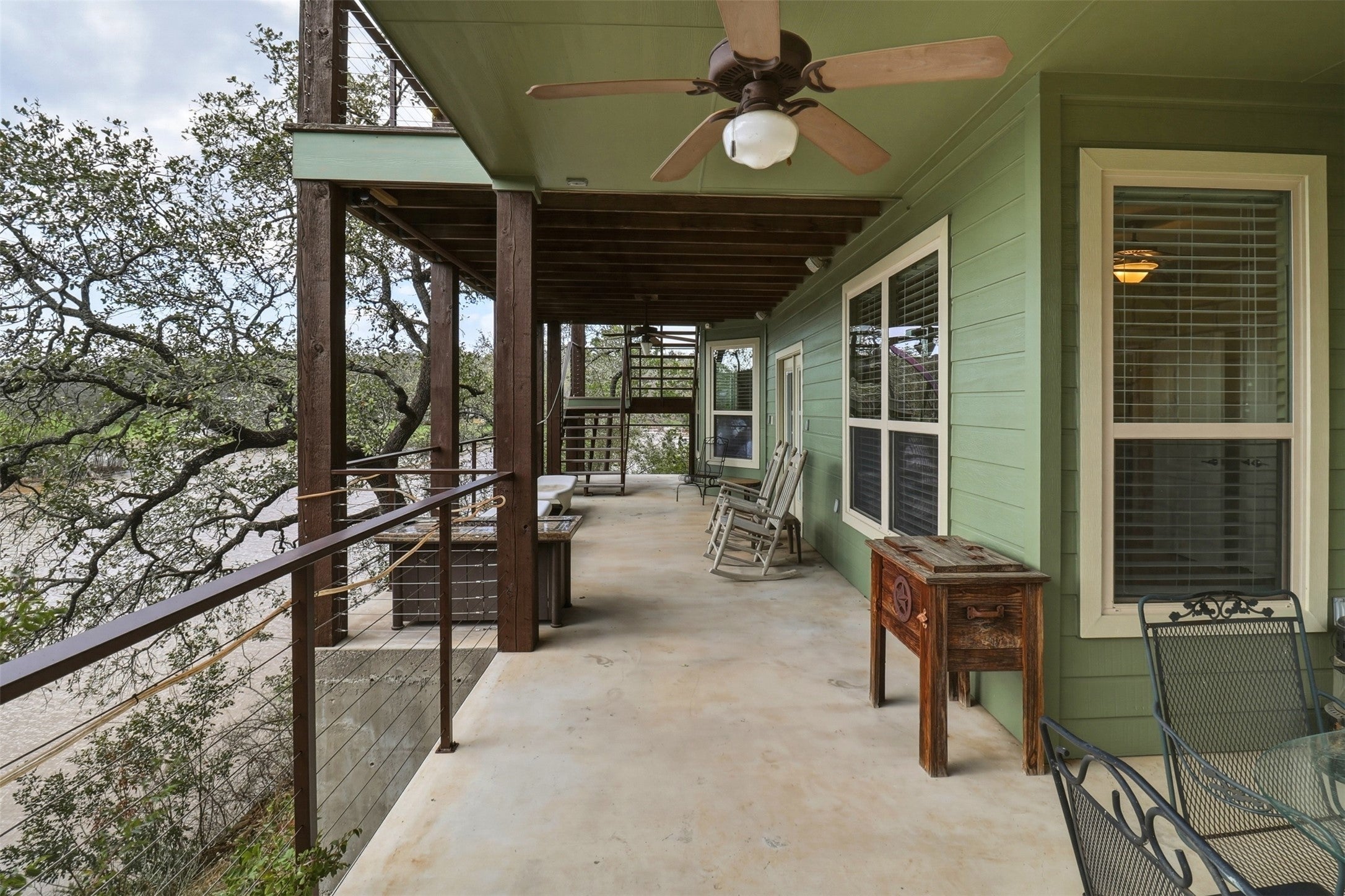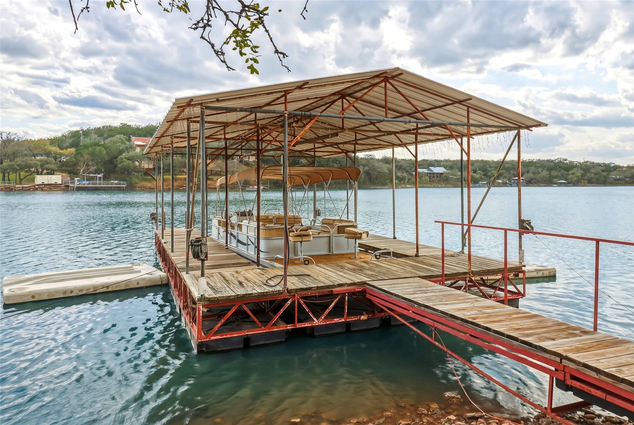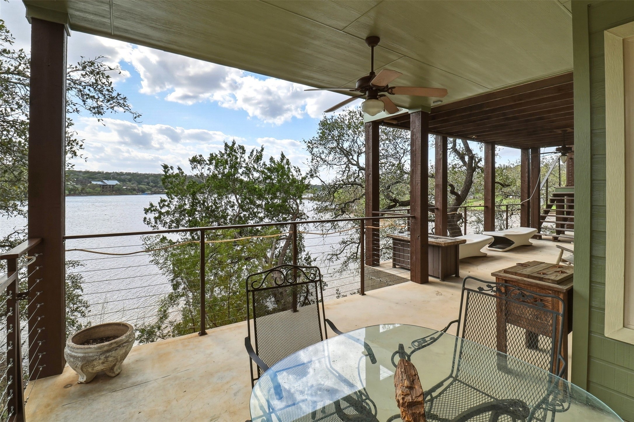 Waterfront living on Lake Buchanan! This quiet 4 bedroom, 2.5 bath custom home offers incredible Hill Country views and a peaceful, secluded setting with 485+/- feet of shoreline. Located at the end of a private dead-end street, the home features tray ceilings and a flat driveway with plenty of parking and space to turn around. Two levels of covered back porches stretch across the rear of the home, creating the perfect space to relax, entertain, and take in the expansive lake views. Enjoy direct access to the water with a private boat dock (in a No Wake part of the lake) making boating, fishing, and lake days effortless. Approximately 600 sqft of unfinished space on the lower level awaits your custom design—game room, additional living space, bedrooms, you decide! Whether as a full-time residence or weekend retreat, this property captures the best of casual Texas Hill Country lakefront living.