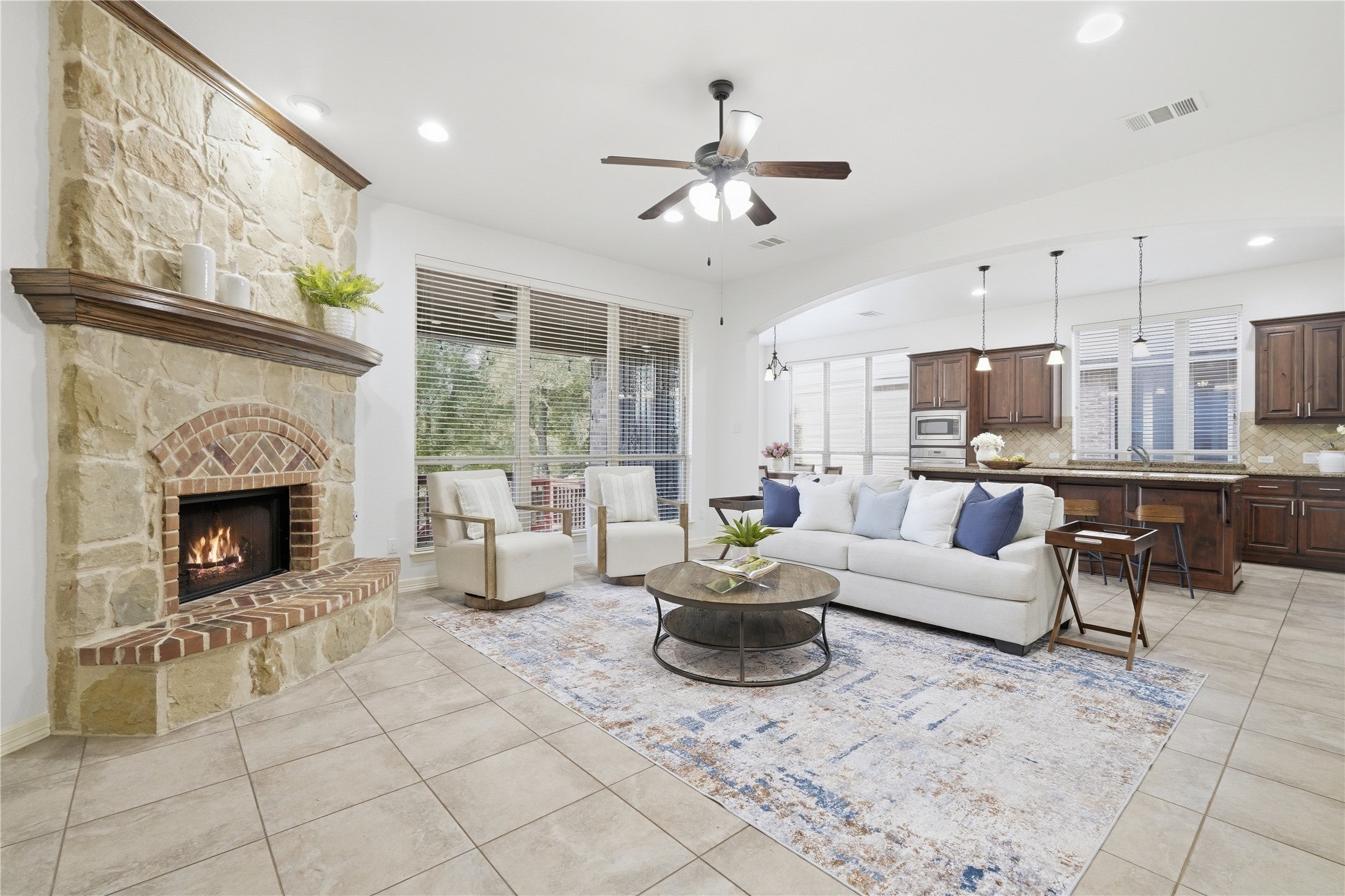 At 3519 Alexandrite WAY, RoundRock, TX, USA, a single family residence is in award winning/nationally acclaimed RoundRock ISD - Cactus Ranch Elementary, James Garland Walsh Middle and Round Rock High. This home, built in 2010, represents luxurious living, presenting an amazing design crafted with top tier materials, and is in great condition. The kitchen provides a setting for culinary endeavors, featuring elegant stone countertops complemented by a stylish backsplash. A large kitchen island offers a generous surface, while a convenient kitchen bar provides an additional spot for enjoyment. The stovetop is ready for preparing delicious meals, making this area a focal point for daily life. The living room offers a comforting ambiance, centered around a welcoming fireplace, perfect for serene evenings. Each of the four bedrooms provides a private retreat, with one offering the indulgence of an ensuite bathroom, designed for personal comfort. The four bathrooms throughout the residence offer refined practicality, with one featuring a double vanity for ease and a tiled walk in shower for a refreshing experience. Situated within a desirable residential area, the property provides a tranquil setting. An inviting porch extends an opportunity for outdoor relaxation, offering a gentle transition from the surroundings. The two garage spaces provide practical convenience with lot of storage space including attics available for additional storage. This single family residence embodies a sophisticated lifestyle, ready to inspire its fortunate inhabitants.