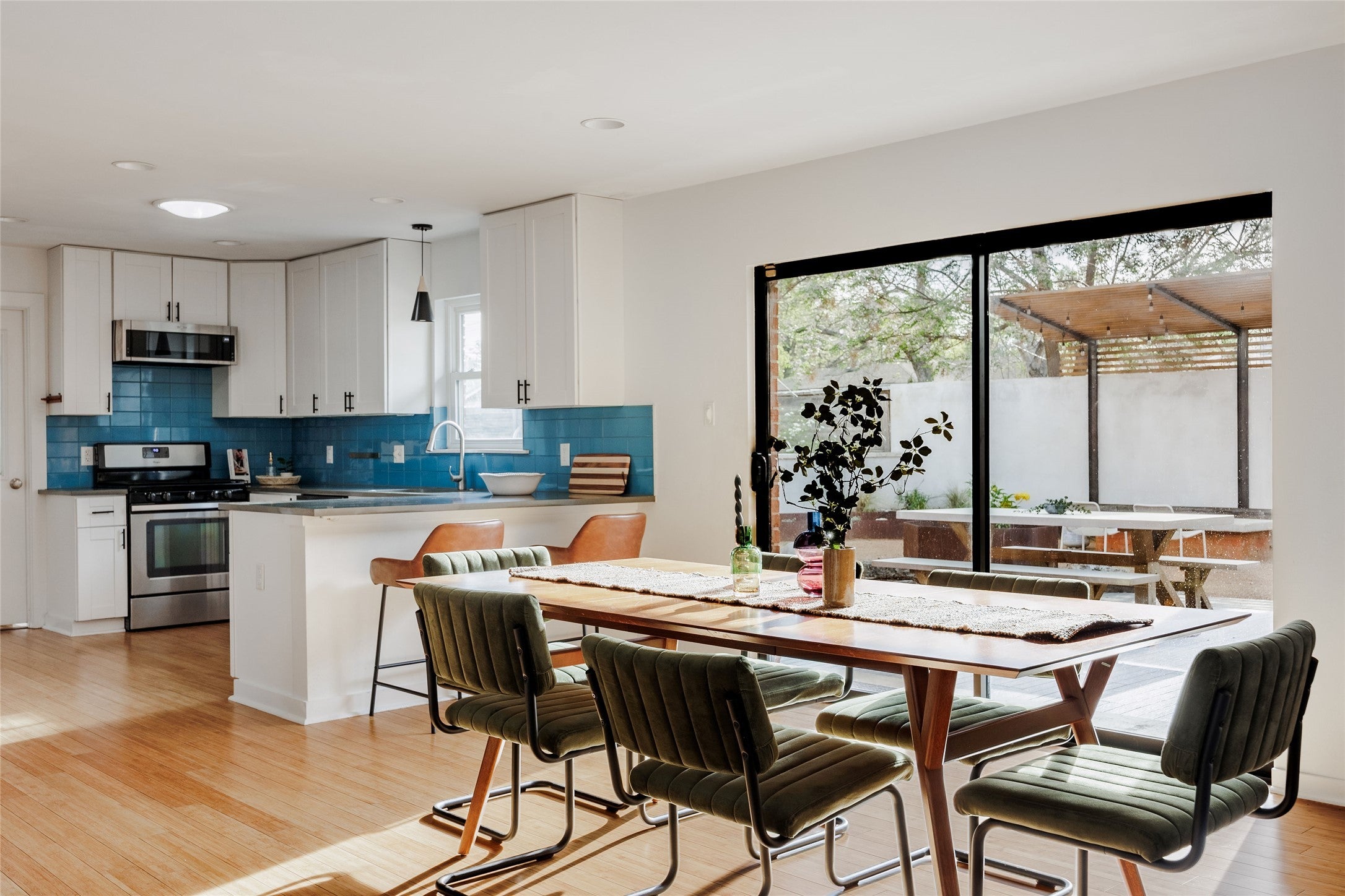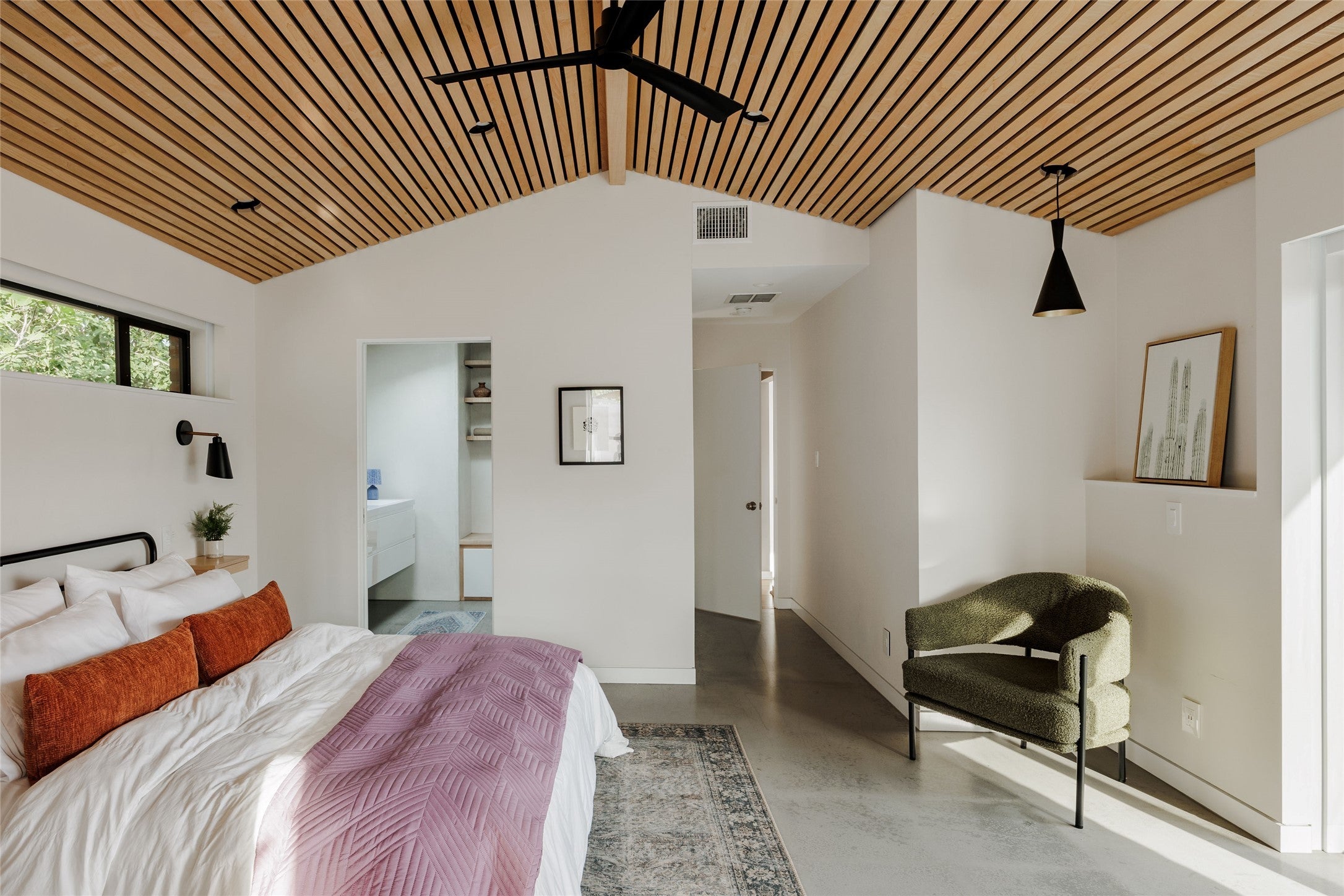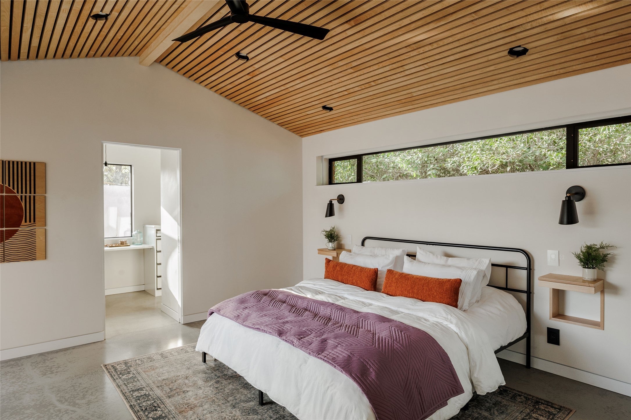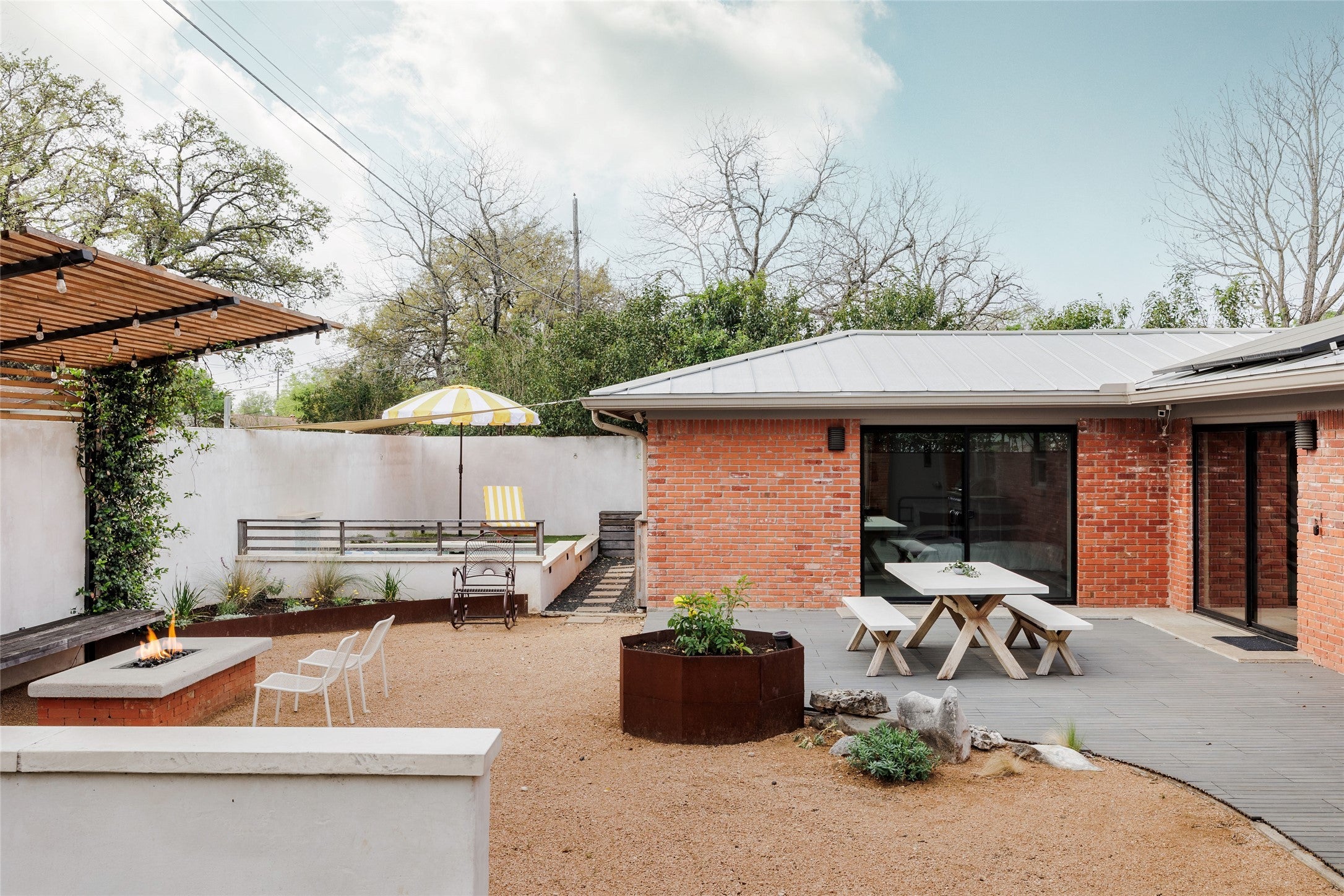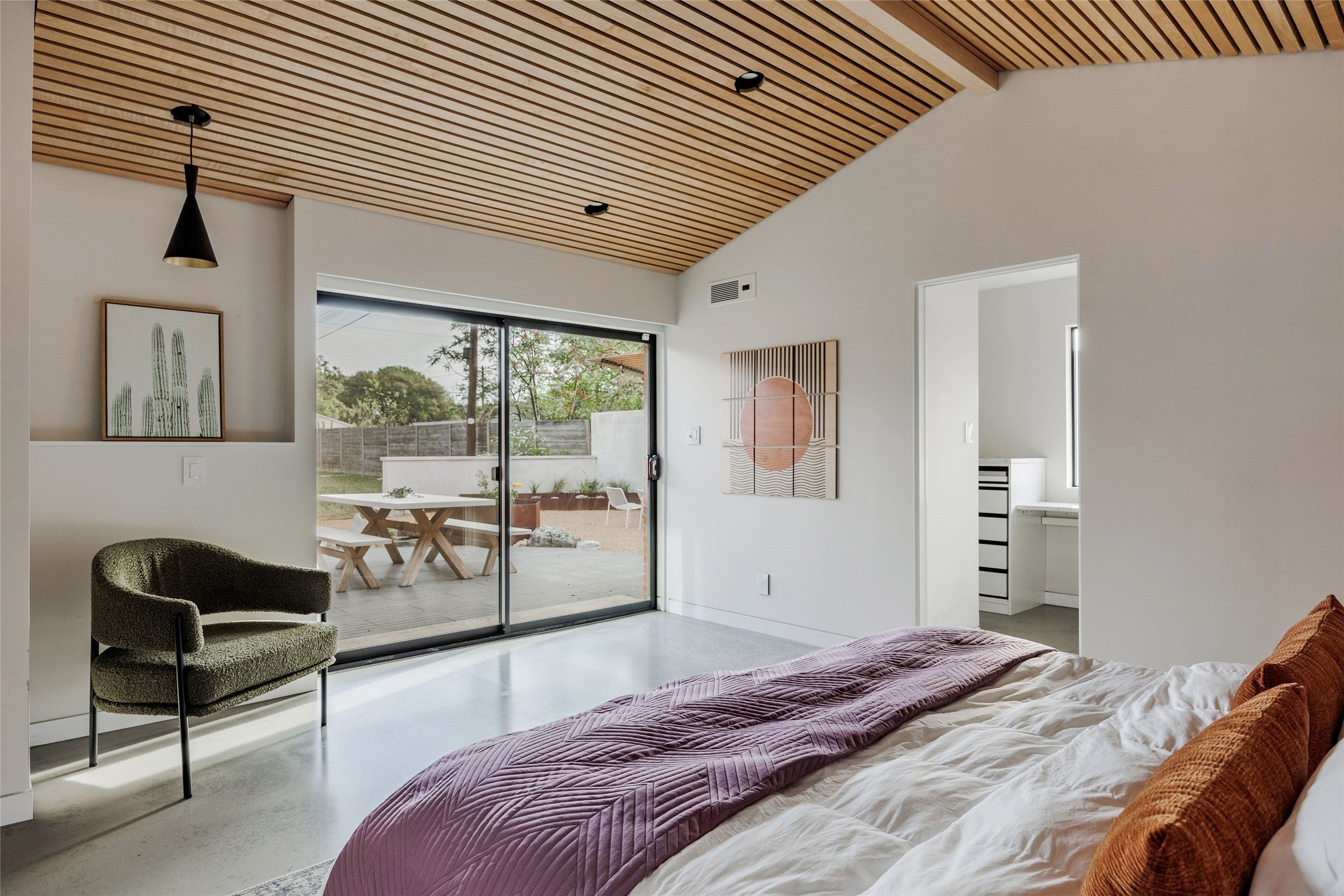 Nestled on a spacious cul-de-sac lot in South Austin, Lasso Path is a meticulously updated mid-century modern oasis, with heated pool and a car lover's dream workshop complete with working car lift. From the cozy two-way fireplace to the light filled living areas, this captivating 3-bedroom, 2-bathroom home exudes a warm and inviting atmosphere. Inside, you’ll find an updated gourmet kitchen equipped with sleek quartz countertops, custom tile selections, and stainless steel appliances. Custom woodwork and bamboo floors create eye-catching views from every space of the house. The primary bedroom & bathroom are filled with thoughtful details - automatic light filtering and blackout shades, spa-like finishes, and access to your backyard retreat. Large windows intertwine the outdoor living with indoor comfort - the outdoor living area features a heated plunge pool, fire pit, and plentiful seating all surrounded with lush landscaping and custom lighting. In addition to the home’s 1,869 square feet there is a 600 square foot, full-blown insulated and air-conditioned workshop. Currently used as additional living space, the workshop is also a functioning garage with working car lift and 15’ ceilings. A fully owned solar system and rain collection system makes ease of living through Texas summers. Located within minutes to downtown along with nearby Central Market & Whole Foods, Sunset Valley shopping center, and only 15 minutes to the airport.