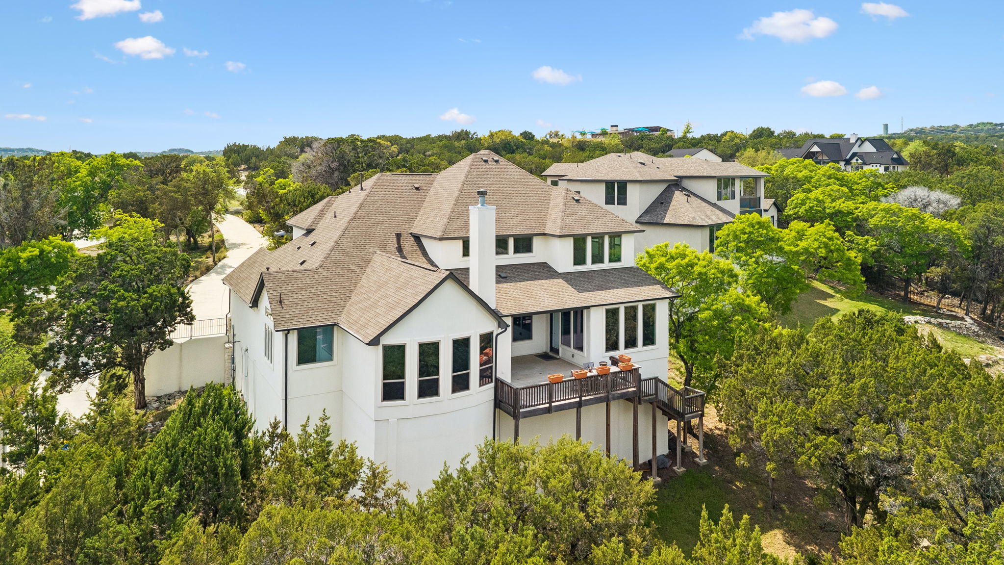 Incredible home located in The Hollows on just under 1.75 acres backing to the greenbelt and walking trails, offering privacy, views, and resort-style living on the North Shore of Lake Travis. The Hollows is a premier master-planned community spanning over 1,400 acres of Texas Hill Country with countless amenities, lake access, and miles of golf cart and hiking trails. This stunning 4 bed, 4.5 bath, 2-story home features soaring ceilings, a dramatic two-story living room filled with natural light, a built-in display niche under the staircase, a car lift for auto enthusiasts or extra garage space, and breathtaking views from nearly every window. Wake up with the morning sun lighting the home as you enjoy coffee overlooking the valley, then spend the day exploring the long driveway approach surrounded by natural landscaping or take a short walk to one of the quiet community pools. The Hollows lifestyle includes the Beach Club with three pools, seasonal restaurant, fitness center, pavilion with fireplace, and poolside bar service; the Trailhead Club with lap pool, pickleball and basketball courts, playground, and shaded lounges; the Hilltop Smokehouse for gatherings and stargazing; plus two Kayak Clubs, miles of paved and native trails, and access to Lake Travis’ deepest water marina. Whether you want to kayak, boat, fish, swim, hike, or simply relax with neighbors at wine clubs, yoga classes, or lakeside picnics, The Hollows delivers the ultimate lake lifestyle with a vibrant sense of community. Perfectly positioned between the Hill Country and North Austin, this incredible home combines resort living, privacy, and convenience all in one.
