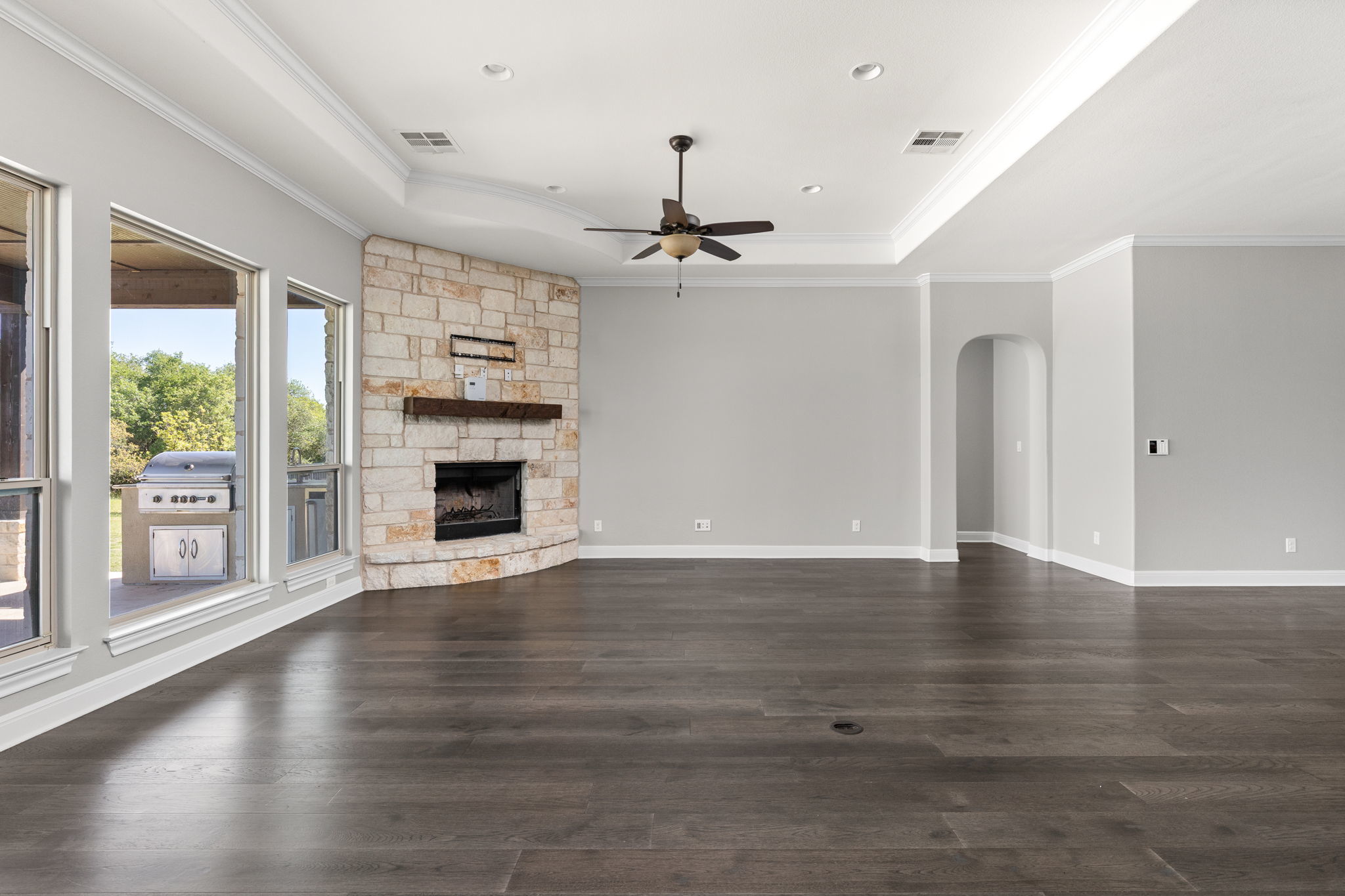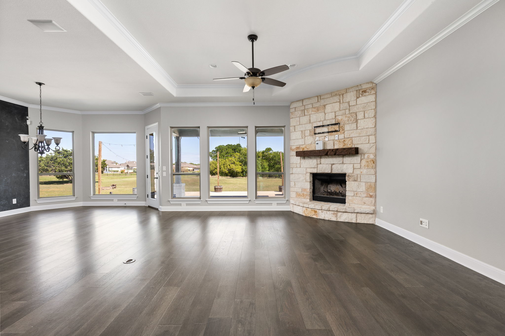 Discover the perfect blend of privacy and Hill Country elegance in the highly sought-after Clearwater Ranch community in Liberty Hill. Situated on a sprawling 1.34-acre homesite, this beautifully maintained Giddens Homes residence offers 4292 square feet with 5 bedrooms, 4 full baths, a dedicated office, two living areas, and an upstairs media room. Built in 2016, the home also features a spacious 3-car garage and a thoughtfully designed layout ideal for everyday living and entertaining. Inside, youll find a warm blend of wood, tile, and carpet flooring, a wood-burning stone fireplace, and a gourmet kitchen designed to gather and entertain. The flexible floor plan provides ample space for multi-generational living, work-from-home needs, and media or game nights upstairs. Step outside to a massive, tree-lined backyard offering endless possibilities--whether you envision a resort-style pool, workshop, or outdoor retreat. Residents enjoy access to Clearwater Ranchs scenic 12-acre creekside park while benefiting from the charm of Liberty Hills small-town atmosphere and top-rated schools. Conveniently located near the 183 tollway with major retail growth nearby, including a newly opened Costco and the upcoming Target development. Schedule a showing today!