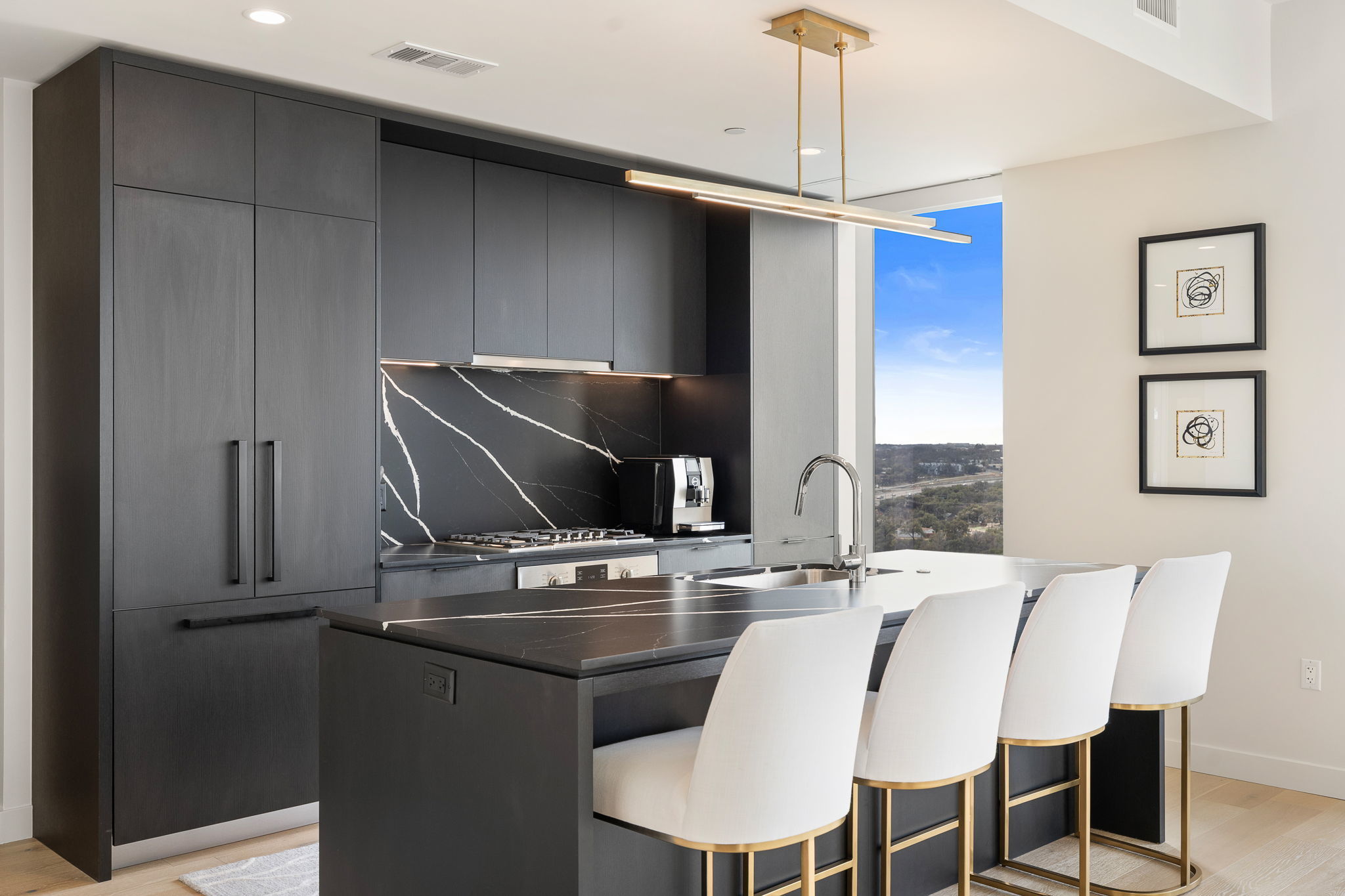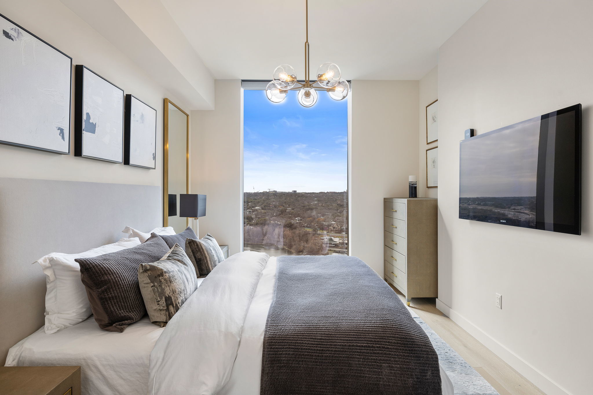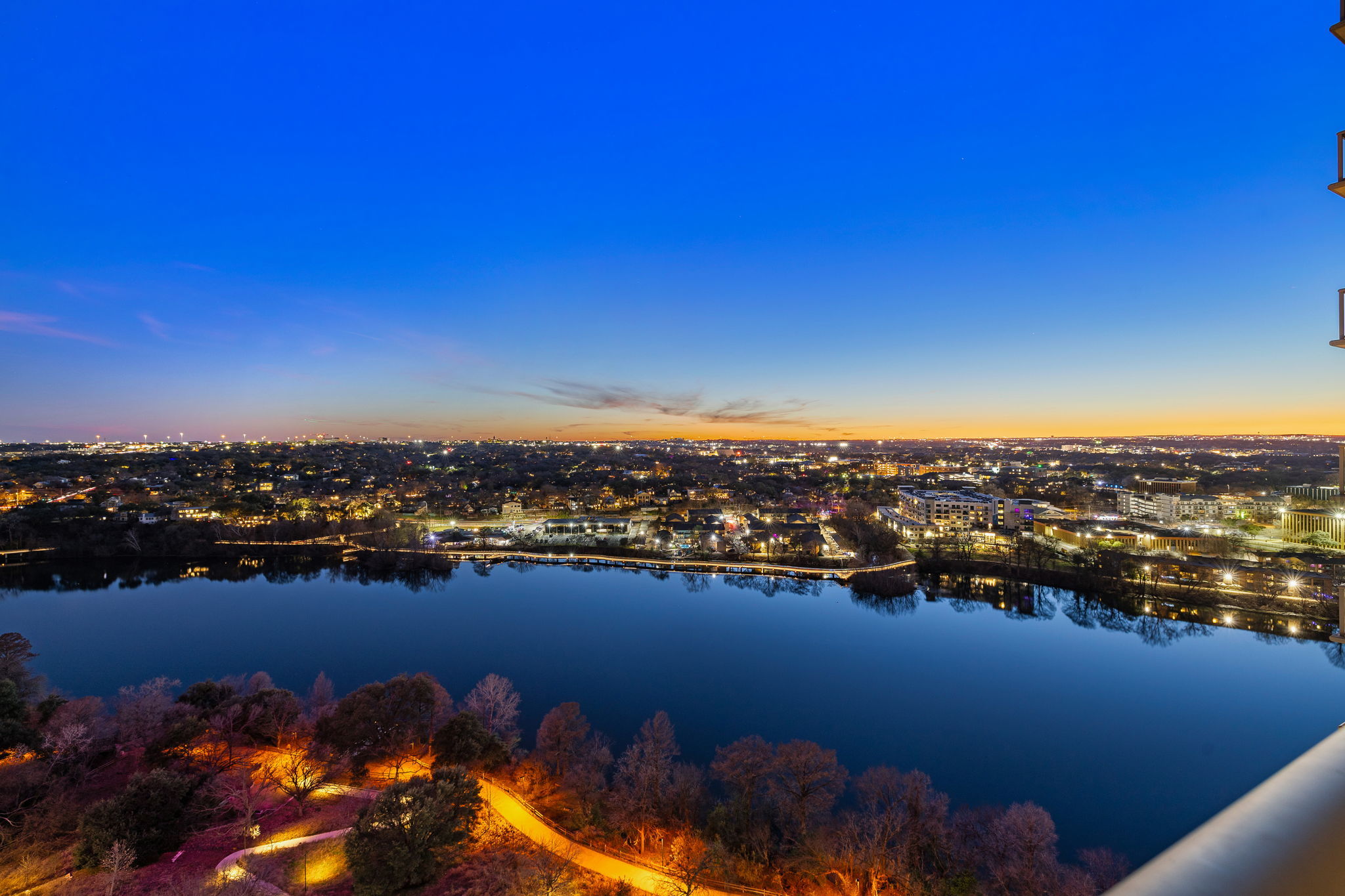 Fantastic condo at the highly sought-after 44 East Avenue, offering an exceptional waterfront lifestyle in one of downtown Austin’s most desirable locations. Perfectly positioned to capture breathtaking skyline and lake views, this residence delivers spectacular sunset scenery framed by dramatic floor-to-ceiling windows that flood the home with natural light. This almost-new construction features a light-filled open floorplan with high ceilings, a modern design, and a layout ideal for both everyday living and entertaining. The kitchen flows seamlessly into the living area, creating an inviting, airy space enhanced by the stunning backdrop of Lady Bird Lake. The oversized primary suite serves as a true retreat, complete with a luxurious spa-like bathroom and serene views. One of this property’s most remarkable advantages is the protected view easement on adjacent land, ensuring your panoramic vistas remain permanently unobstructed. Outdoor enthusiasts will appreciate being located directly on the trailhead of the Lady Bird Lake hike-and-bike trail, with direct access to a nearby dog park, making it effortless to enjoy Austin’s iconic outdoor lifestyle. Tucked within a quiet, peaceful setting, yet just steps from the vibrant dining and entertainment scene of Rainey Street, this condo offers the perfect balance of energy and tranquility. The home also provides convenient proximity to I-35, simplifying commuting and travel. Residents of 44 East Avenue enjoy a truly elevated urban experience, including 24-hour concierge service, secured parking, access to two guest suites, and an active social community that enhances both lifestyle and convenience. With its premier waterfront location, protected views, sophisticated interior, and unmatched access to downtown amenities, this property represents downtown Austin living at its absolute finest.