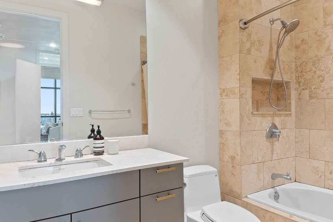 Welcome to 5 Fifty Five Condominiums, where upscale urban living meets the vibrant energy of downtown Austin. Adjoining the Hilton Austin Hotel at 555 E. 5th Street, this 31-story high-rise offers an unparalleled lifestyle with breathtaking views, premium amenities, and exclusive resident services. Residence 817 features a generous, open floor plan with beautiful natural light, smart office nook and spacious owner’s retreat and spa bath. Modern updates include wide plank white oak flooring, stylish kitchen finishes and high-end appliances. Premium location, close to the elevator, facing East for bright morning sun and shady evening terrace and just steps to the resident-only access to all amenities. Includes parking space in private, underground garage. Residents enjoy Hilton amenities with spa, health club, rooftop terrace/bar, restaurants & Starbucks, heated salt water pool and 24/7 concierge. The building offers separate entrances for residents and hotel guests, ensuring privacy and exclusivity for condominium owners. Situated in the heart of downtown, the 5 Fifty Five provides convenient access to live music venues, historical sites, public transit, entertainment options, and outdoor activities.