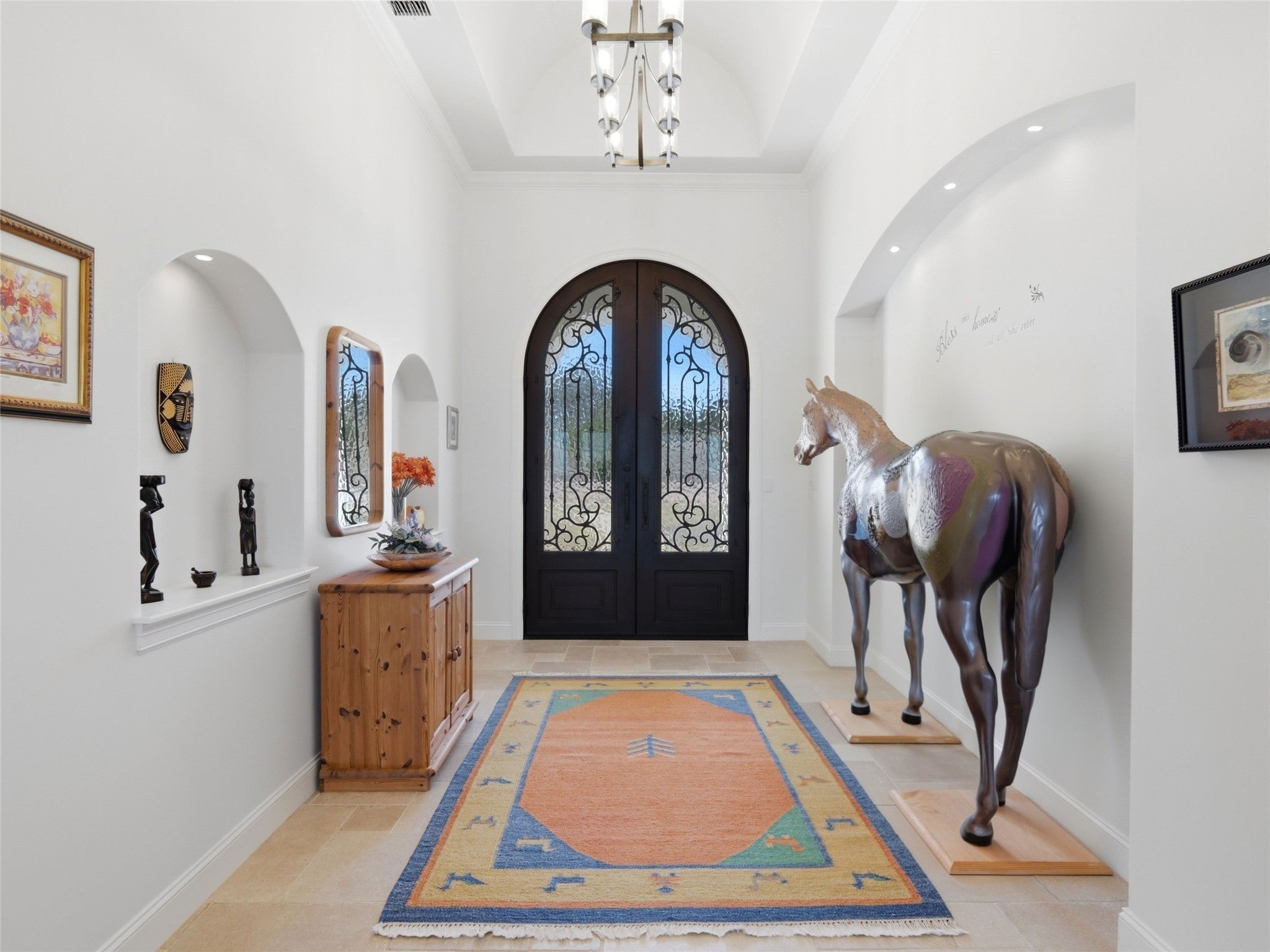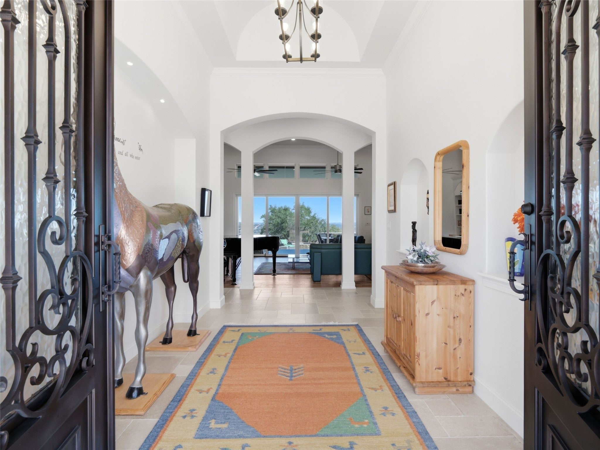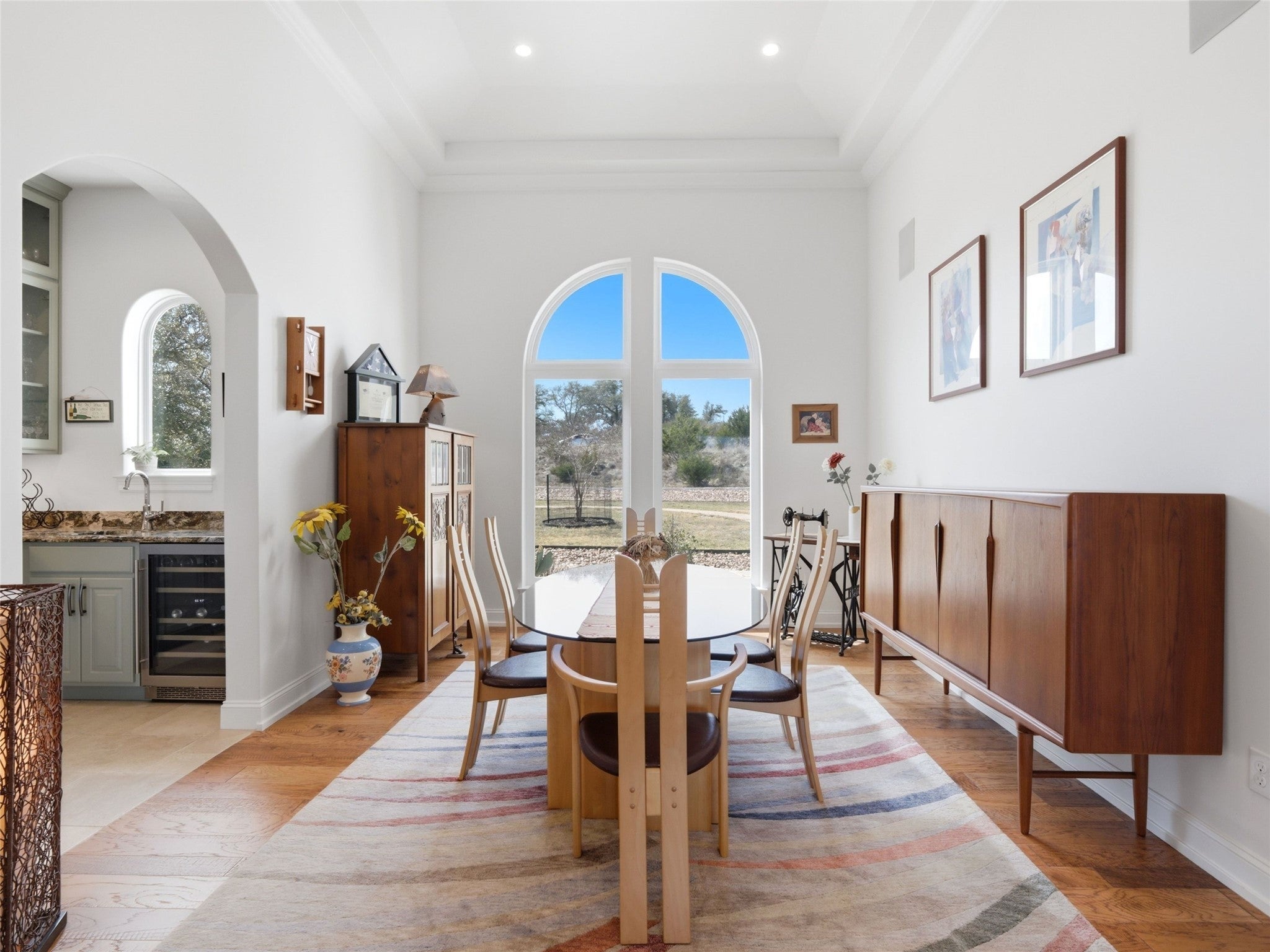 Set at the end of a quiet cul-de-sac in Cordova Bend, this meticulously constructed residence captures sweeping lake and Hill Country views while offering exceptional indoor-outdoor living designed for both everyday comfort and elevated entertaining. A metal-and-glass entry door opens to a dramatic foyer with vaulted ceilings and Italian tile flooring, drawing the eye through the home toward the lake beyond. The main living area features soaring 14-foot ceilings, custom built-ins, and a gas fireplace, while oversized windows frame the lake and surrounding landscape. The chef’s kitchen blends beauty and performance with a Sub-Zero refrigerator, Wolf appliances, pot filler, knot-free alder cabinetry, and a striking one-piece granite island. A spacious butler’s pantry with granite counters, sink, and abundant storage serves as an additional prep area, ideal for hosting, while the formal dining room sits adjacent to a fully appointed wet bar for seamless entertaining. The primary suite offers a private retreat complete with a custom-designed sauna. A guest bath reinforced as a tornado shelter reflects the home’s thoughtful engineering. Built with a Class 3 hail-resistant concrete tile roof, the home was designed with durability and longevity in mind. Outside, a large covered patio with fireplace and outdoor kitchen overlooks the pool and spa while taking in expansive lake and Hill Country views, creating an ideal setting for relaxed evenings or larger gatherings. Additional features include a three-car epoxy-floored garage with WiFi-enabled LiftMaster openers, insulated doors, dedicated workshop space, surround sound with in-wall speakers, mudroom storage, irrigation system, and professionally landscaped grounds. A rare opportunity to own a beautifully built custom home combining lake views, privacy, luxury amenities, and exceptional construction quality in one of Canyon Lake’s most desirable settings.